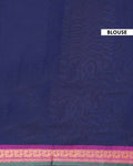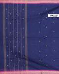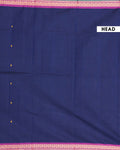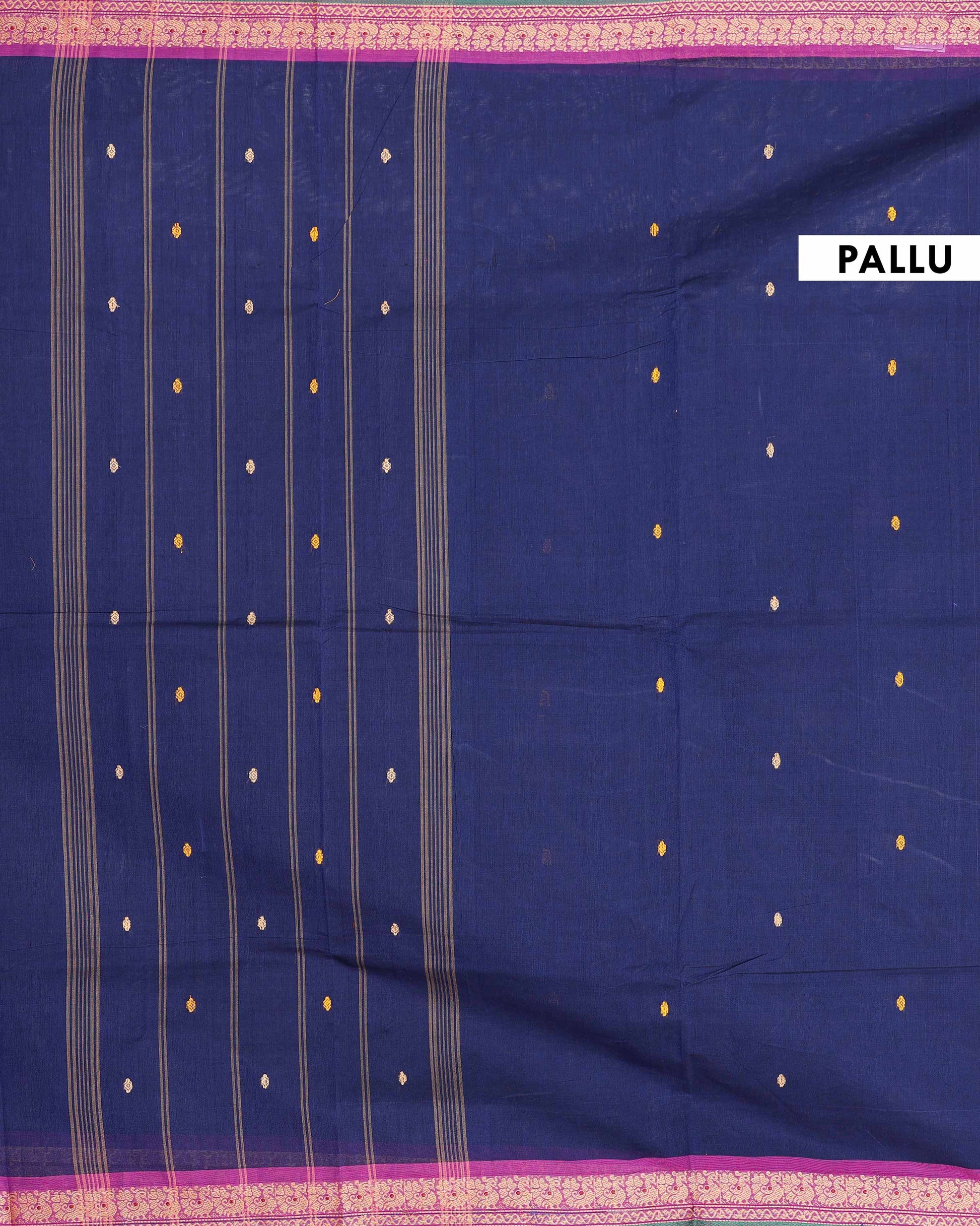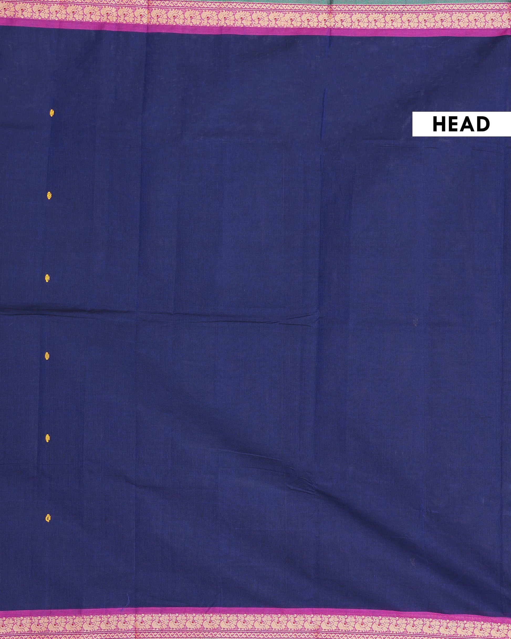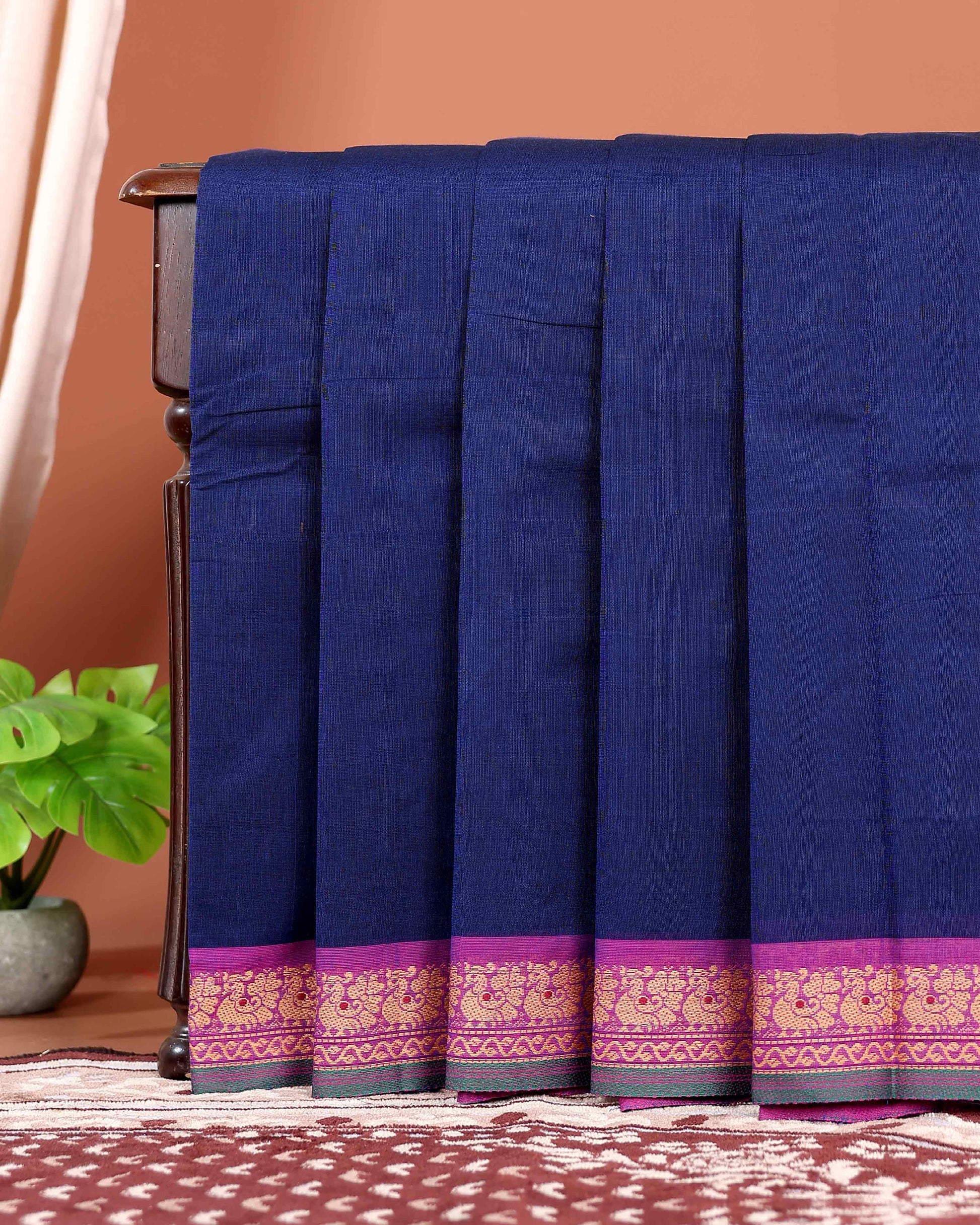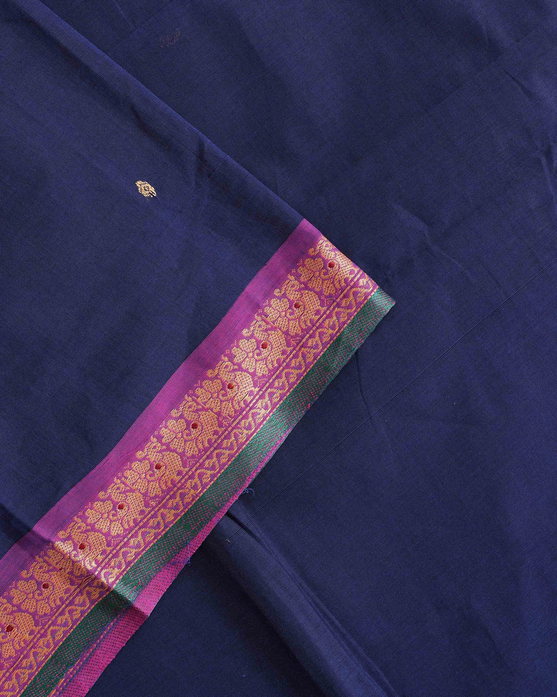 Traditional Chettinad Cotton Saree with Traditional Floral Zari Border - Navy Blue