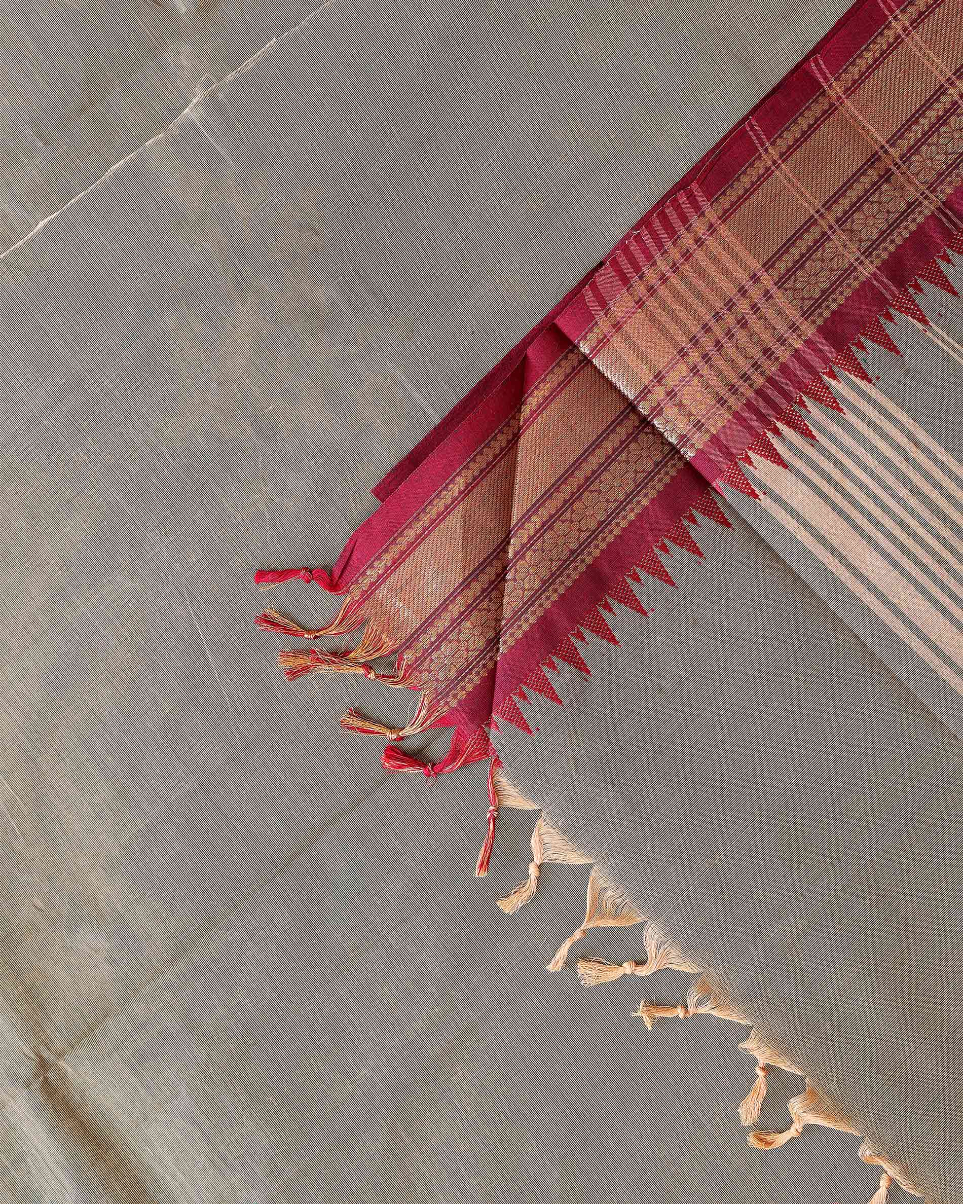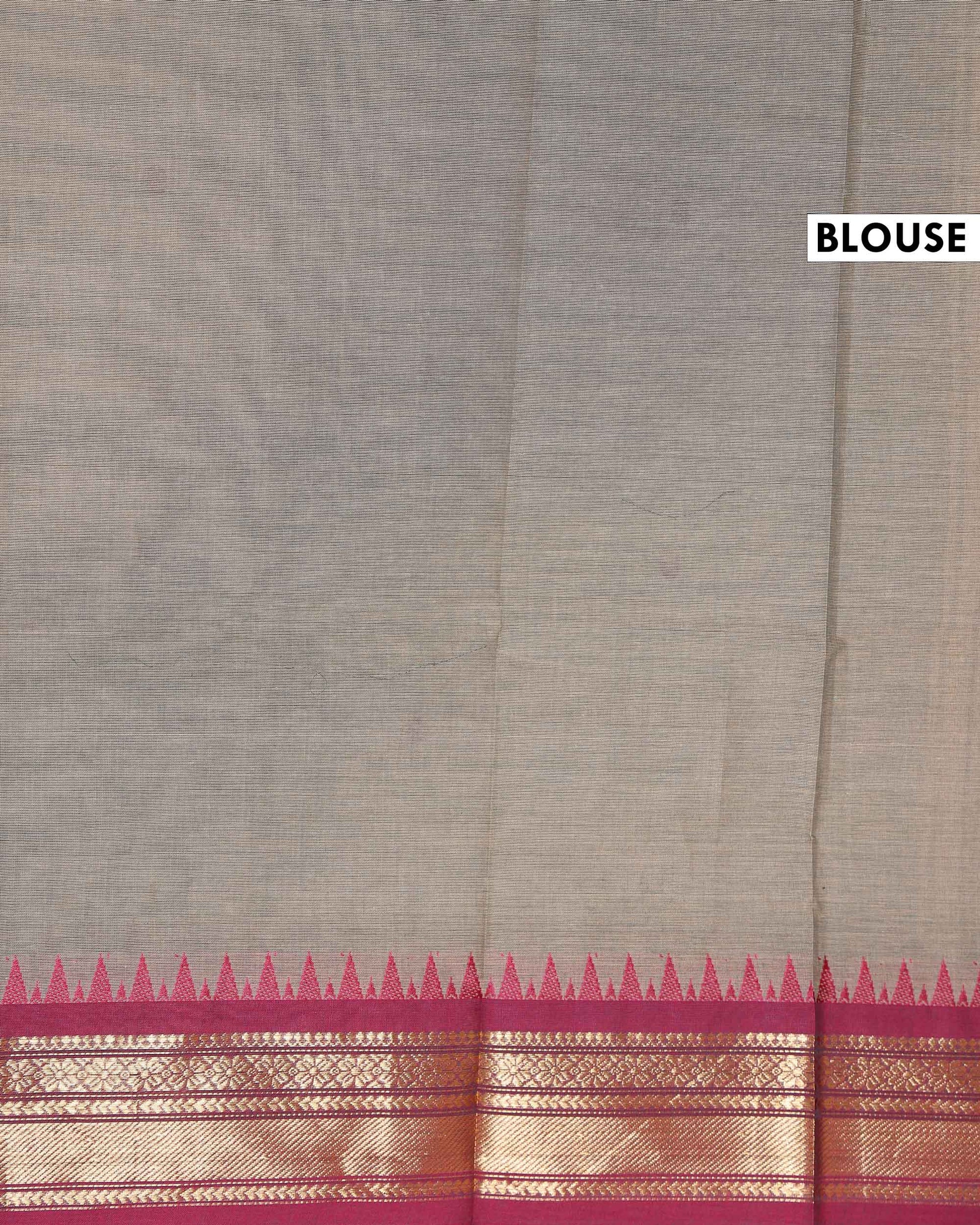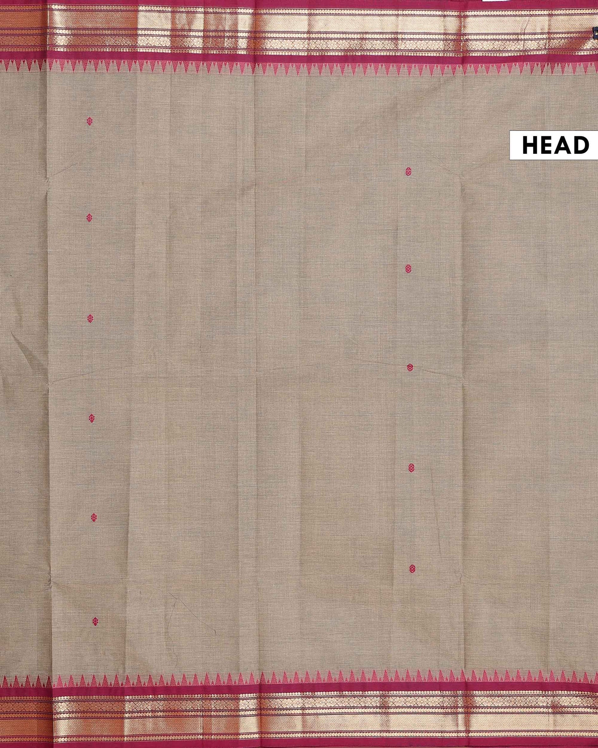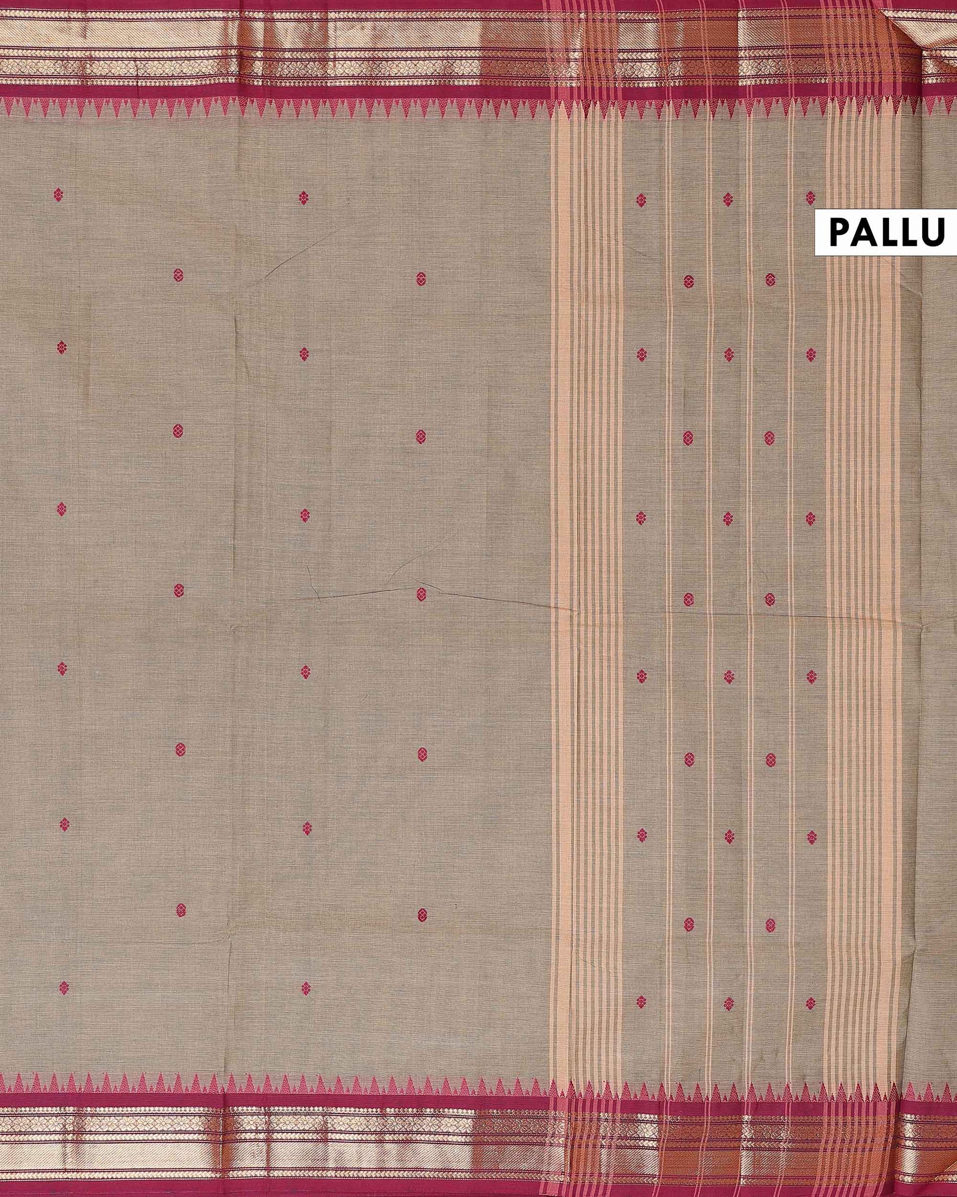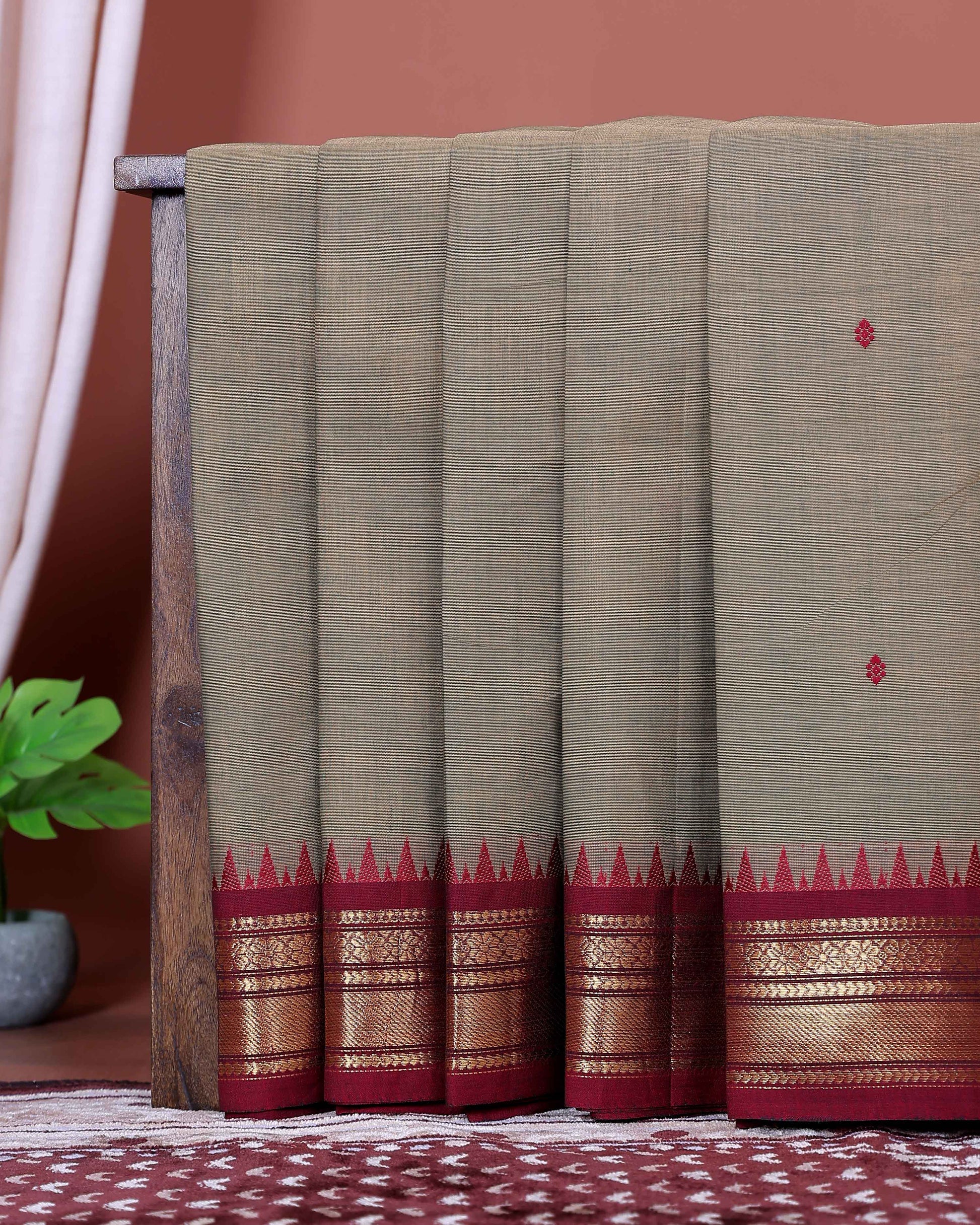 Traditional Chettinad Cotton Saree with Traditional Temple Border & Subtle Body Motifs - Brown