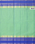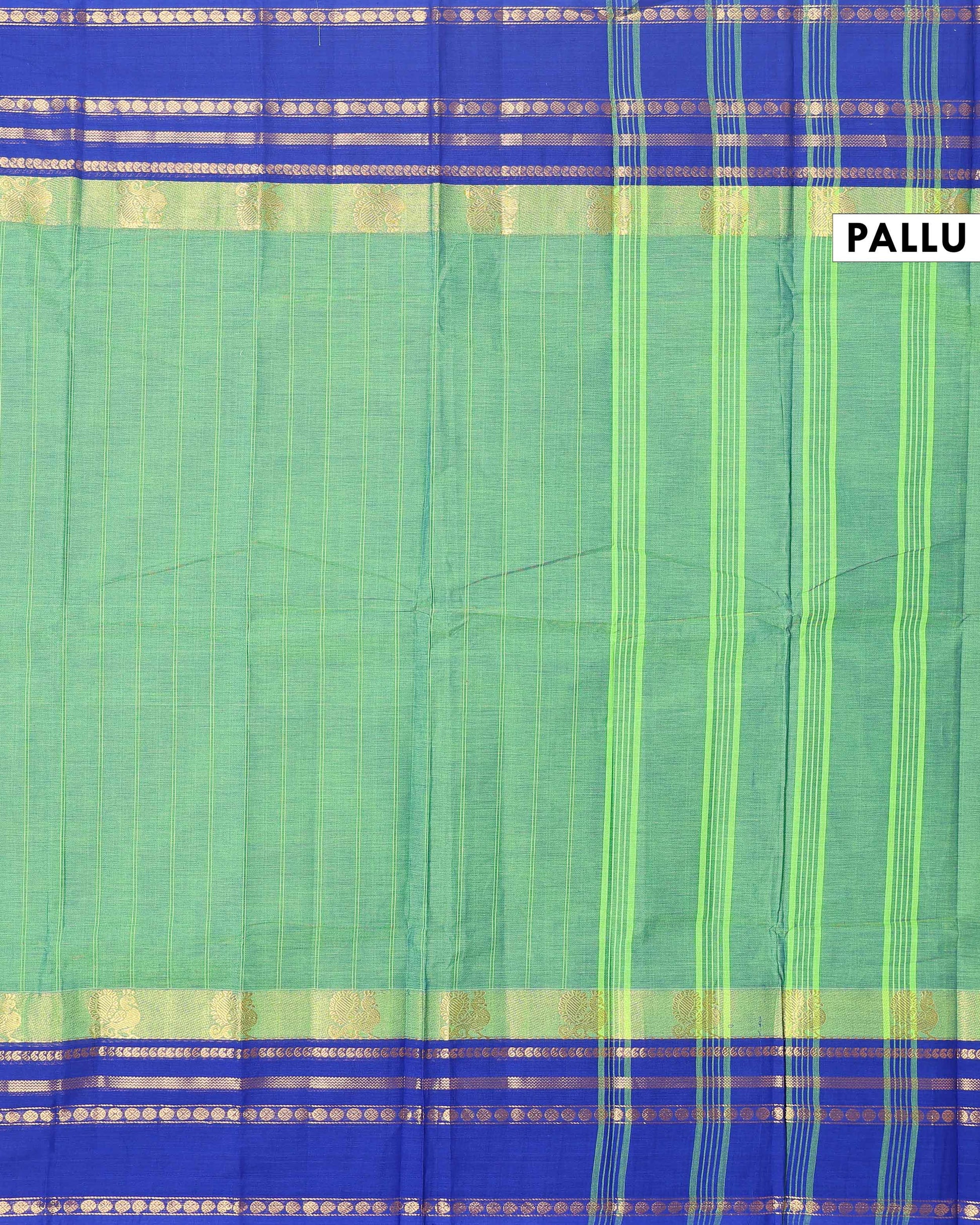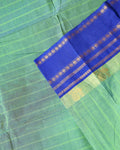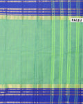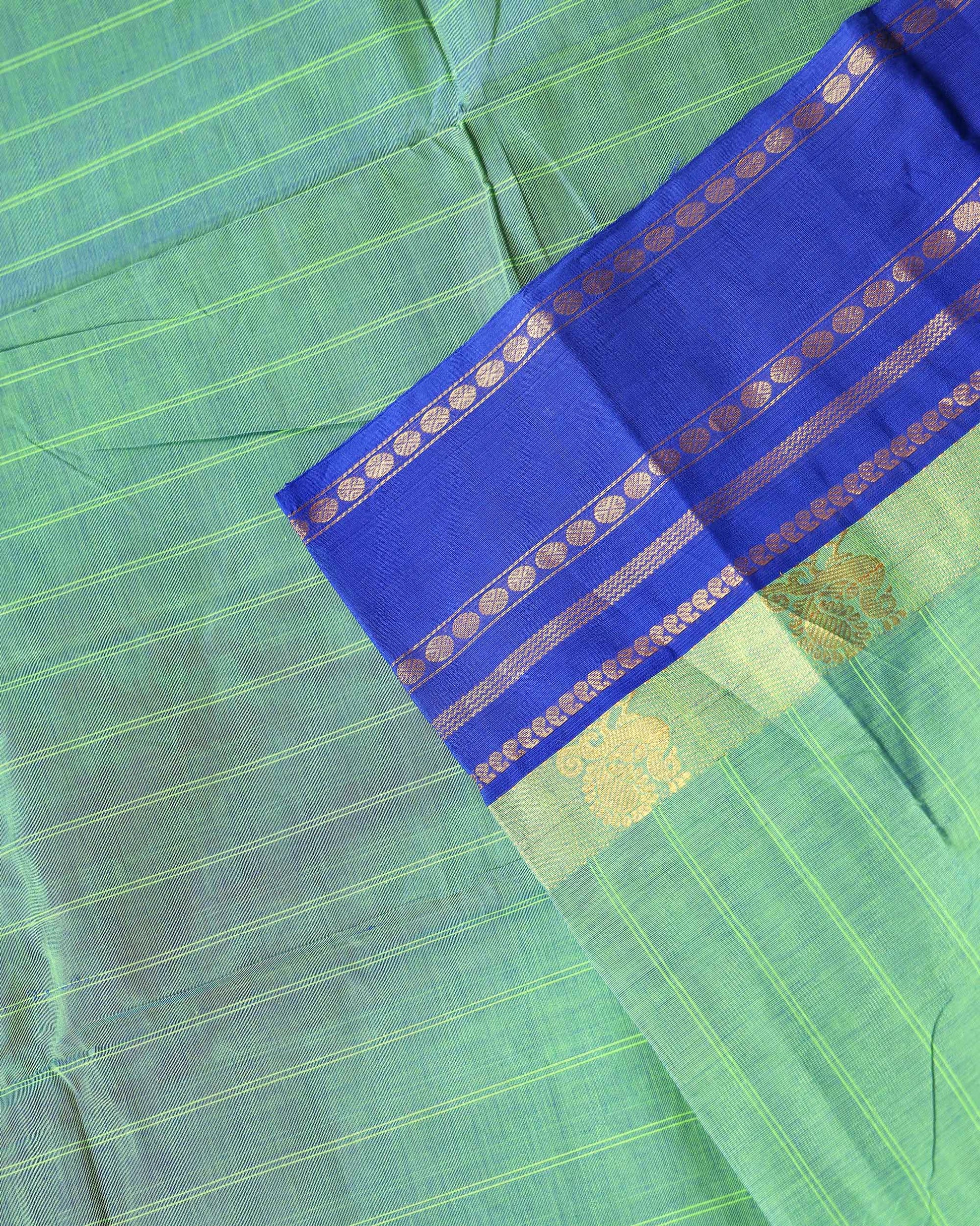 - This handloom Chettinad cotton saree a vibrant peacock green body with a subtle checked pattern