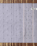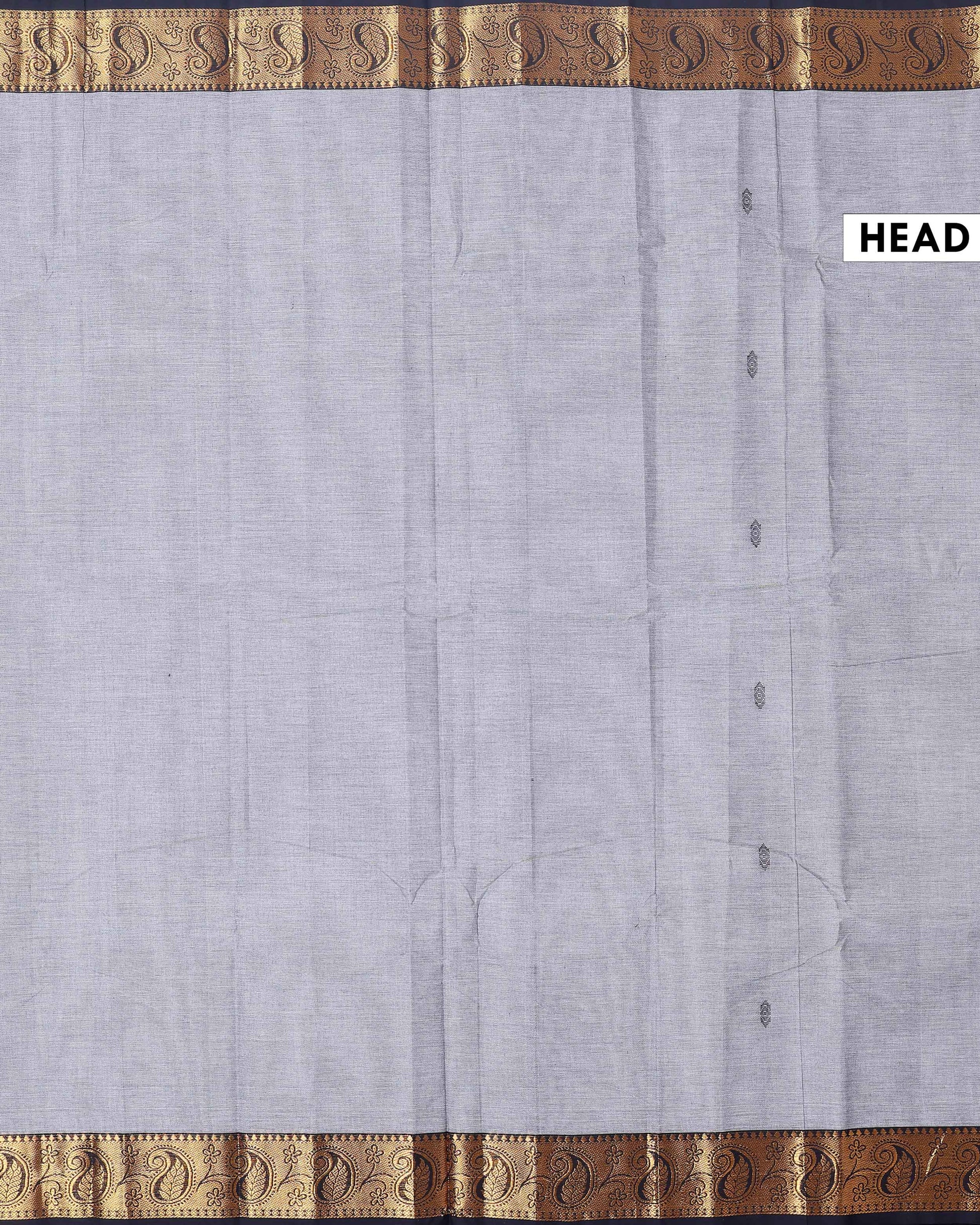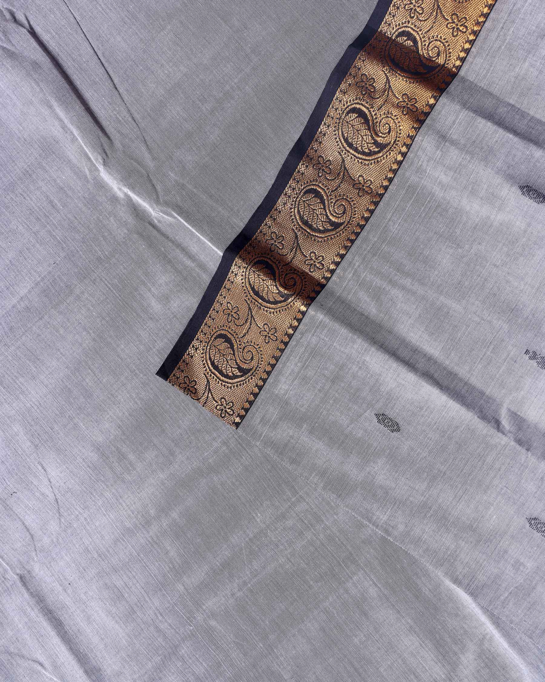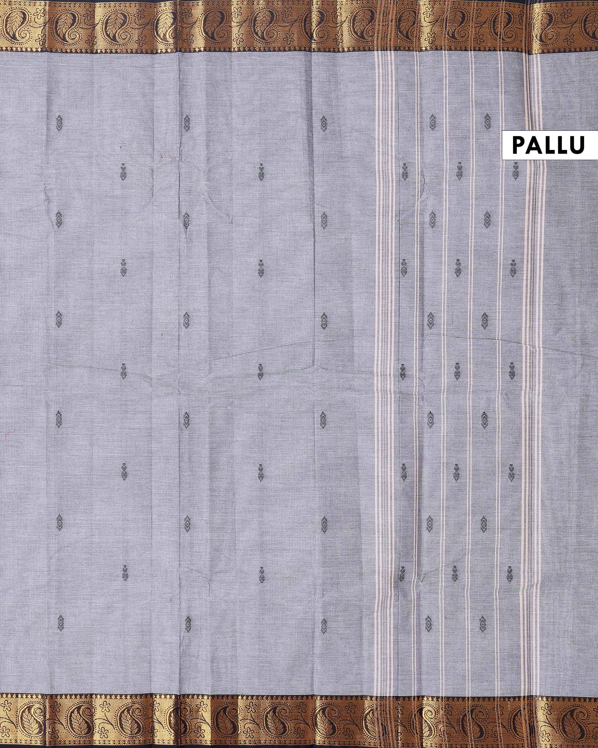 Traditional Chettinad Handloom Cotton Saree with Golden Zari Woven Border and Buttas - Grey