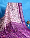 - The rich purple border and pallu showcase beautiful patola woven designs and work making it perfect for weddings and festive occasions.