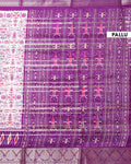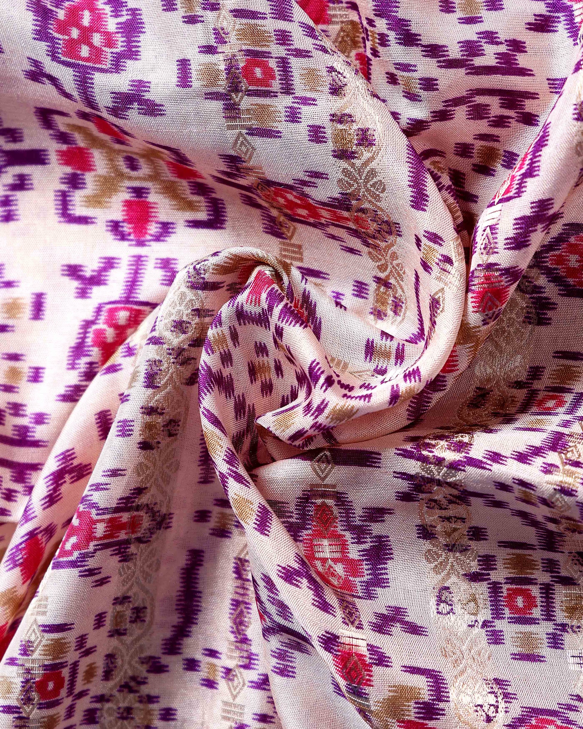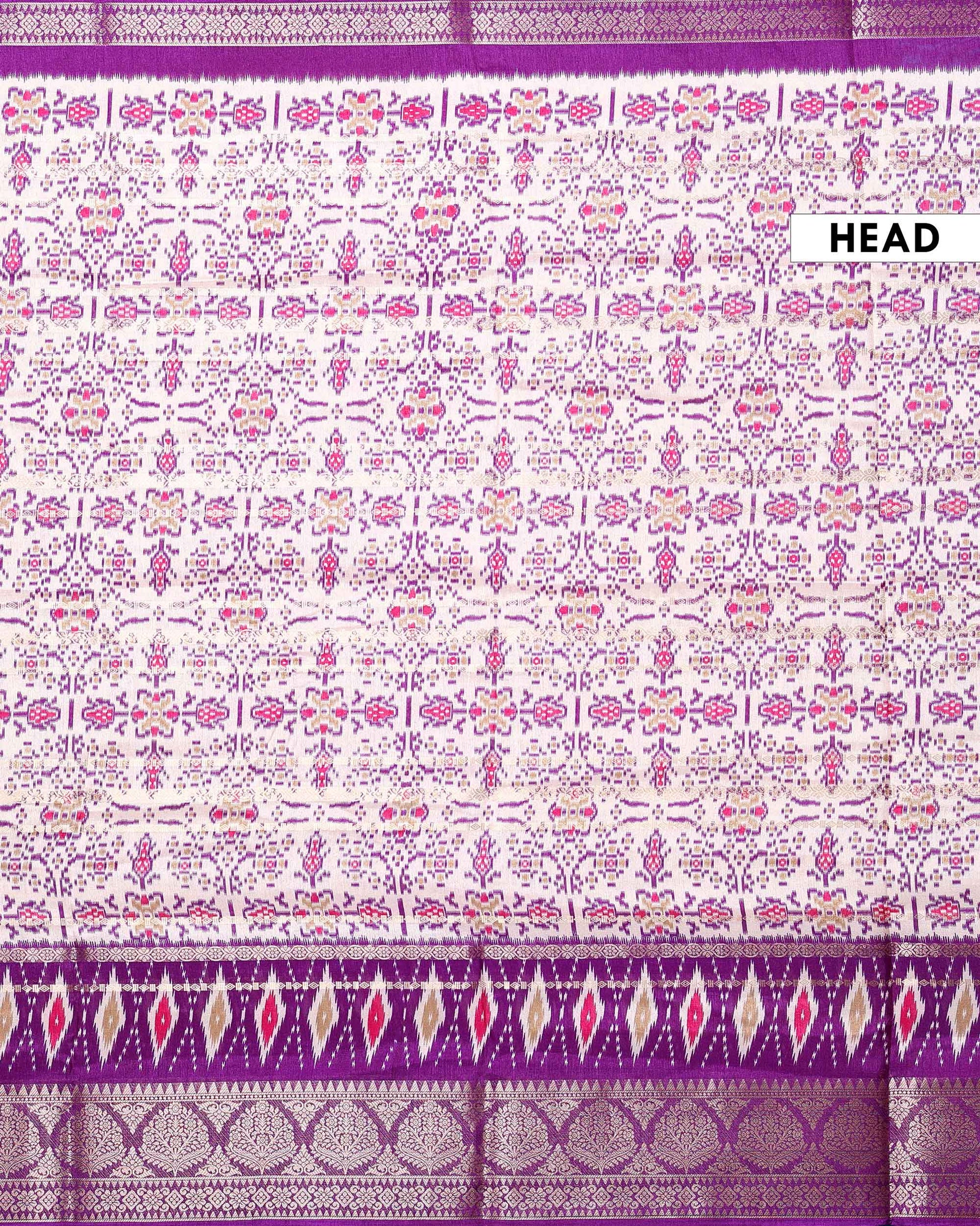 - Elevate your style with this stunning dola saree intricate purple and pink Pochampally Inspired floral patterns on a cream body