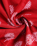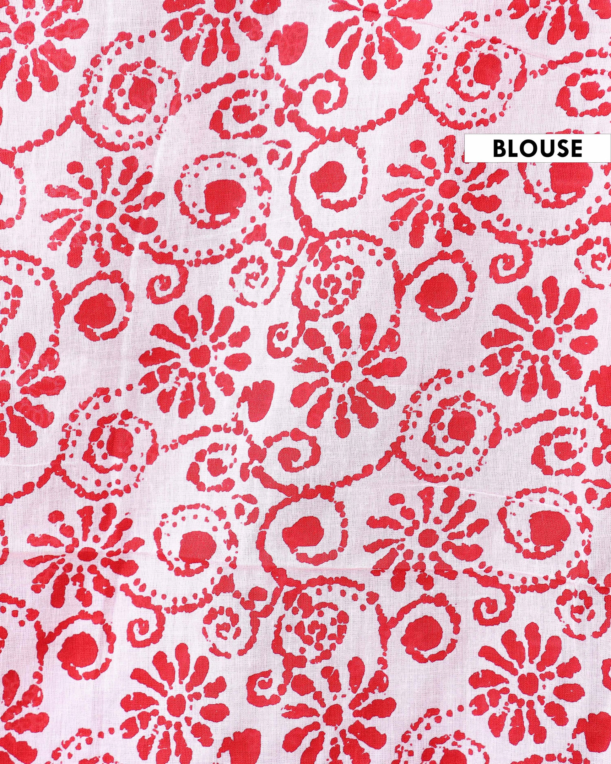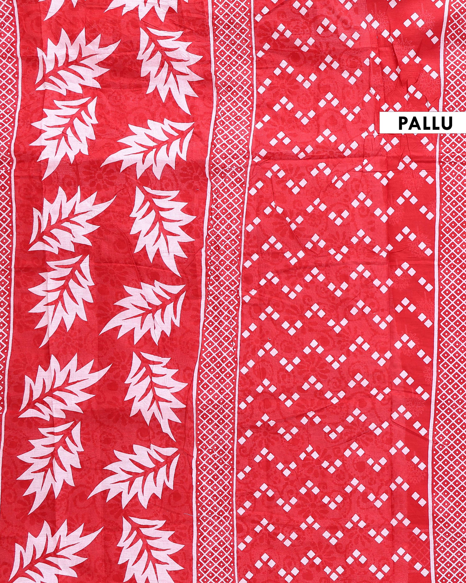 Traditional Hand Block Print Mulmul Semi Saree with Geometric Border - Red