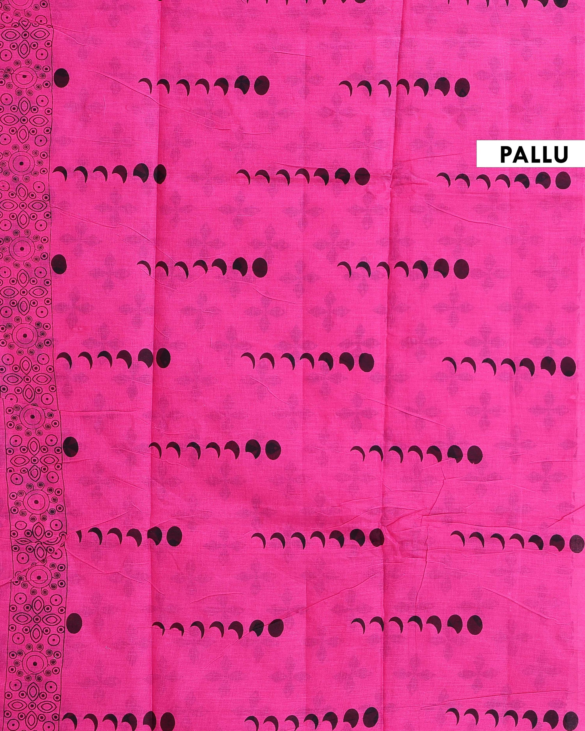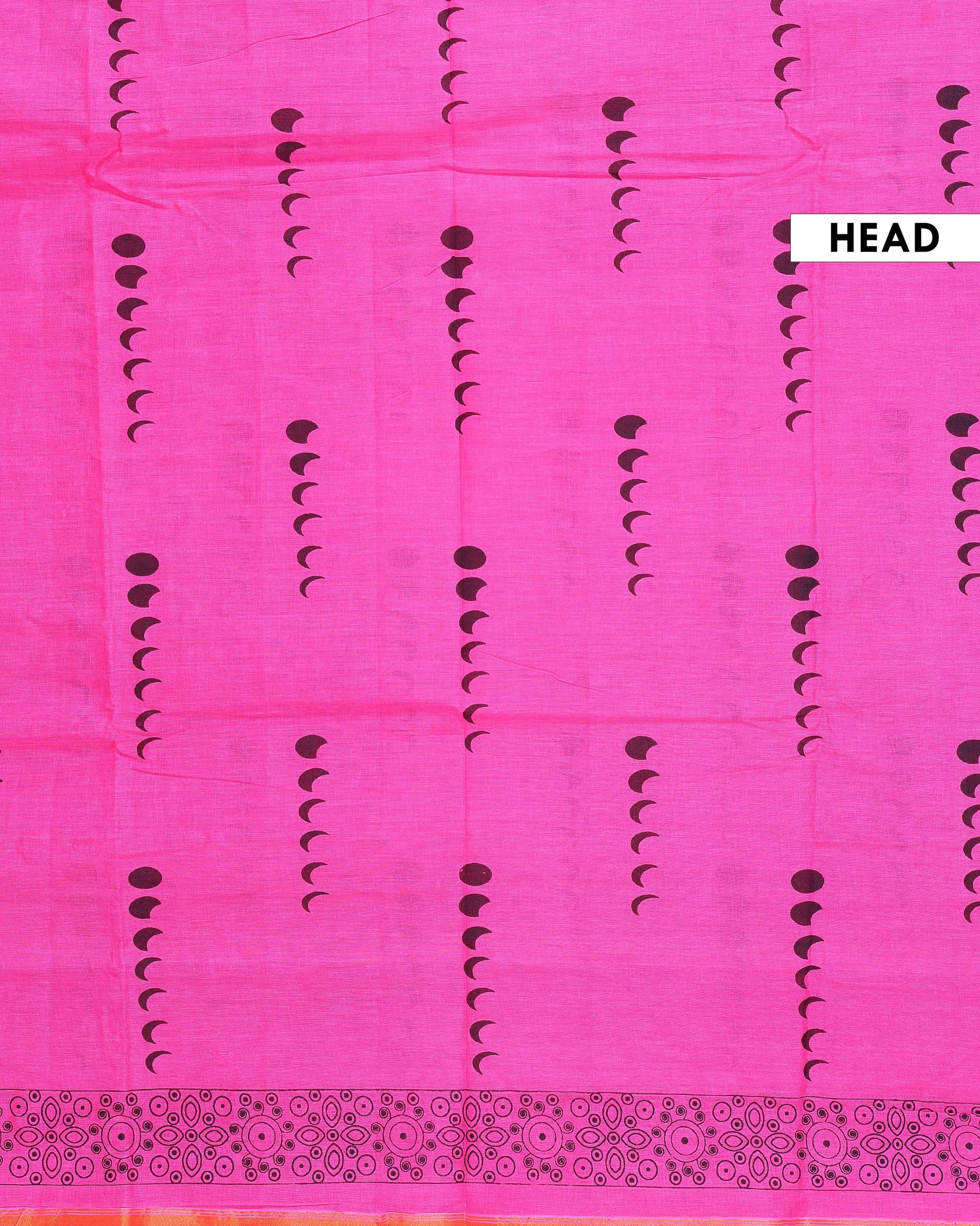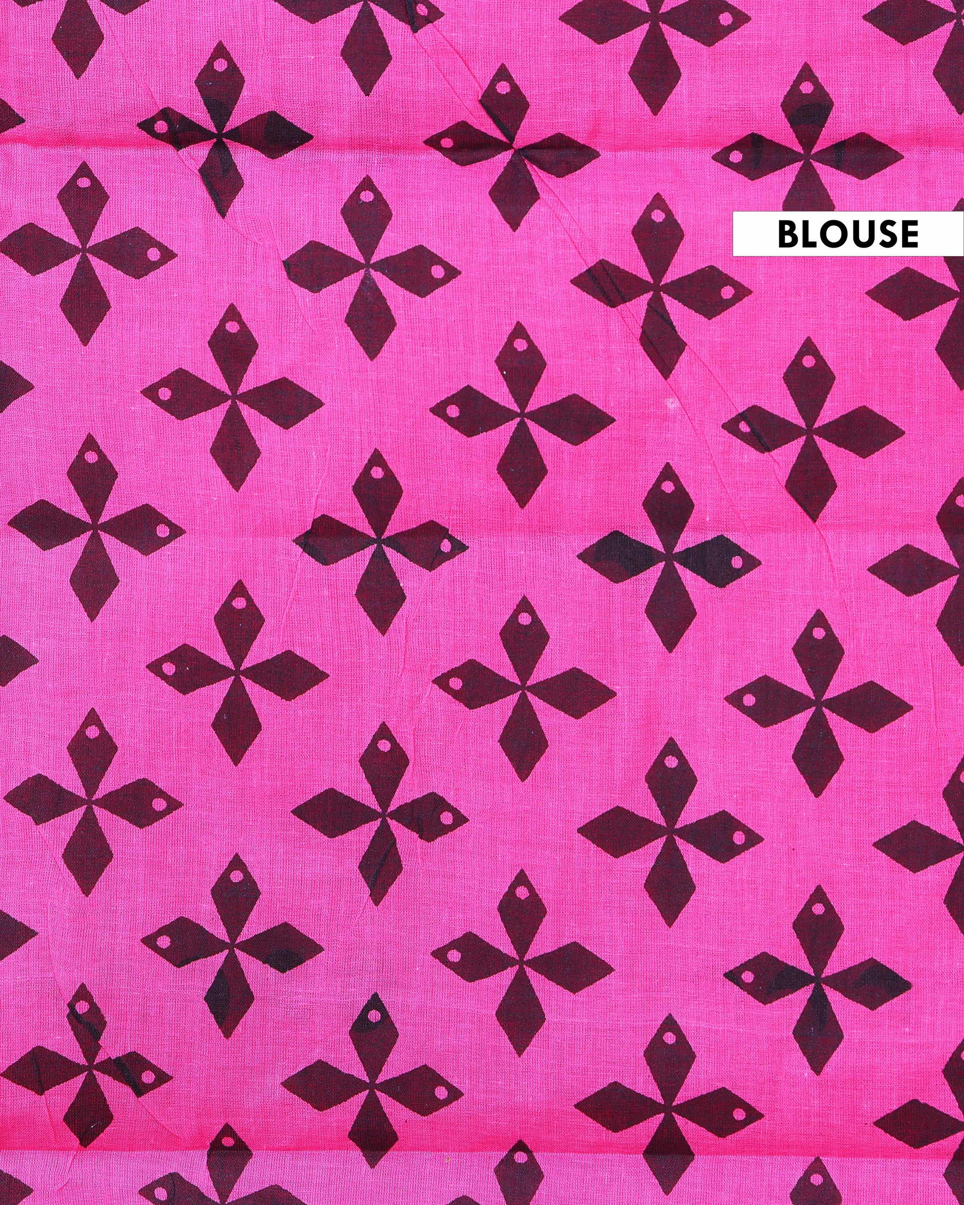 Traditional Hand Block Printed Mul Mul Semi Cotton Saree with Floral Border - Pink