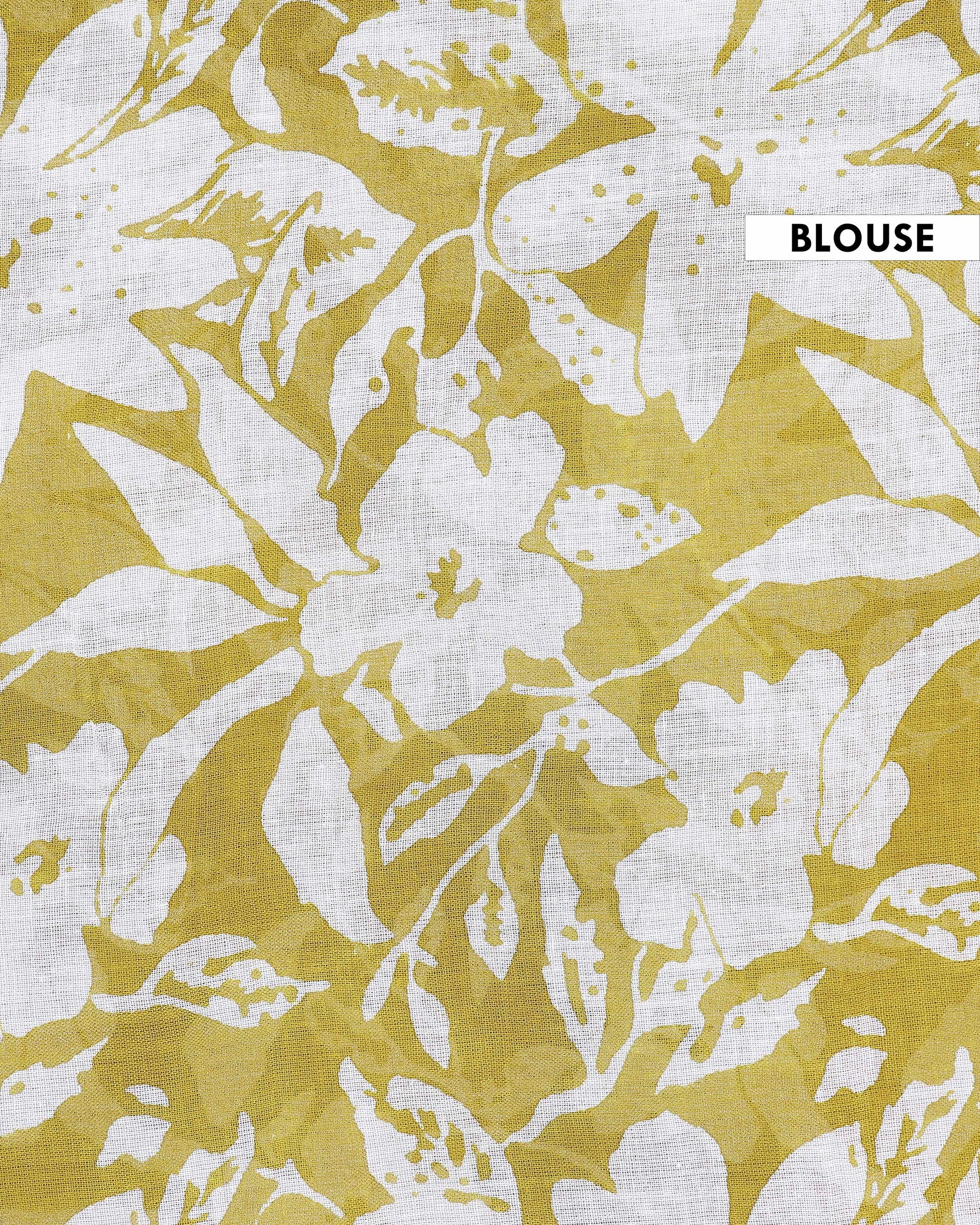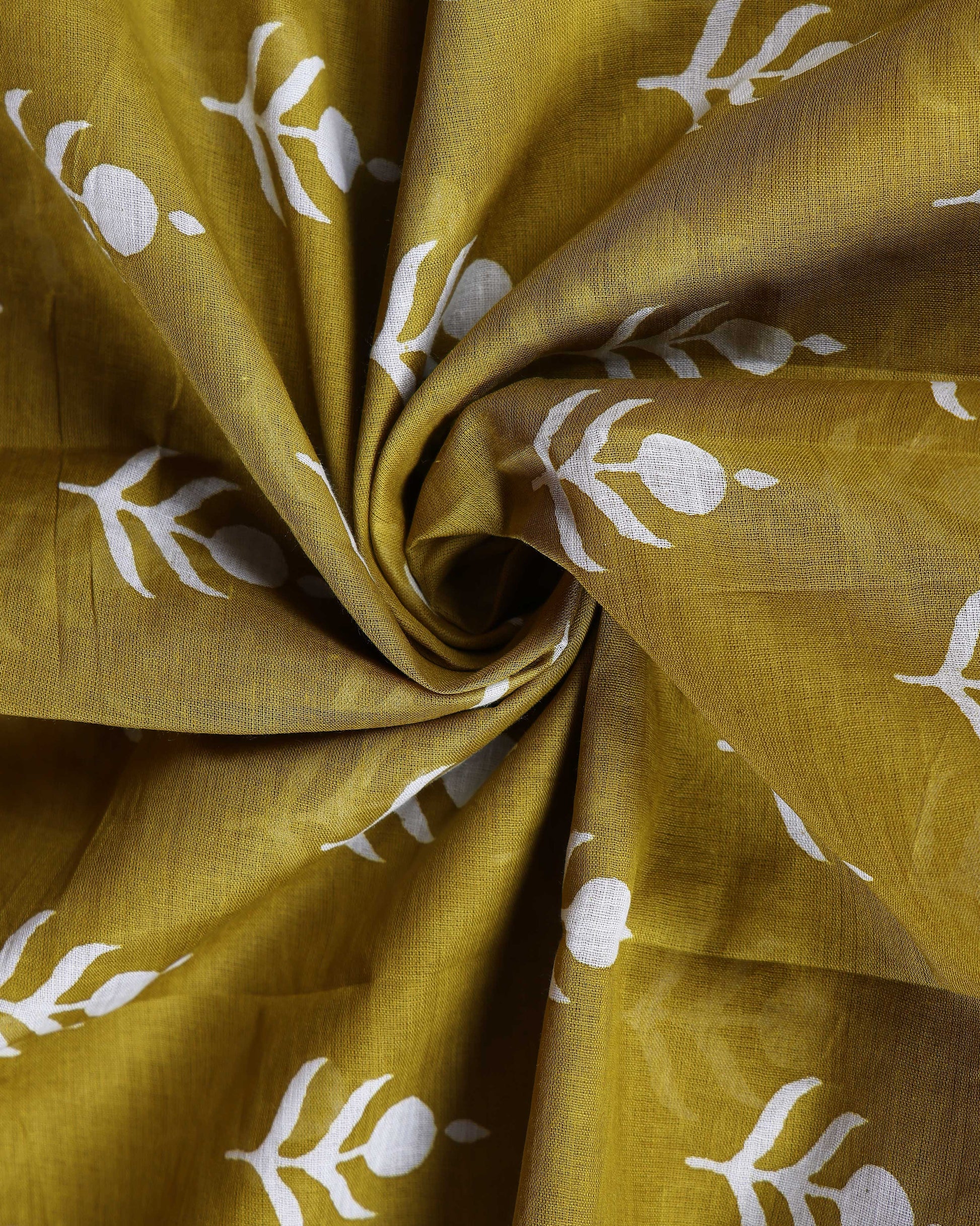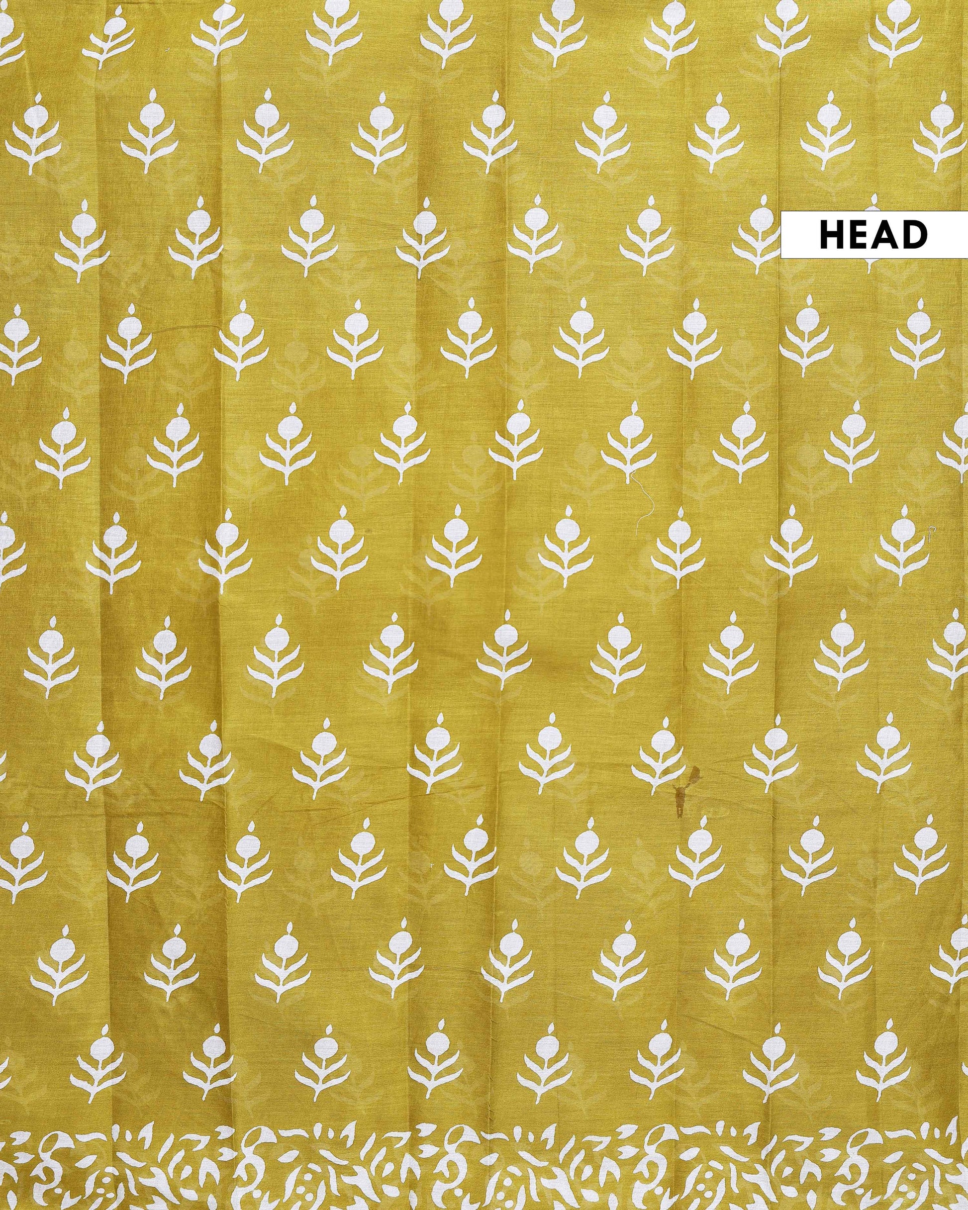 Traditional Hand Block Printed Mulmul Semi Cotton Saree with Floral Motif - Green
