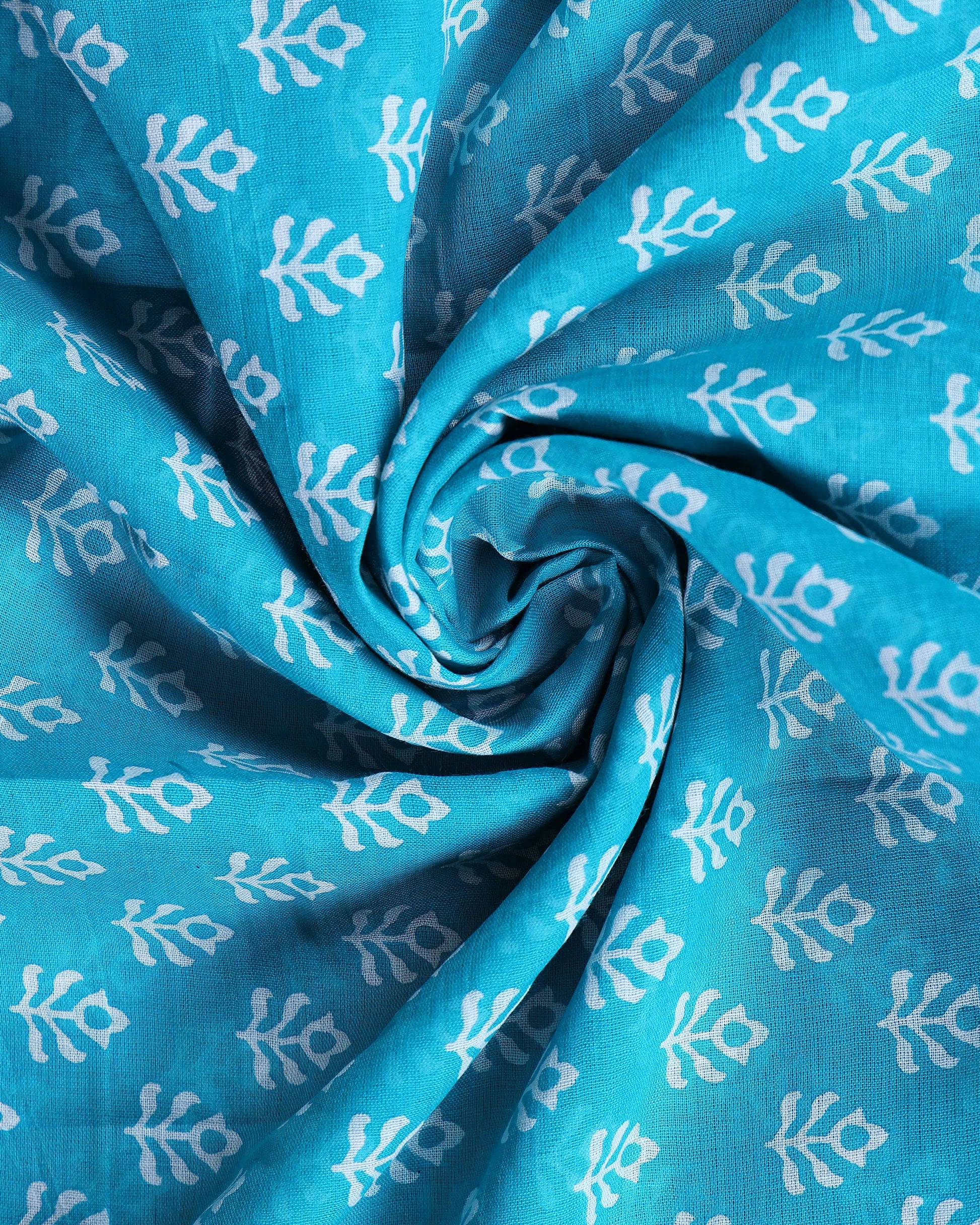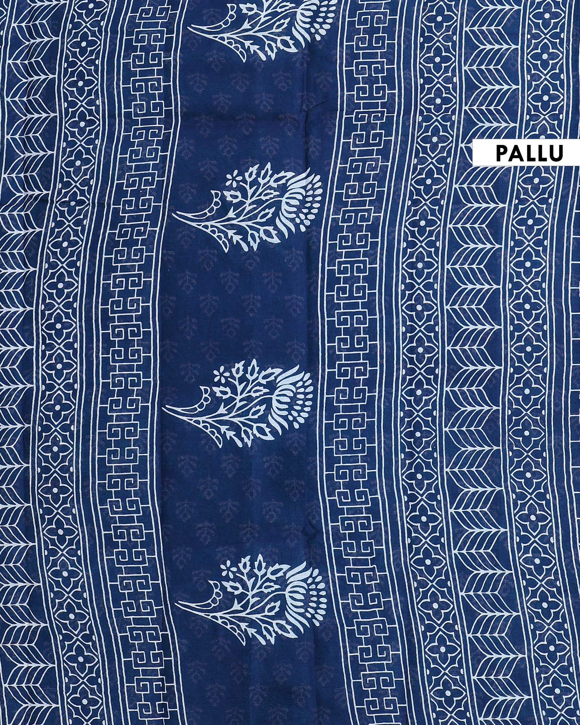 Traditional Hand Block Printed Mulmul Semi Cotton Saree with Intricate Border - Sky Blue
