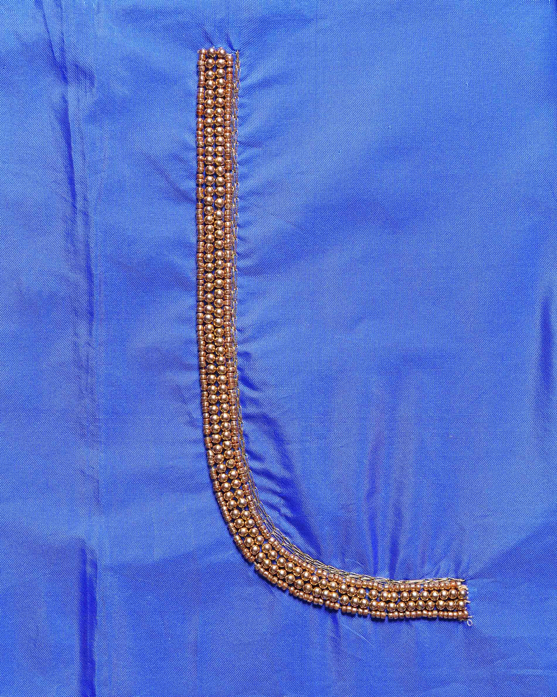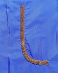 Traditional Hand-Embroidered Blouse Material with Aari Work - Royal Blue