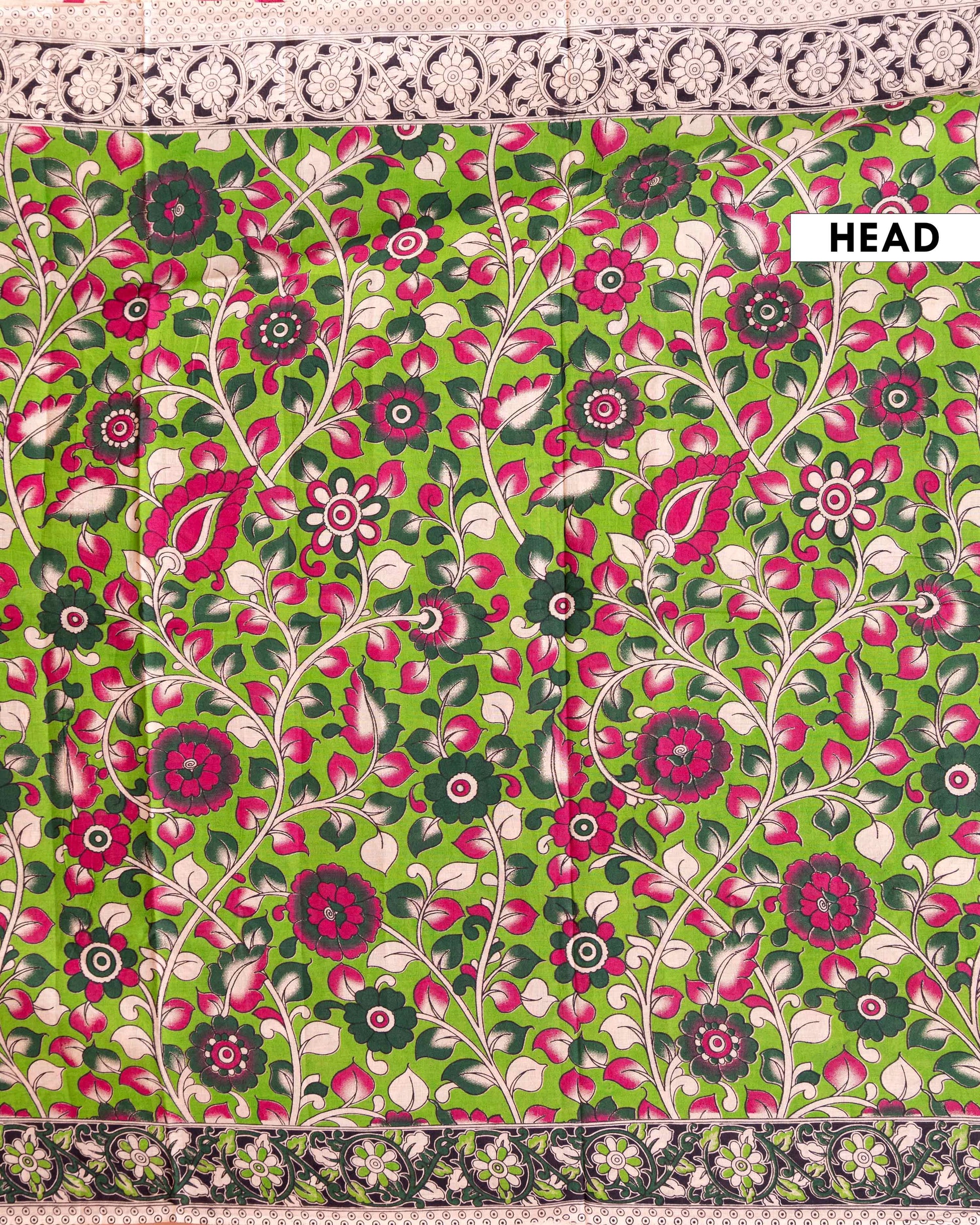 Traditional Handcrafted Kalamkari Cotton Saree with Traditional Floral Motifs - Green