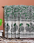 Traditional Handblock Printed Kalamkari Cotton Saree with Traditional Peacock & Floral Motifs - Green