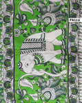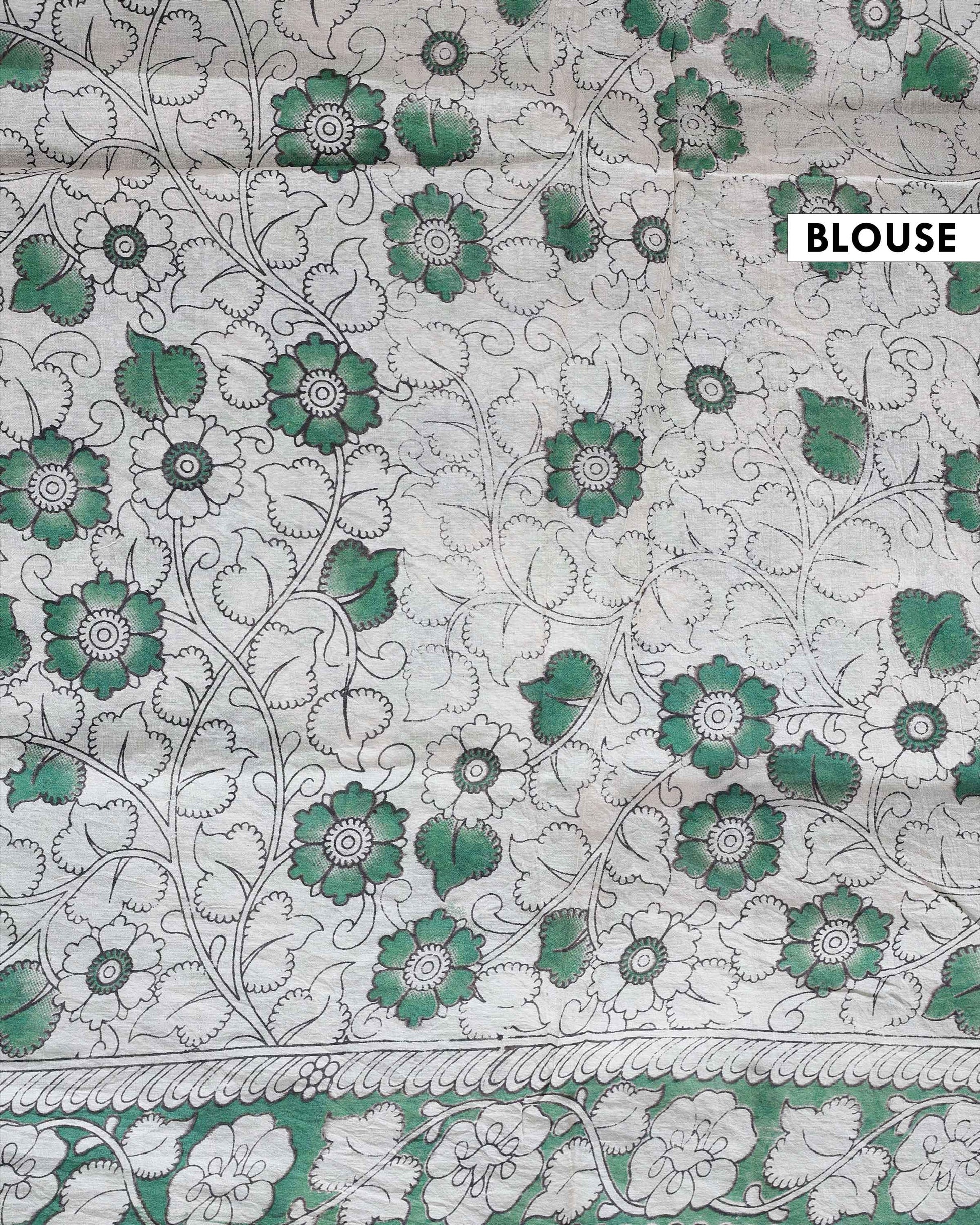 Handcrafted Kalamkari Cotton Saree with Traditional Floral Motifs - Green