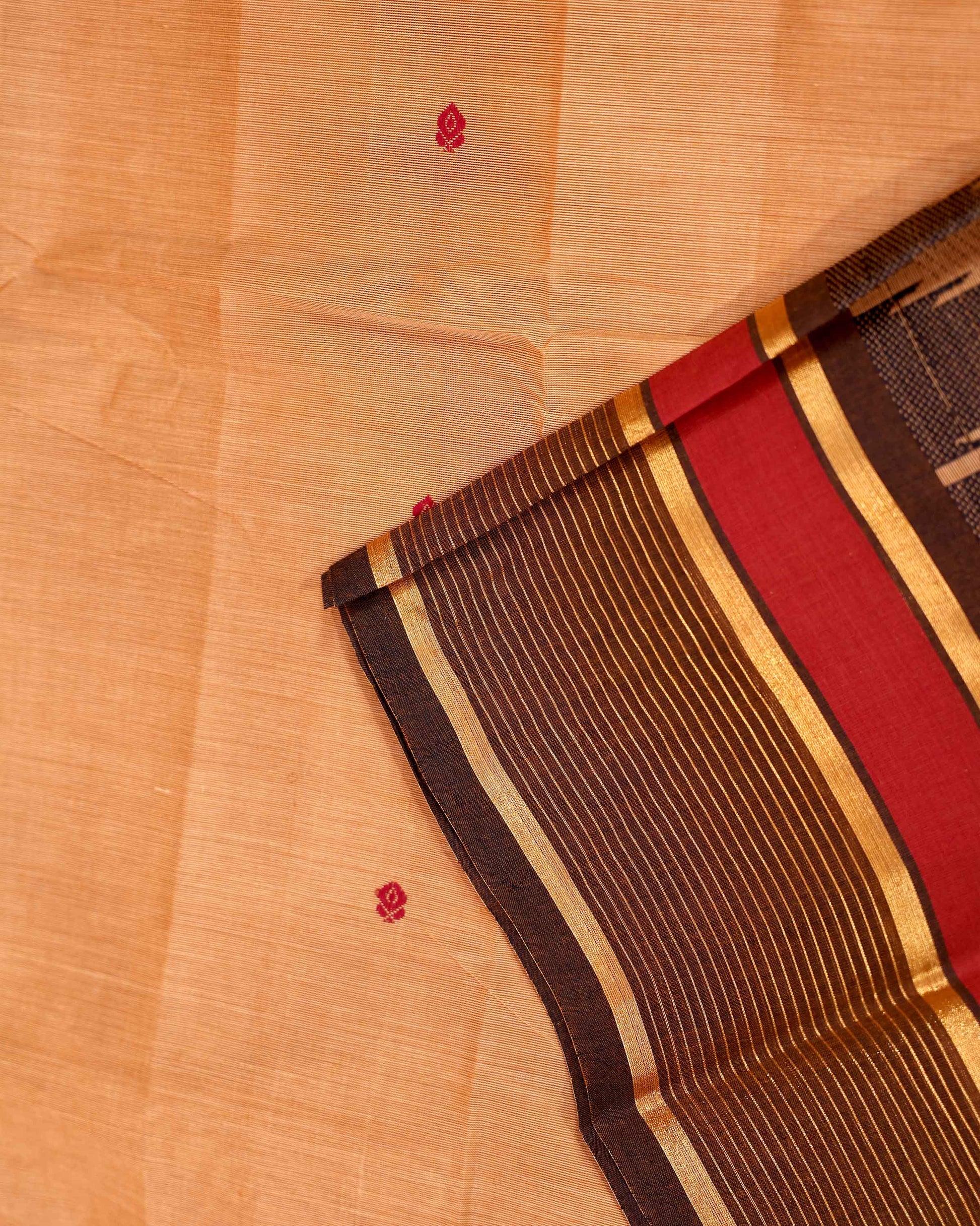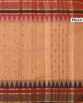 - This handloom Chettinad cotton saree in a classic Beige a traditional weave and a striking temple inspired border.