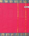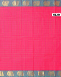 Traditional Handloom Chettinad Cotton Saree with Checked and Elephant Border - Pink