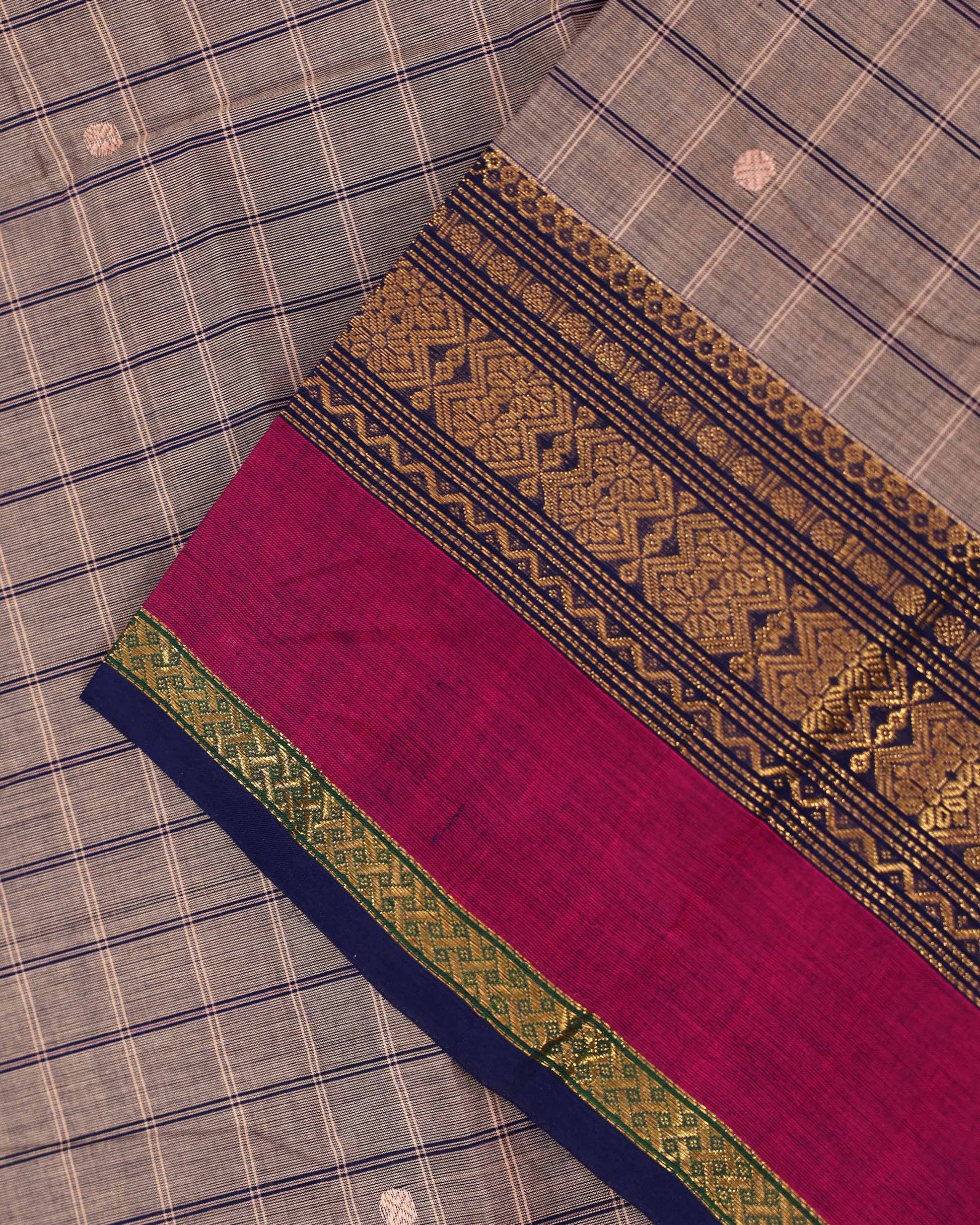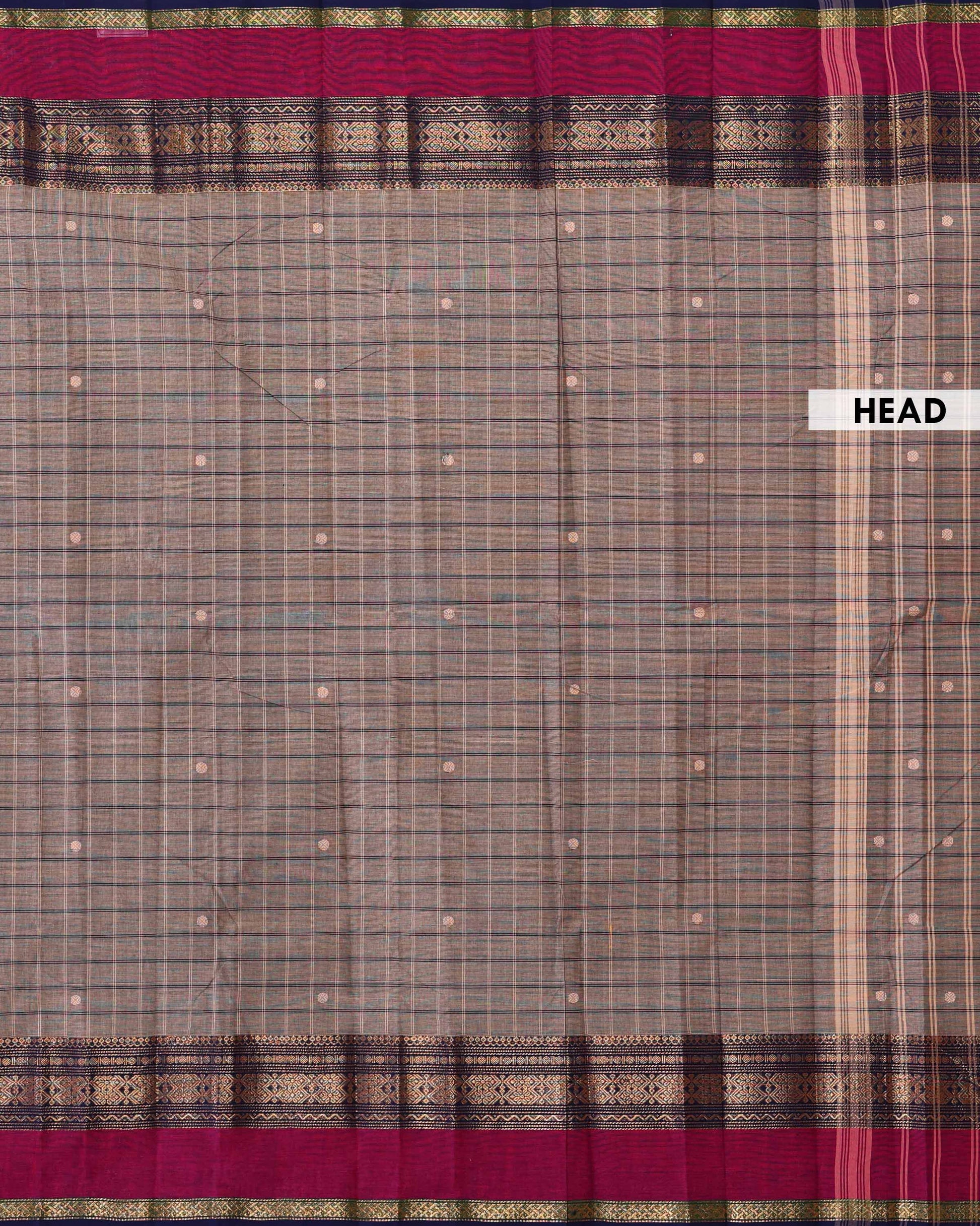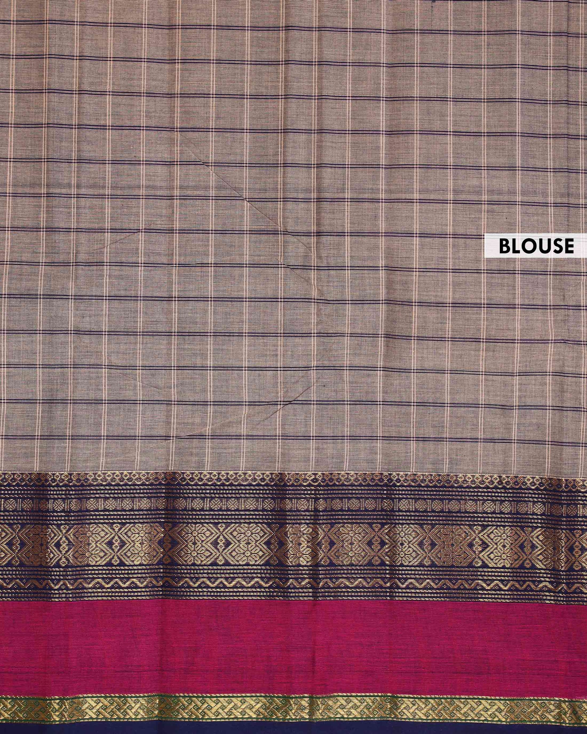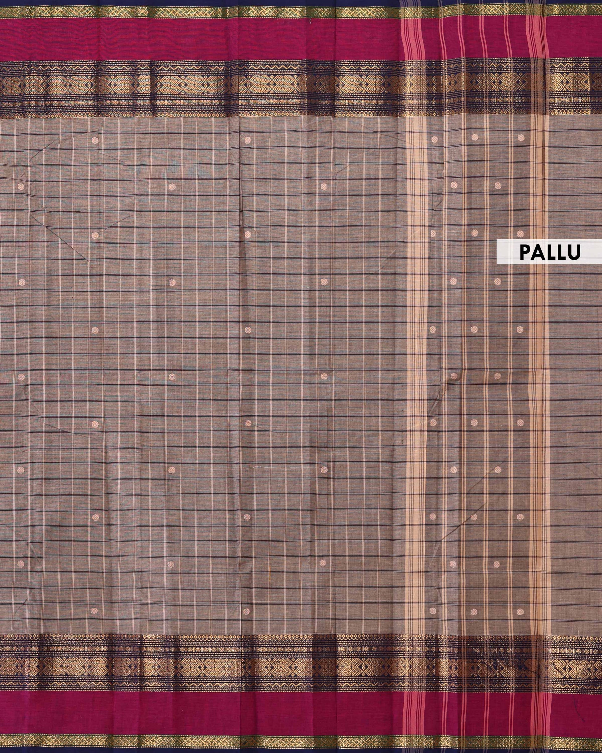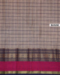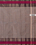 Traditional Handloom Chettinad Cotton Saree with Checked Body and Zari Woven Border - Brown (Copy)