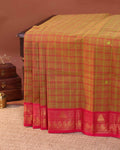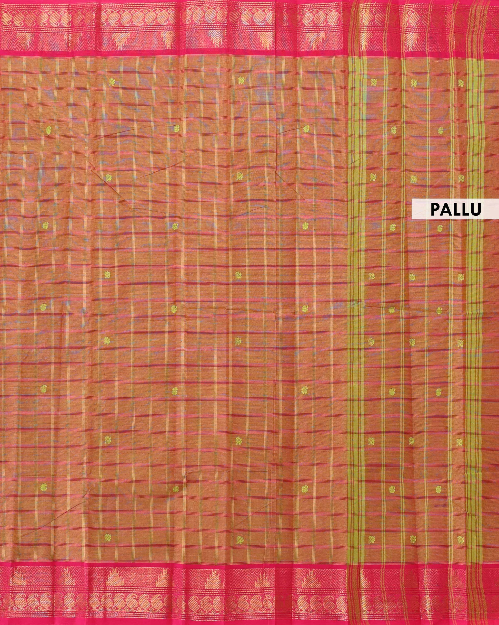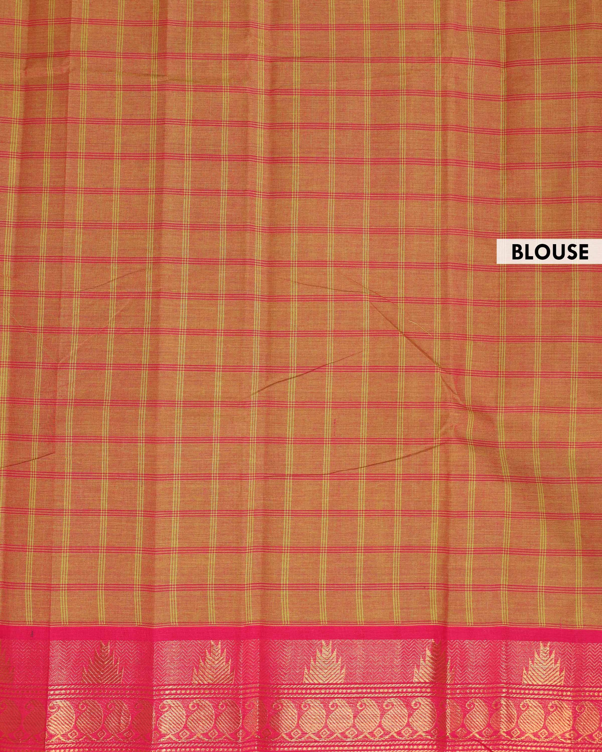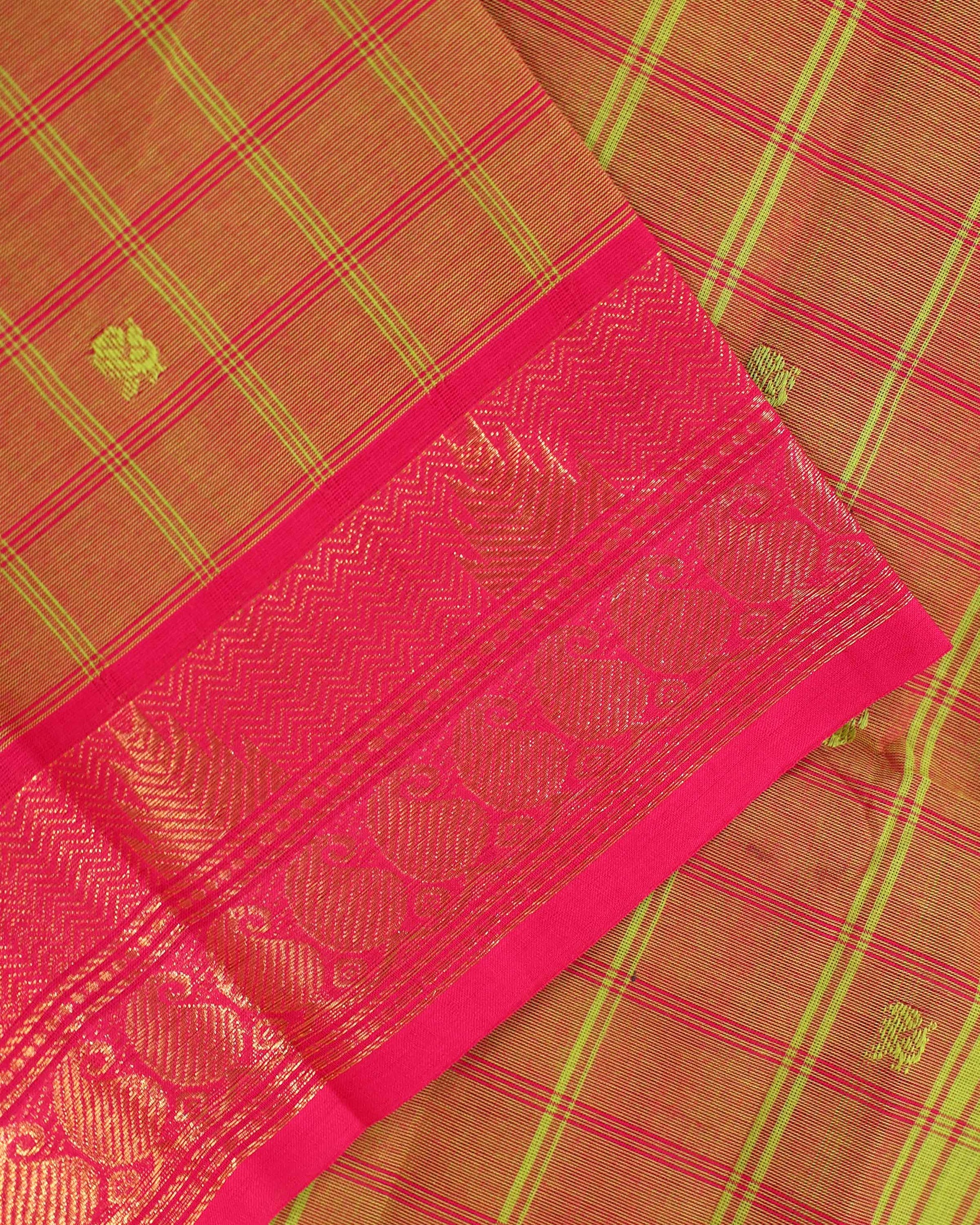 Traditional Handloom Chettinad Cotton Saree with Checked Body and Zari Woven Border - Orange