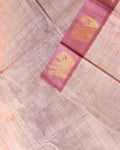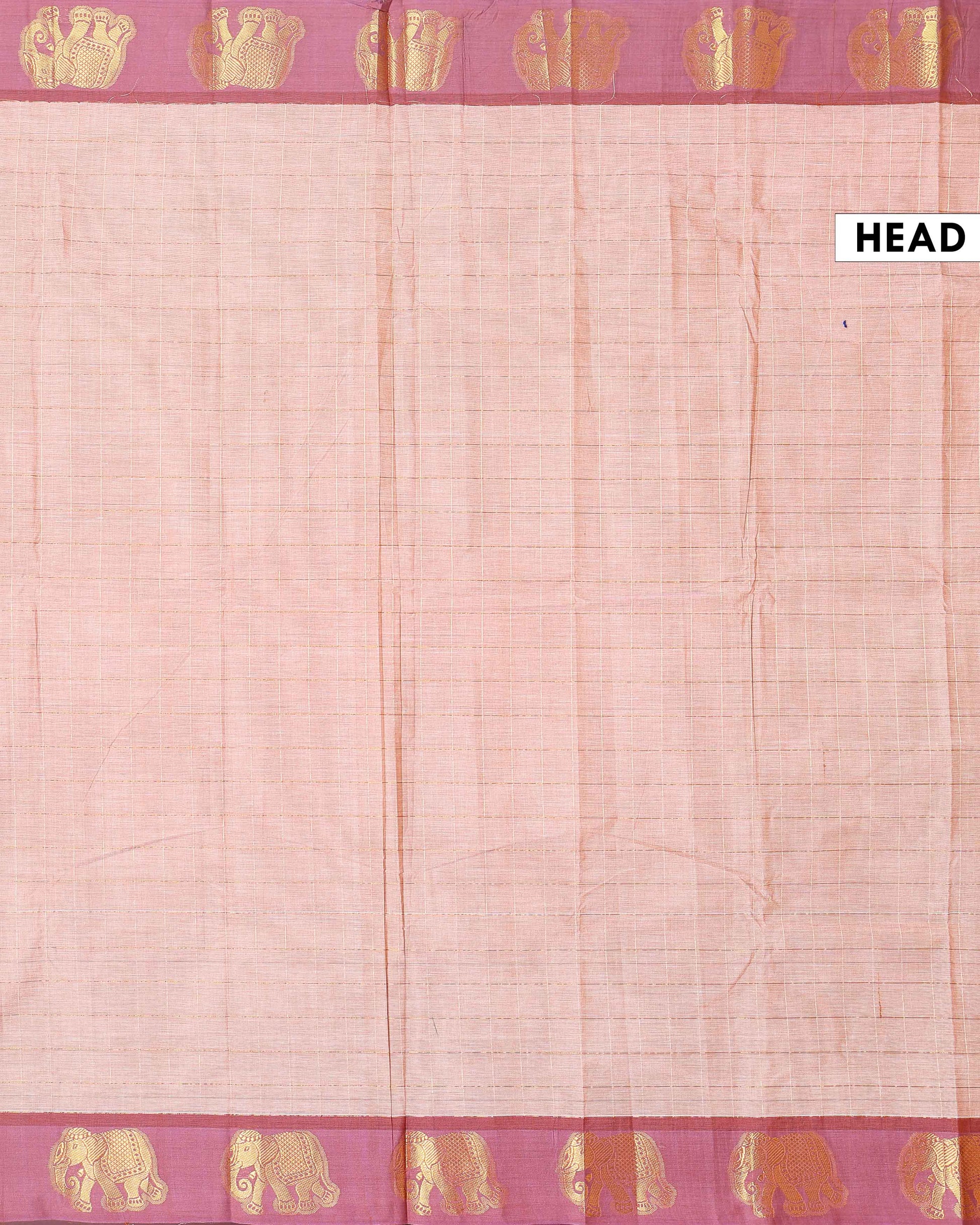 Traditional Handloom Chettinad Cotton Saree with Checks and Elephant Border - Sandal