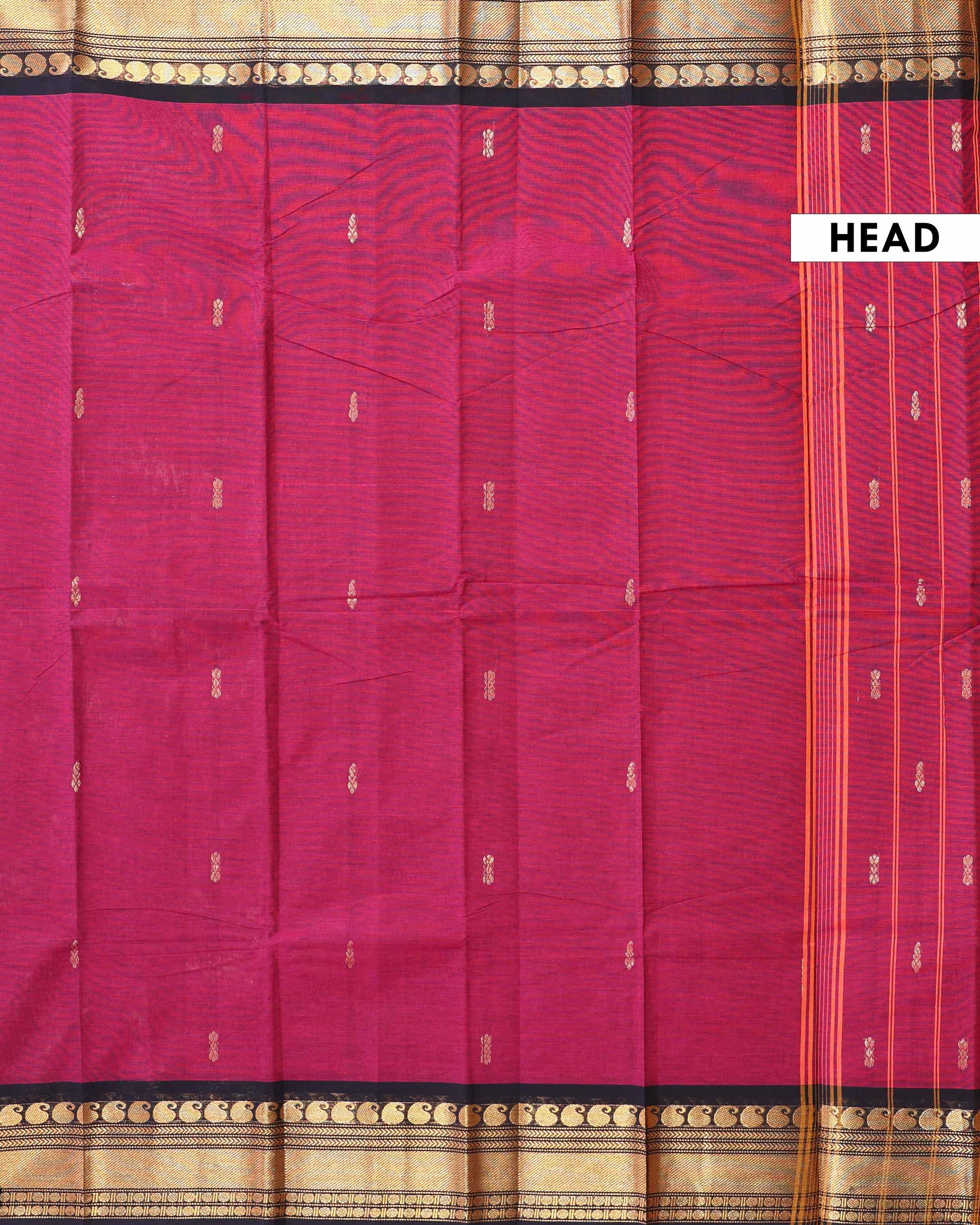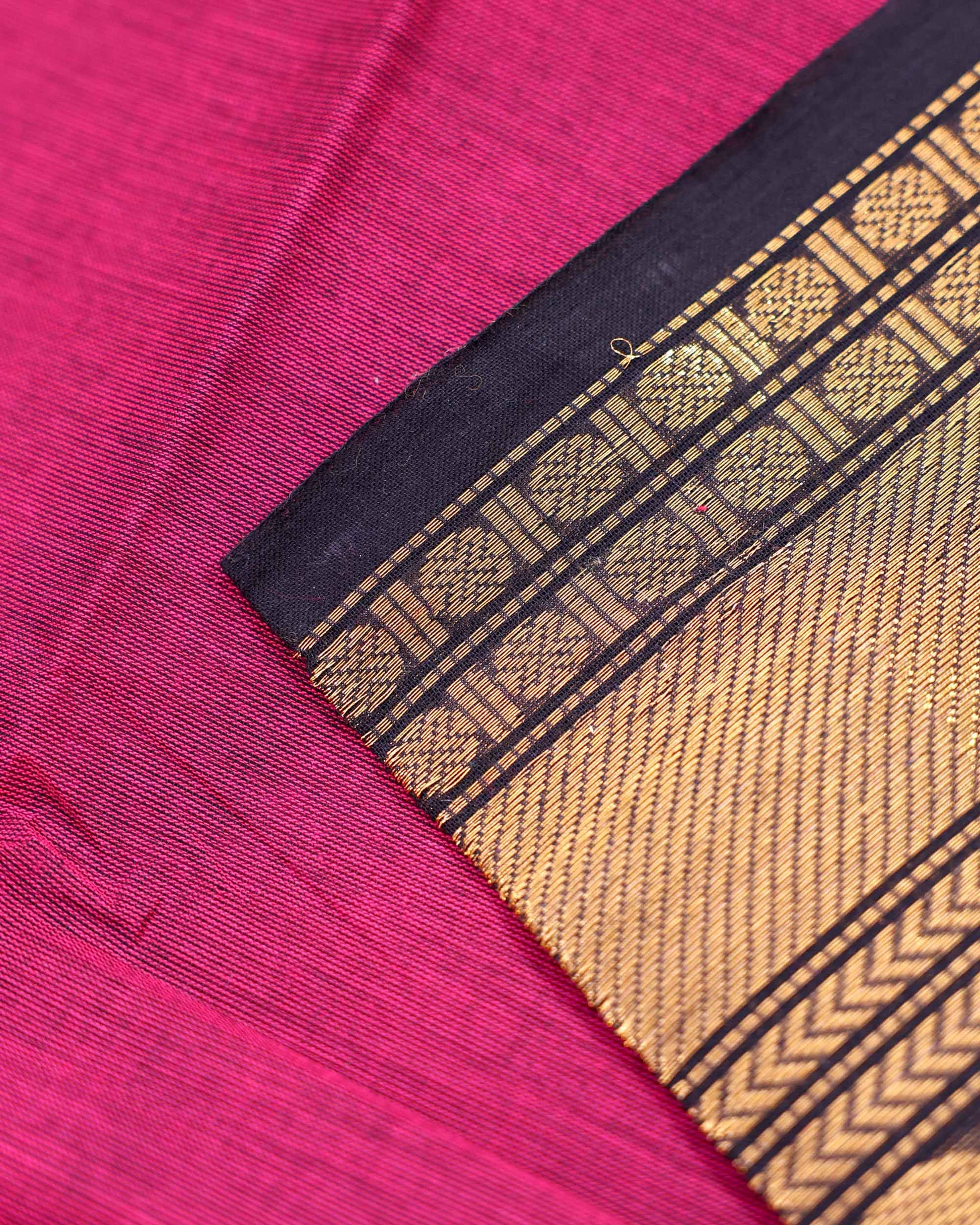 - Embrace timeless tradition with this stunning magenta Chettinad cotton saree a classic black Korvai border adorned with intricate manga zari motifs