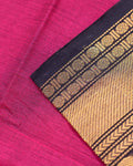 Traditional Handloom Chettinad Cotton Saree with Classic Contrast Zari Border - Magenta
