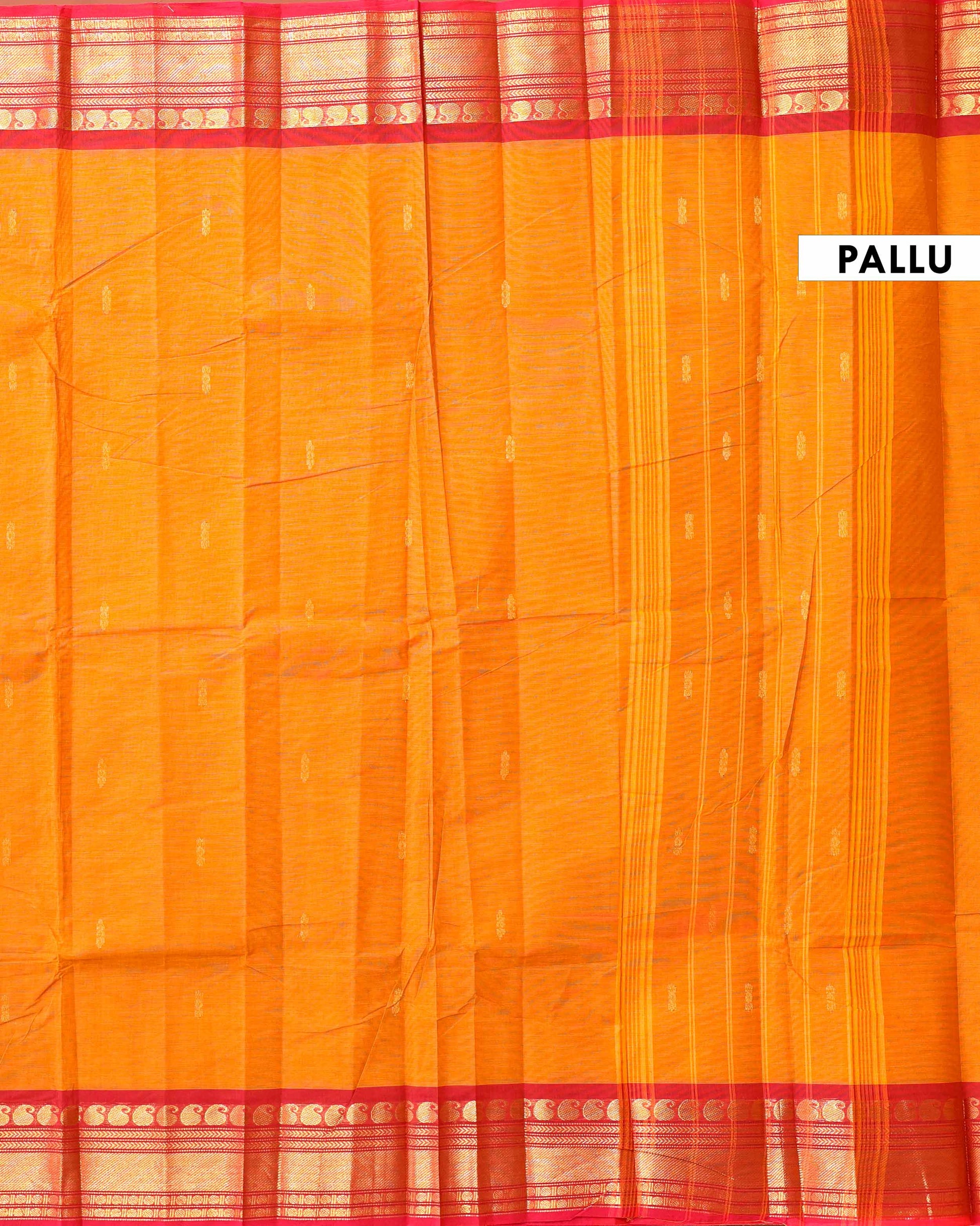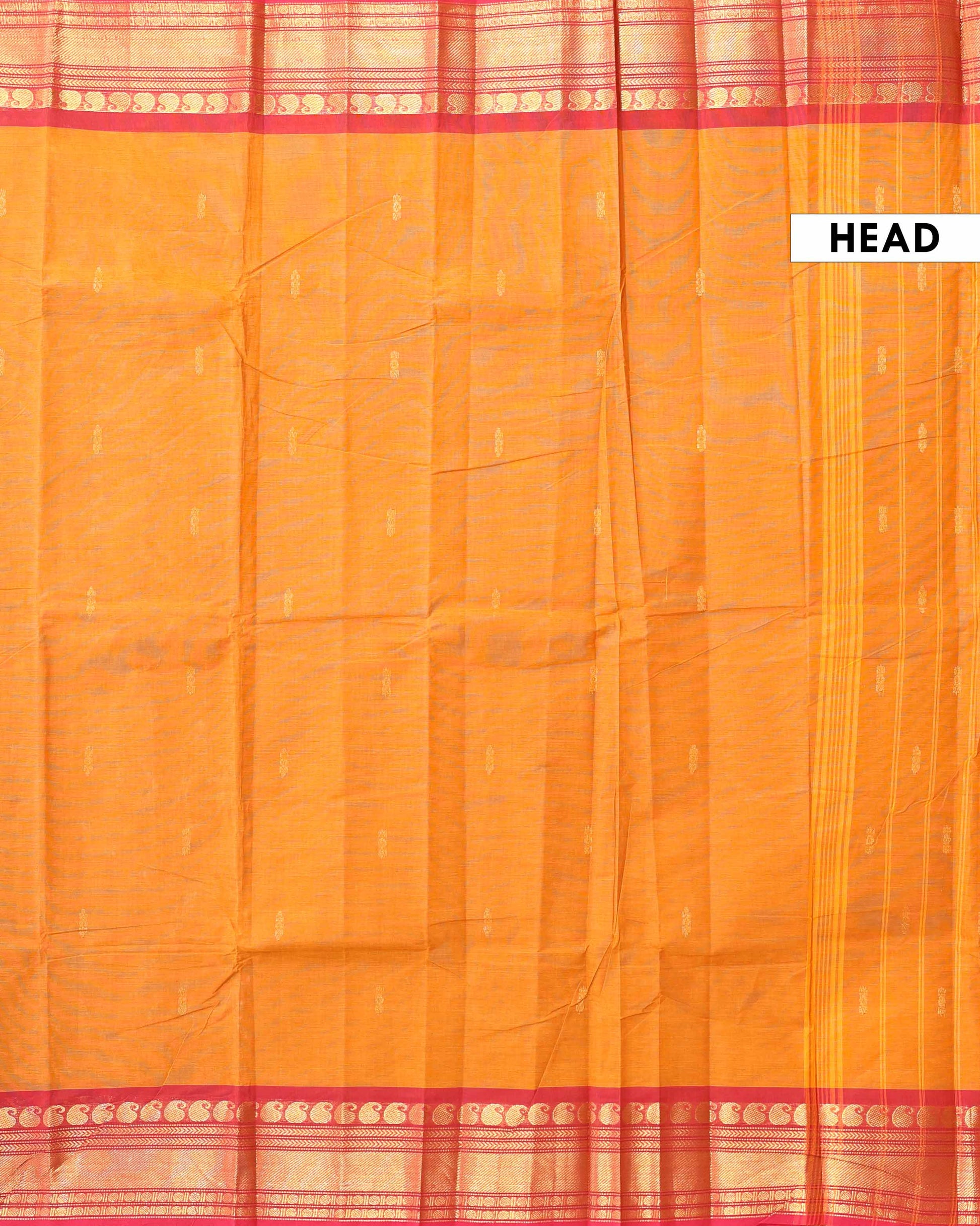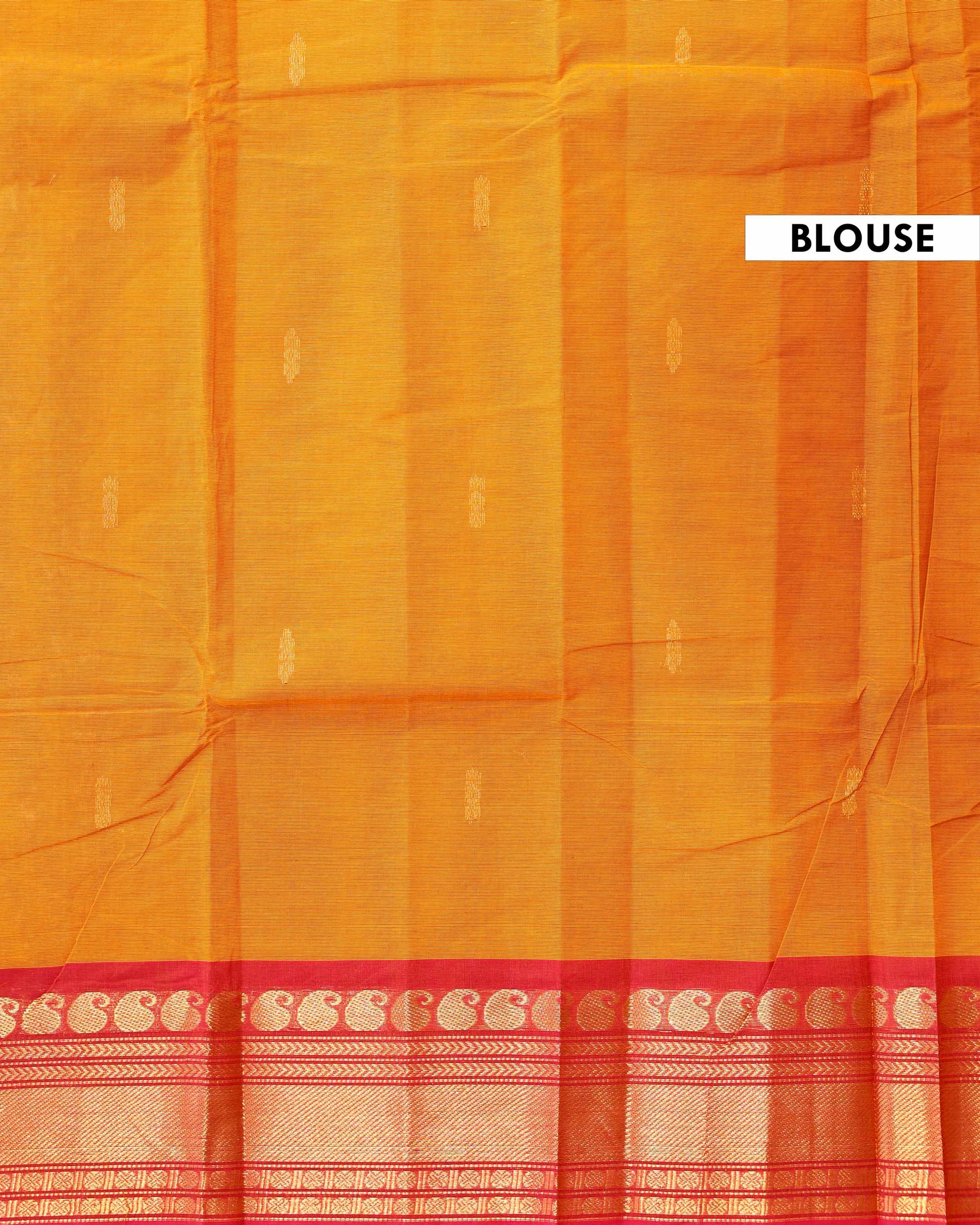 Traditional Handloom Chettinad Cotton Saree with Classic Contrast Zari Border - Yellow