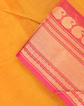 - This stunning yellow Chettinad cotton saree offers a blend of traditional charm and modern comfort perfect for any occasion
