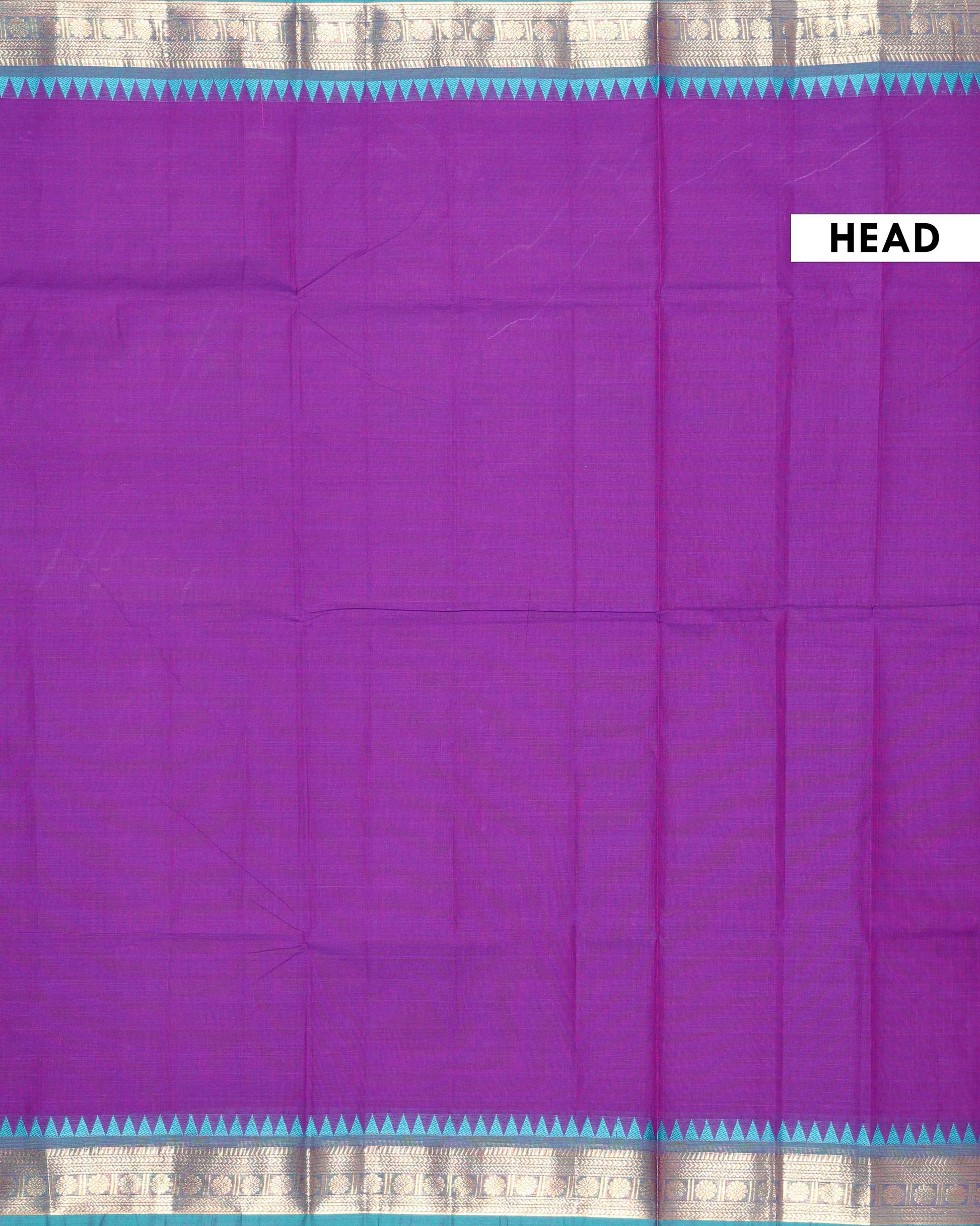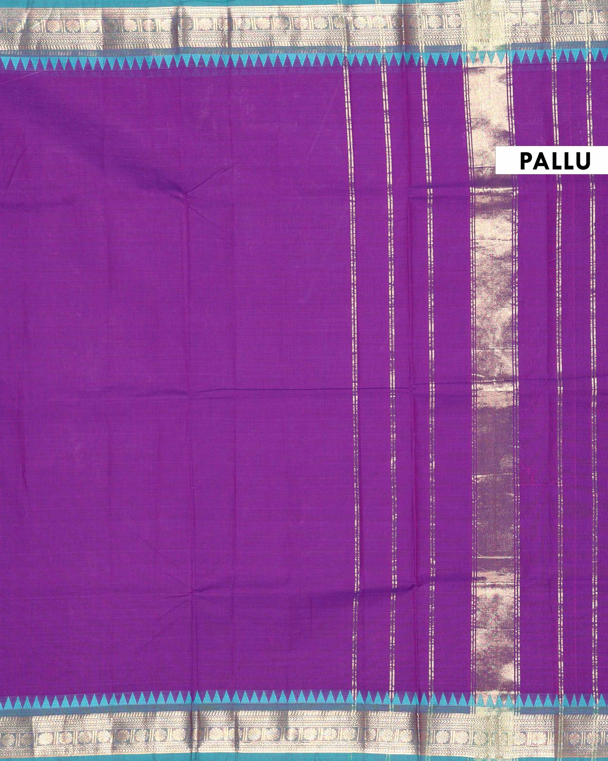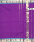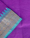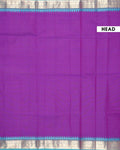 This elegant purple saree intricate geometric zari motifs and a contrast temple border, perfect for any traditional occasion.
