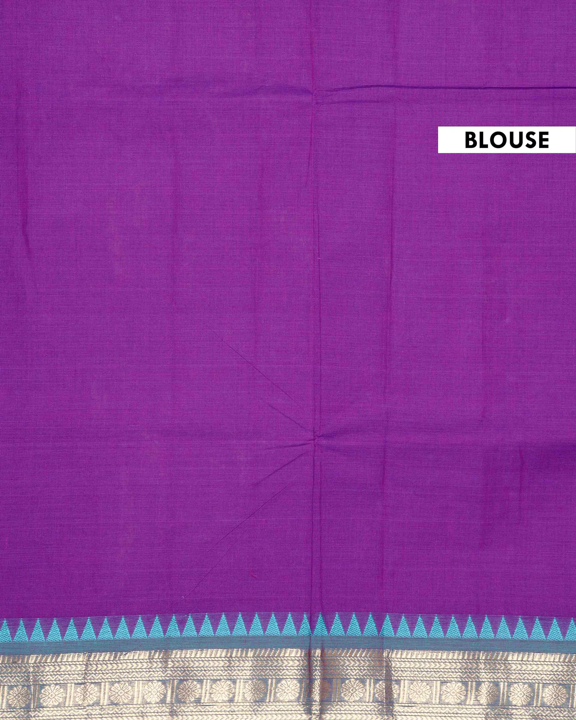 Traditional Handloom Chettinad Cotton Saree with Intricate Zari Woven Border and Classic Geometric Pallu Design - Purple