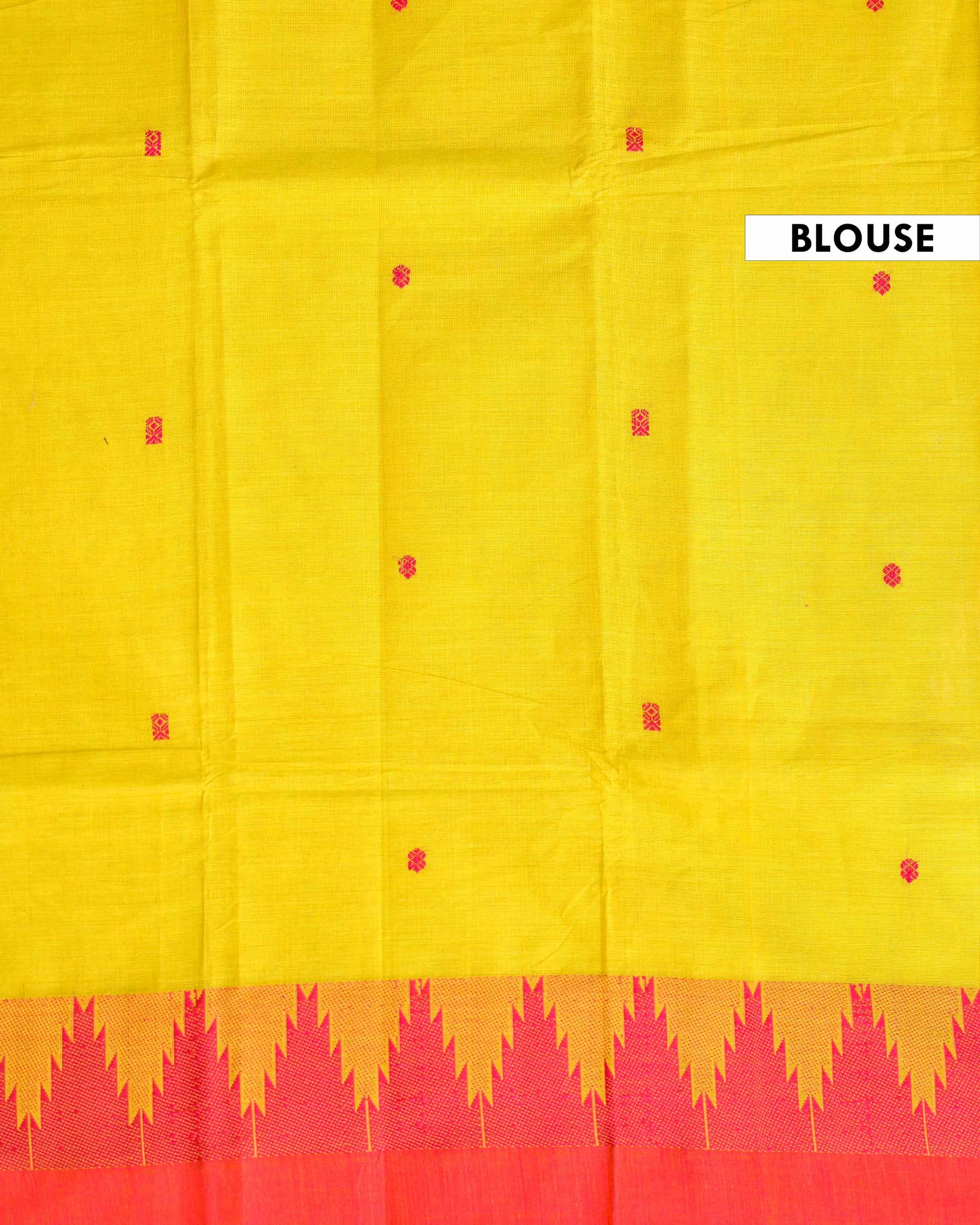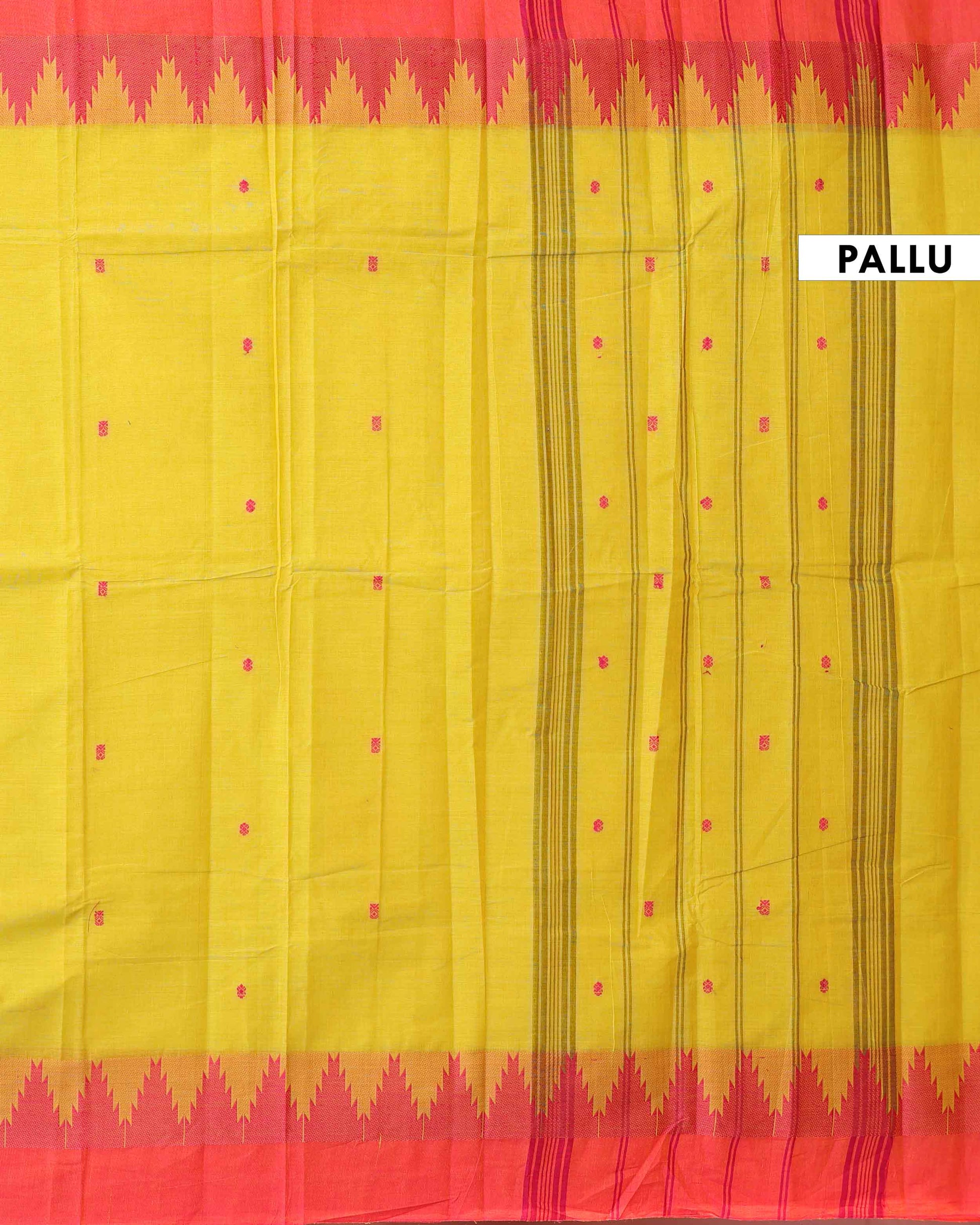 This handloom cotton saree offers traditional charm and is an ideal, comfortable choice for daily wear or formal events.