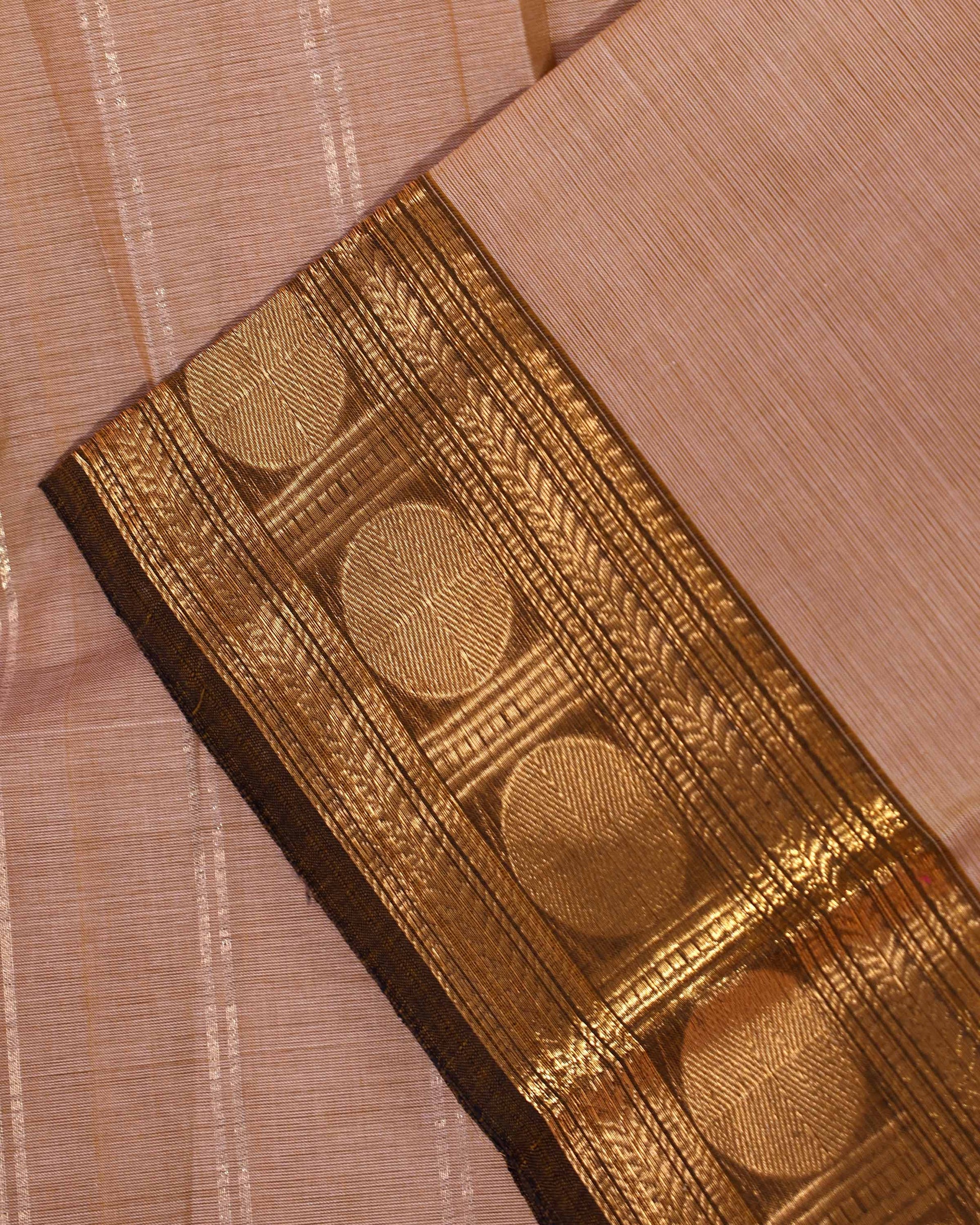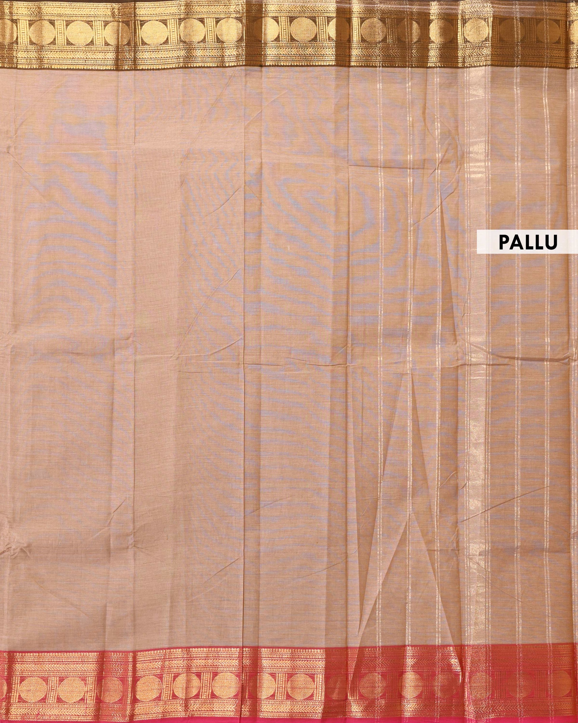 Traditional Handloom Chettinad Cotton Saree with Plain Body and Elegant Zari Woven Ganga Jamuna Border - Beige