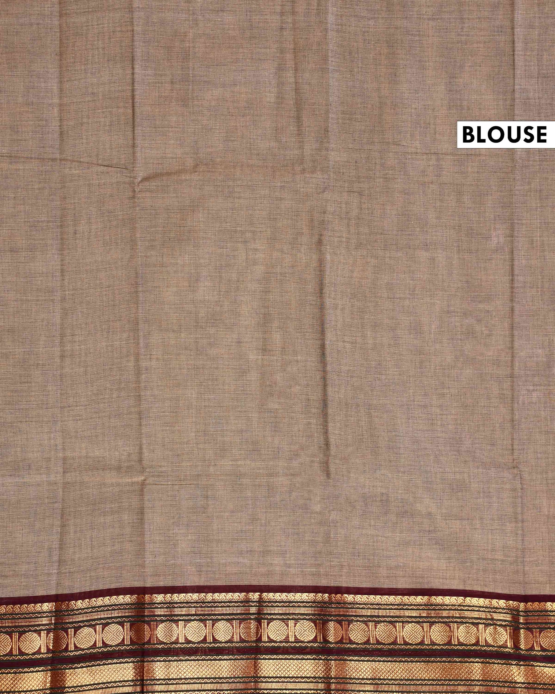 Traditional Handloom Chettinad Cotton Saree with Plain Body and Rich Zari Woven Border - Brown