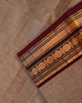 - This handloom Chettinad cotton saree in a classic Brown a traditional weave and a striking border in Zari