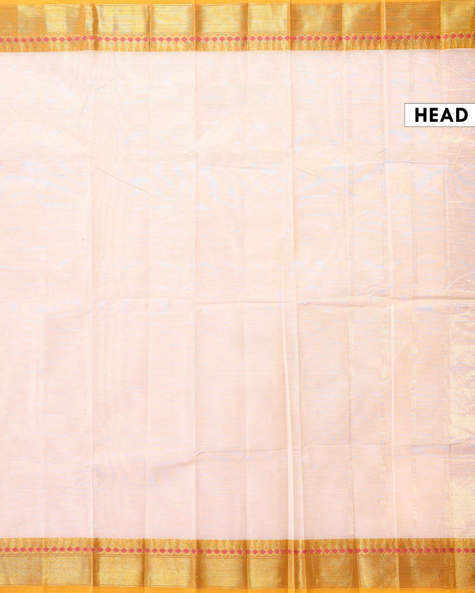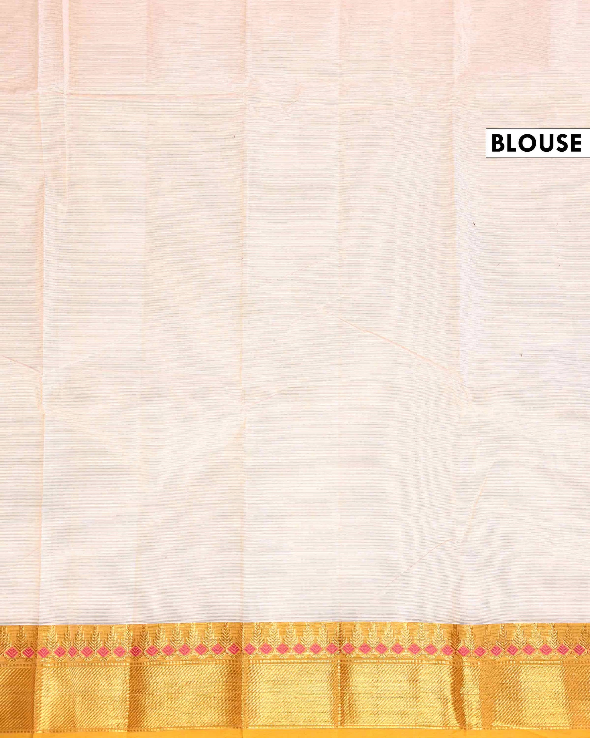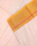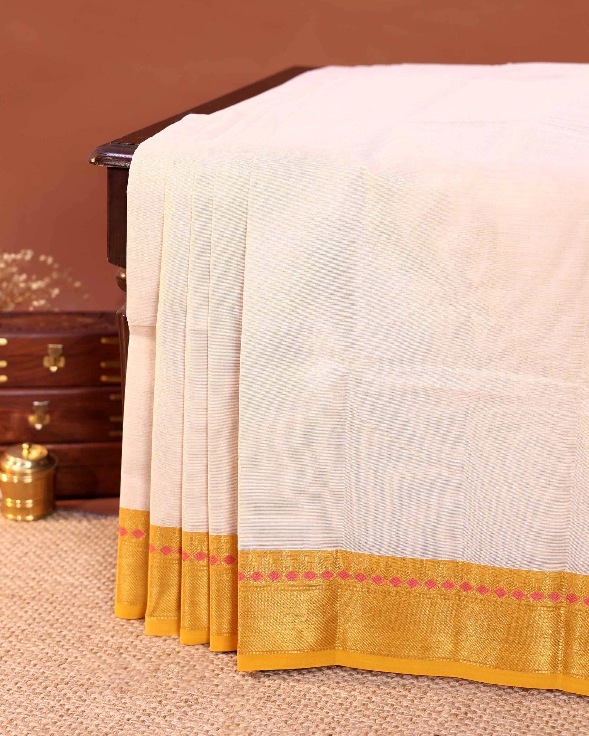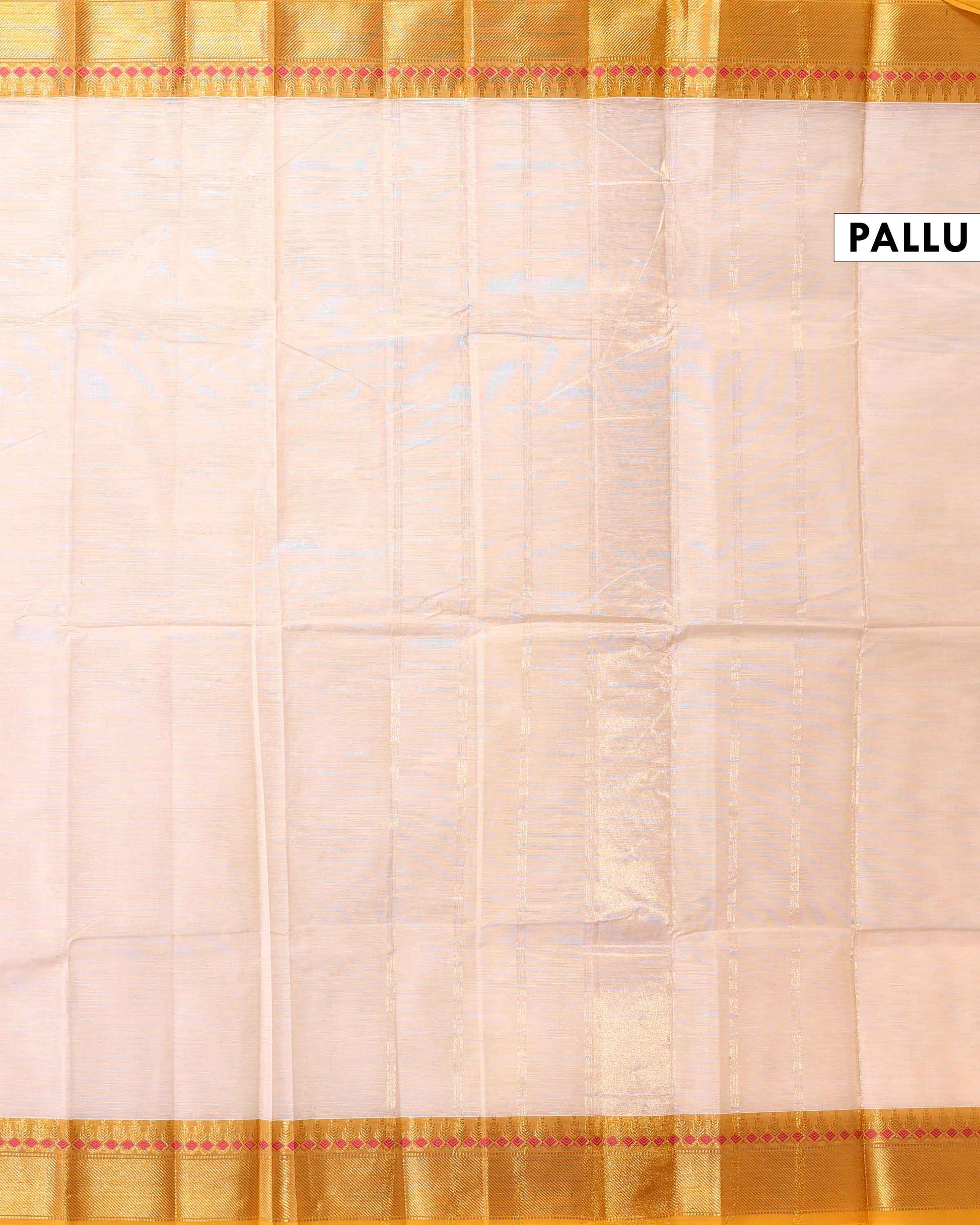 - Elevate ethnic style with this vibrant Beige Chettinad cotton saree a striking gold border adorned with traditional motifs
