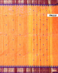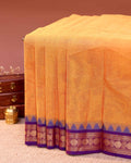 Traditional Handloom Chettinad Cotton Saree with Plain Body and Zari Woven Temple & Coin Motif Border - Orange