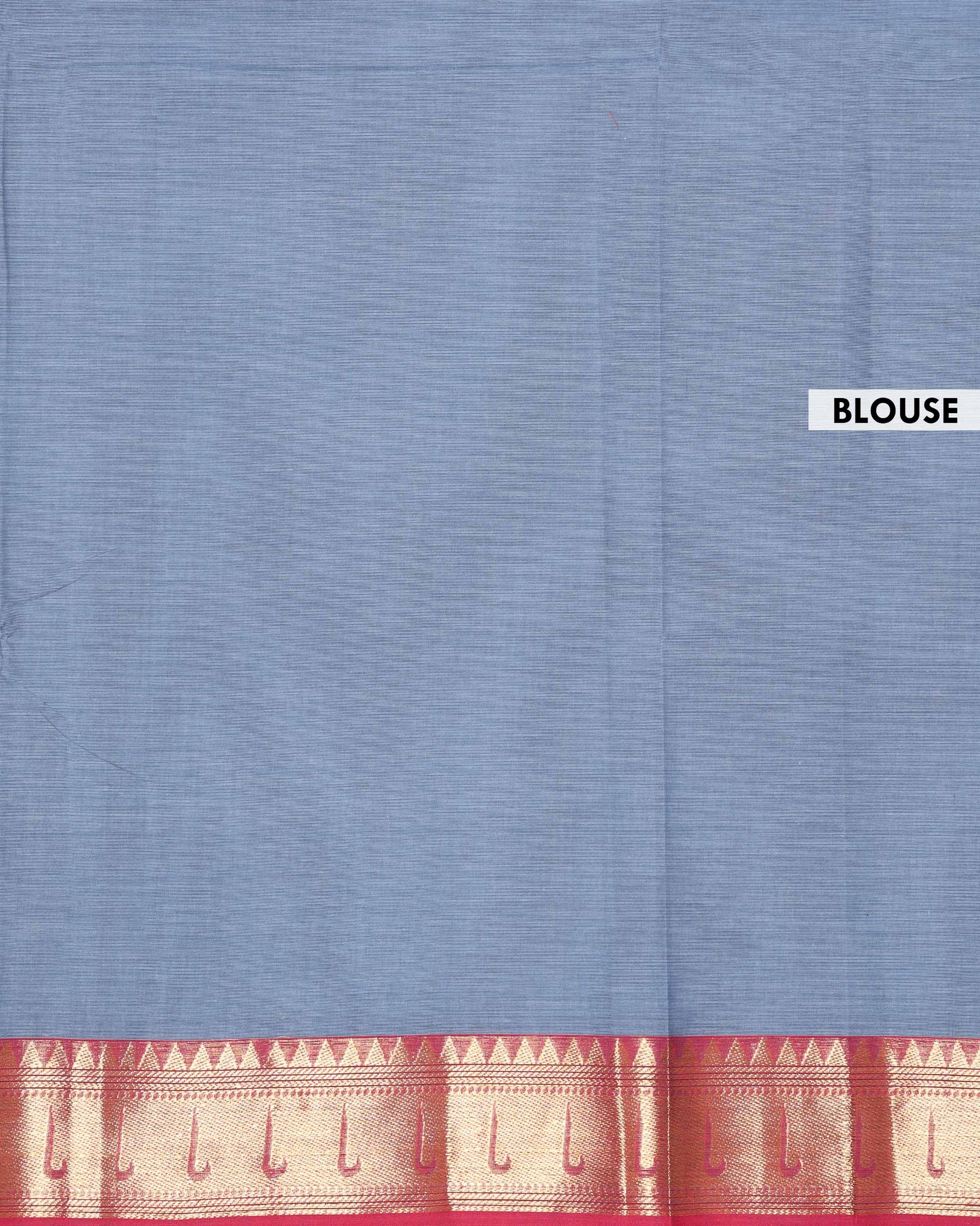 Traditional Handloom Chettinad Cotton Saree with Traditional Zari Border - Light Blue