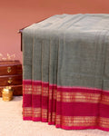 - Elevate your ethnic style with this handwoven grey Chettinad cotton saree a soft breathable body and a classic design