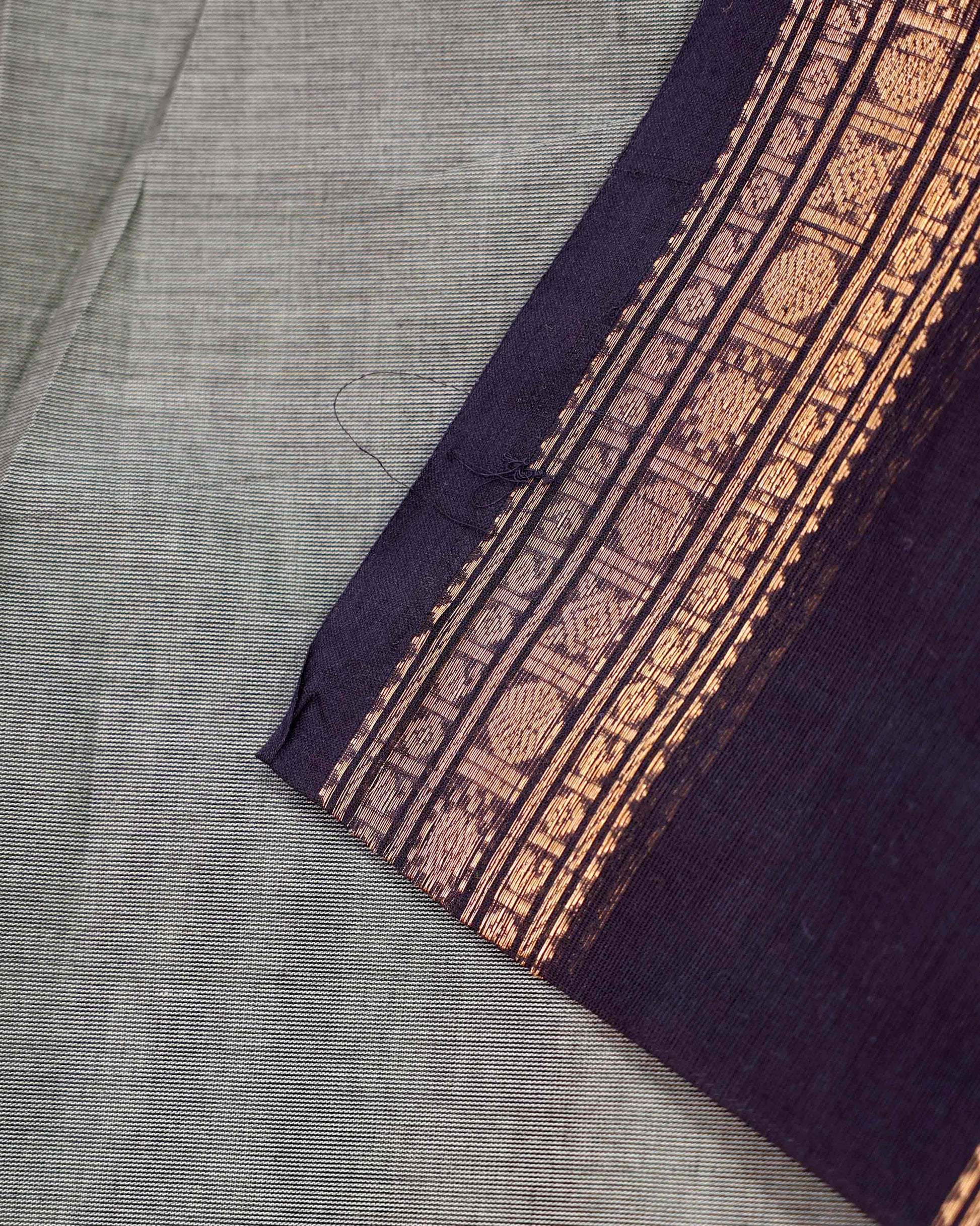 Traditional Handloom Chettinad Cotton Saree with Traditional Zari Woven Temple Border - Grey