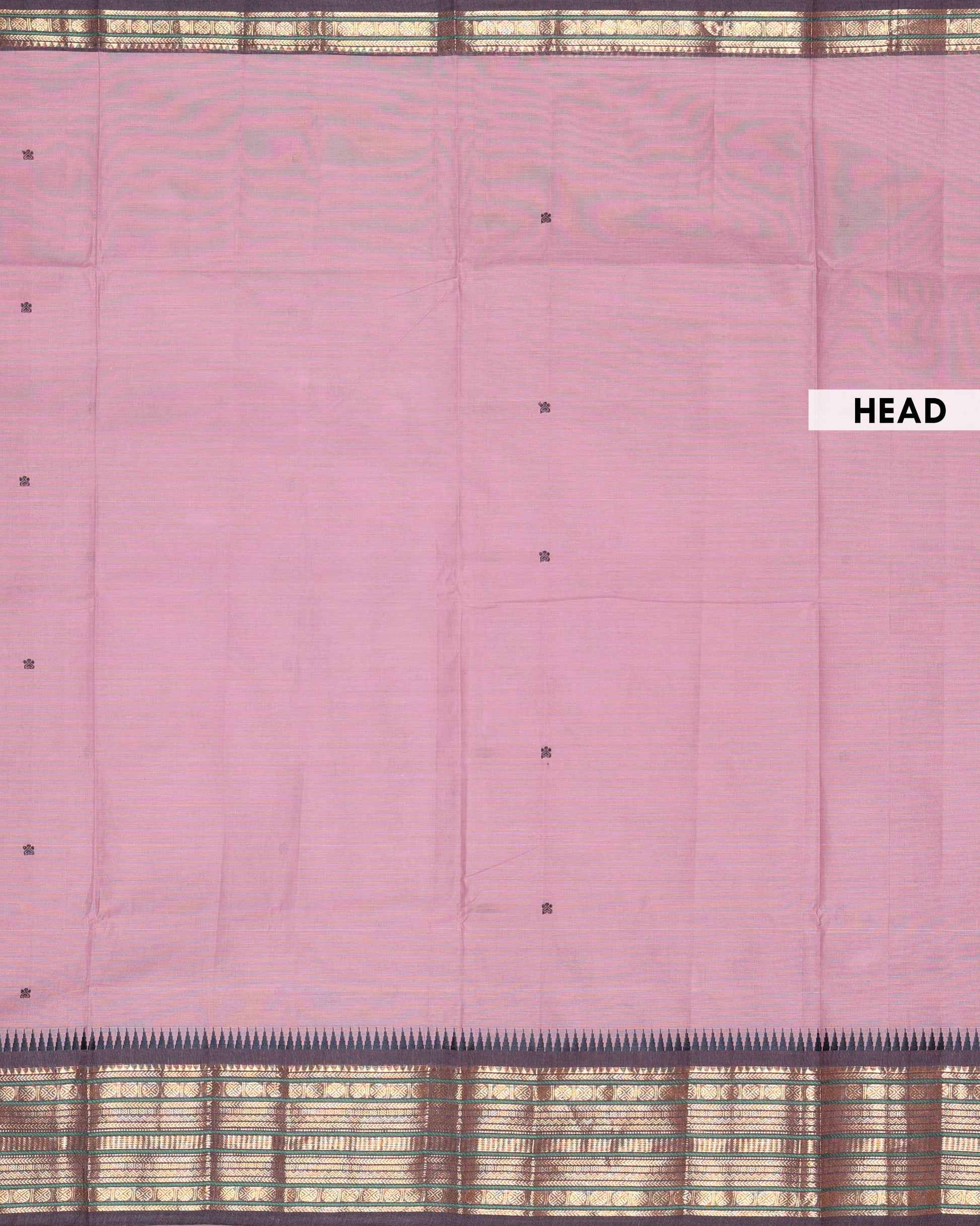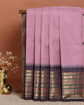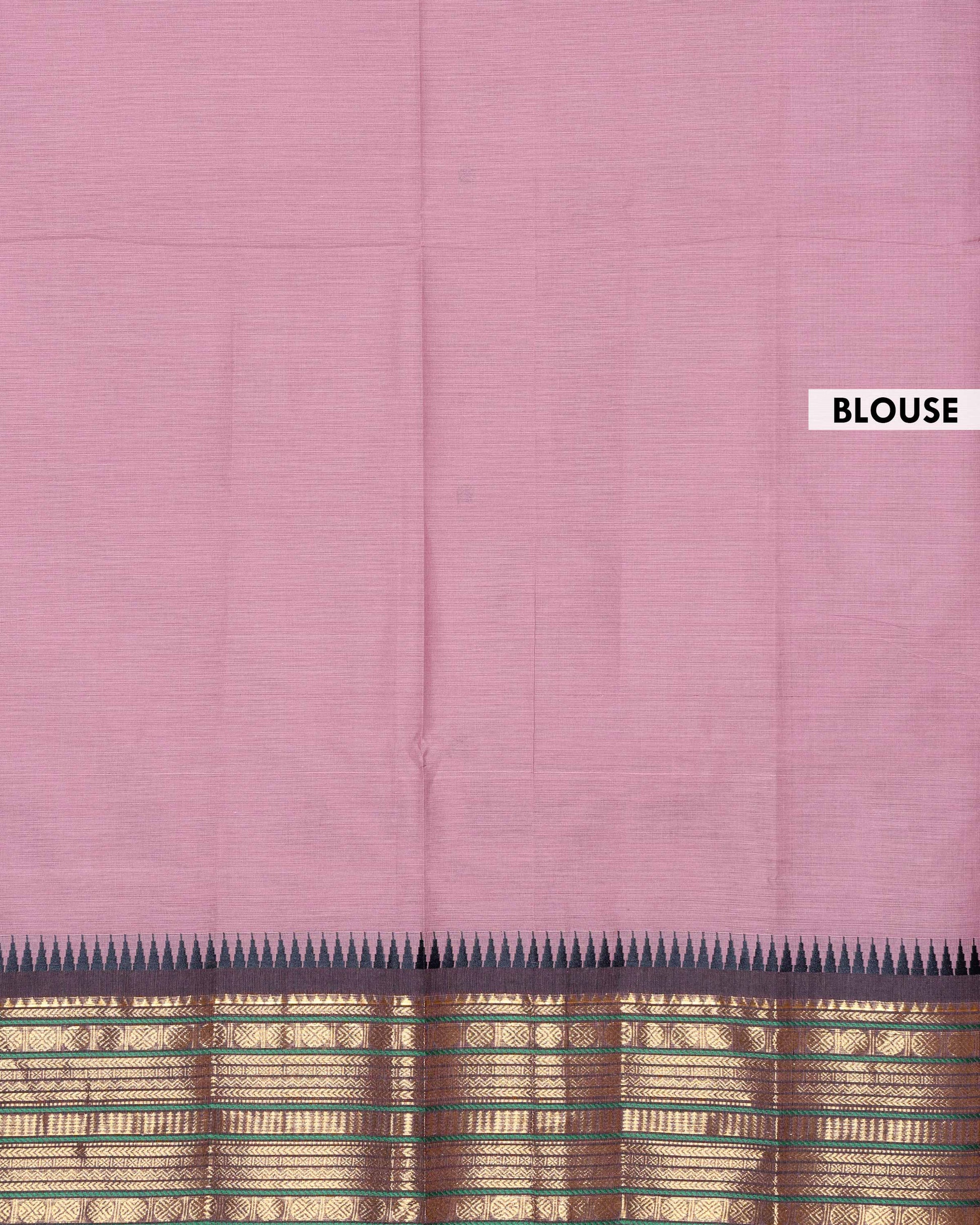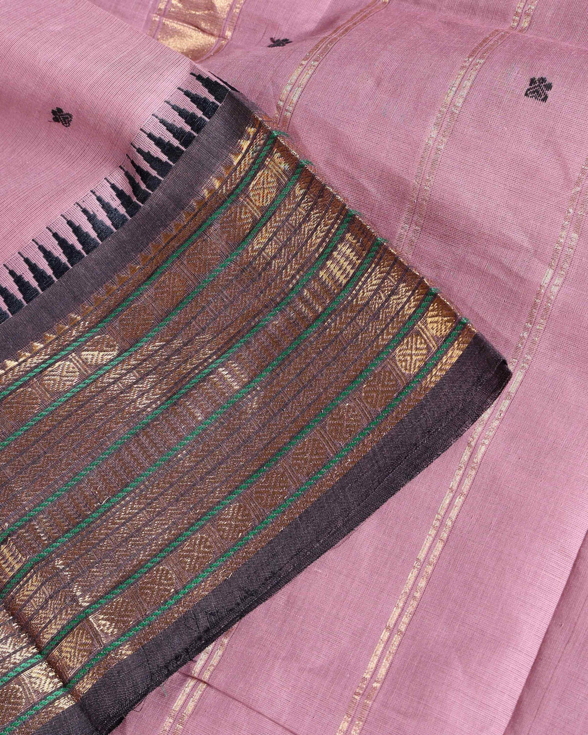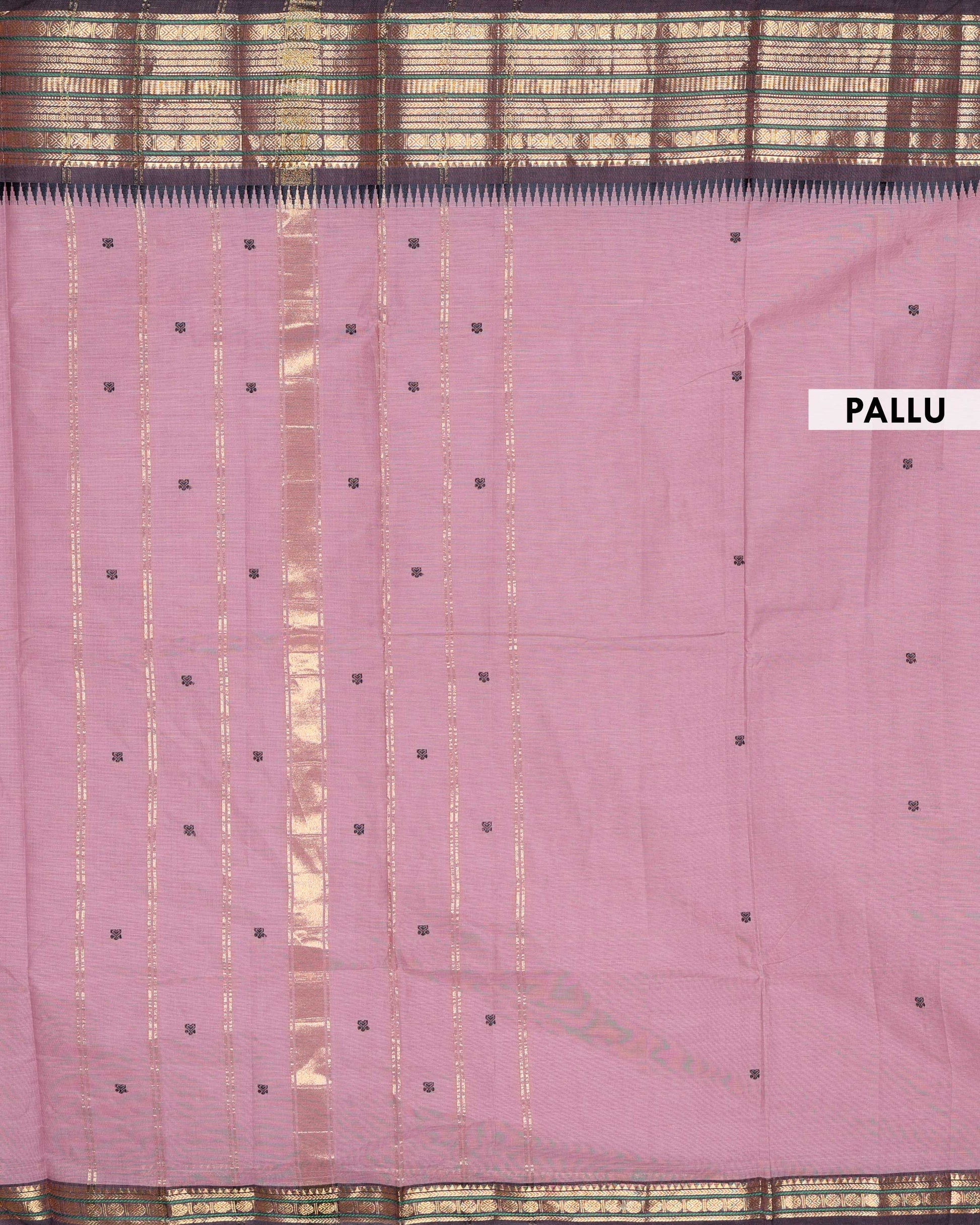 - This is a Chettinad cotton saree in Onion pink with a traditional zari border
