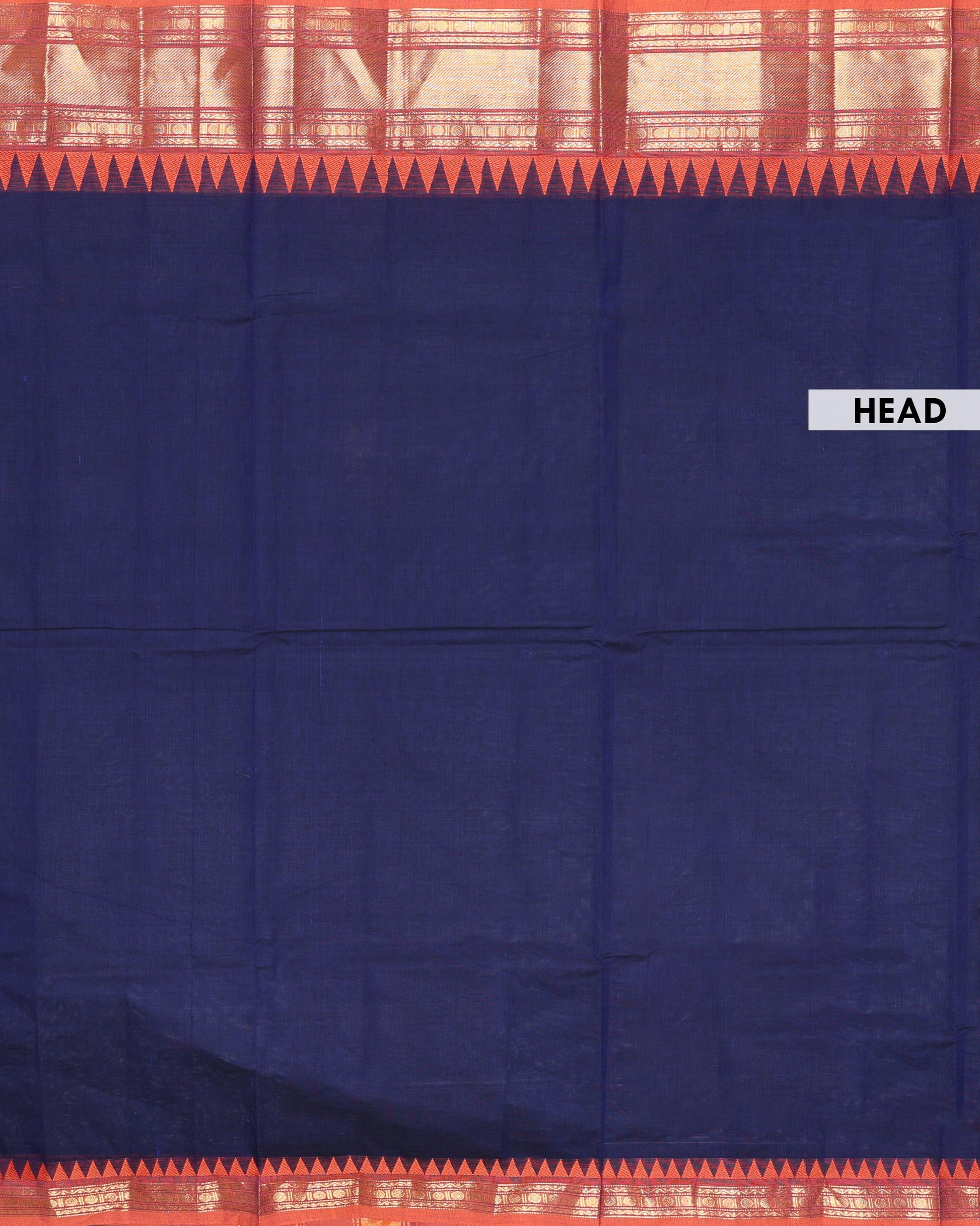 - Discover the charm of a pure handloom Dark blue Chettinad cotton saree a striking orange temple border