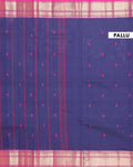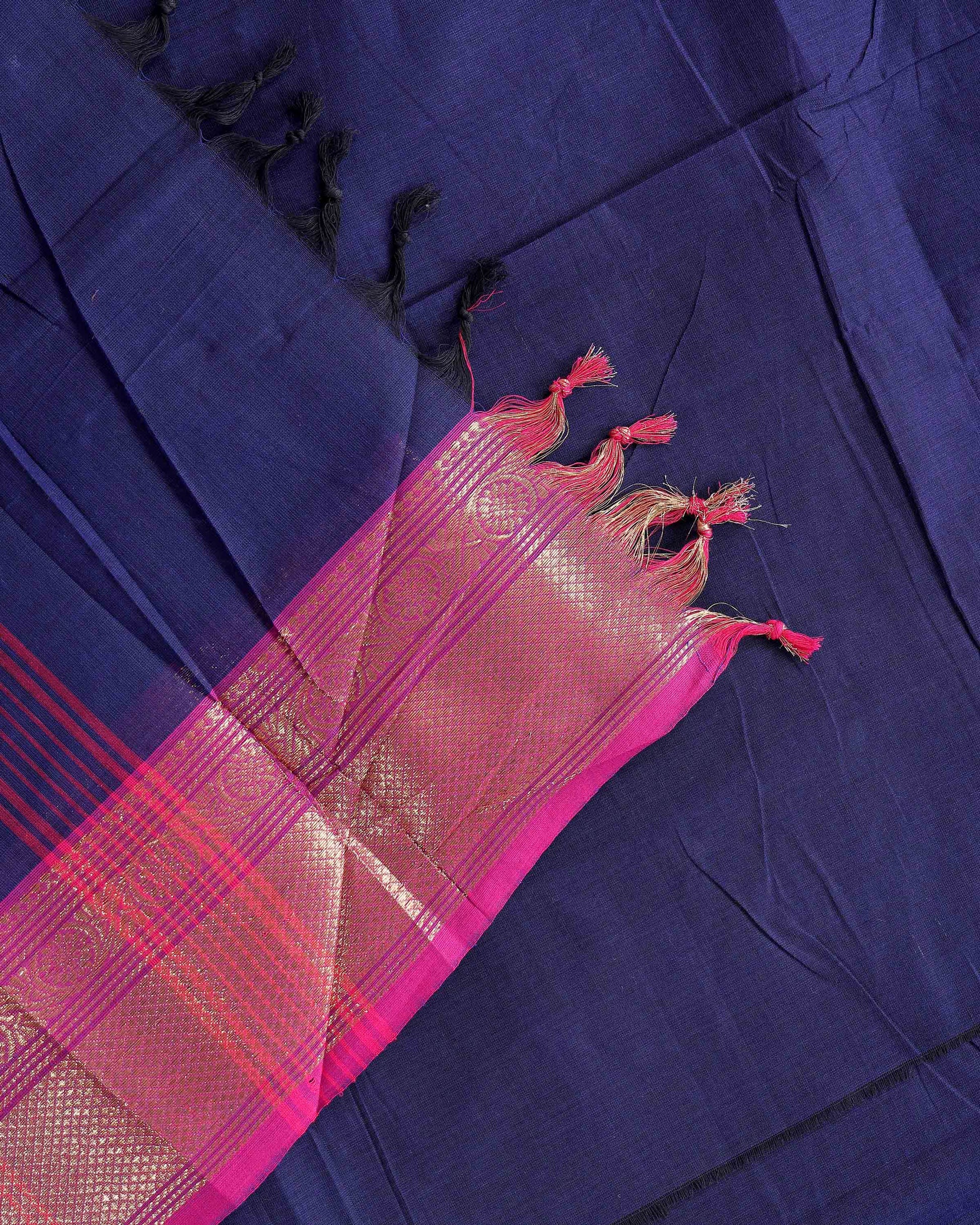 Traditional Handloom Chettinad Cotton Saree with Zari Woven Border and Classic Solid Weave - Dark Blue