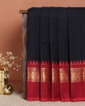 Traditional Handloom Chettinad Cotton Saree with Zari Woven Border and Temple Design - Black
