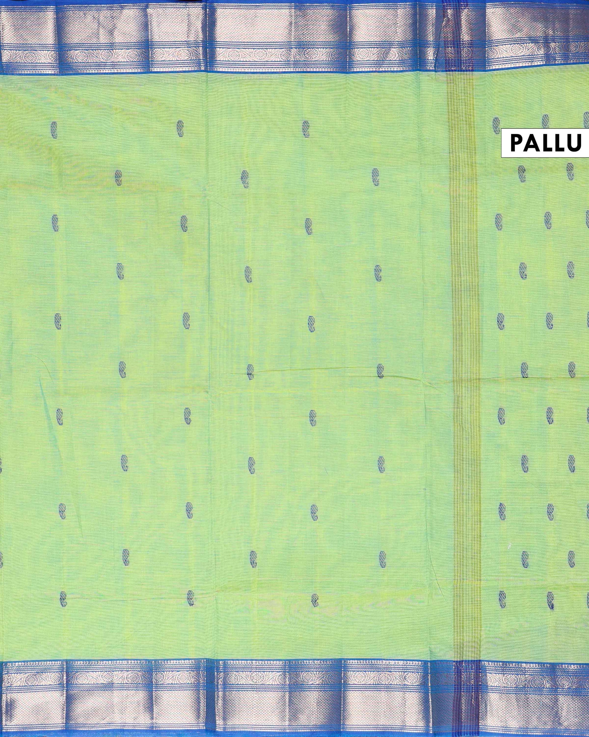 - This Chettinad cotton saree boasts a vibrant lime green body with a textured, striped weave, offering exceptional comfort and breathability for daily elegance.