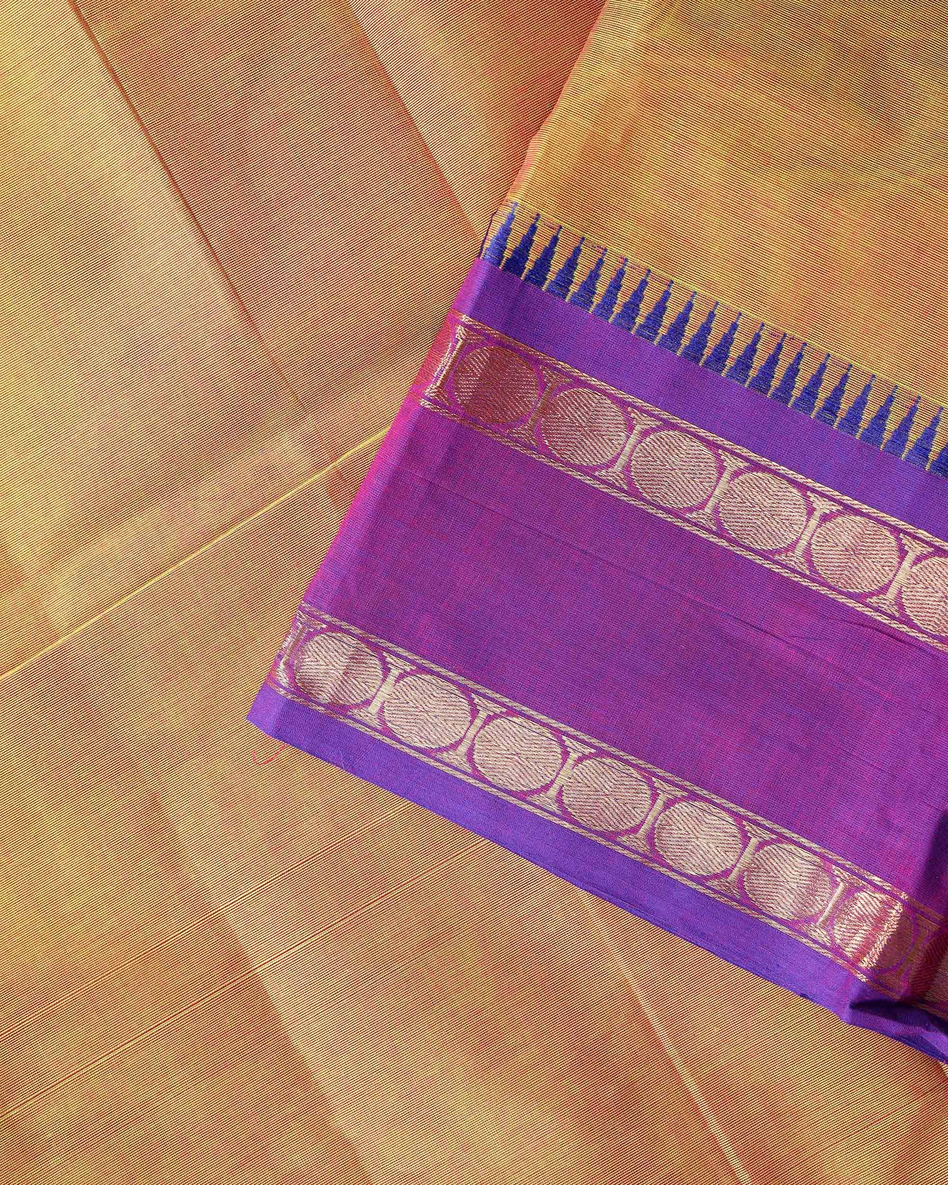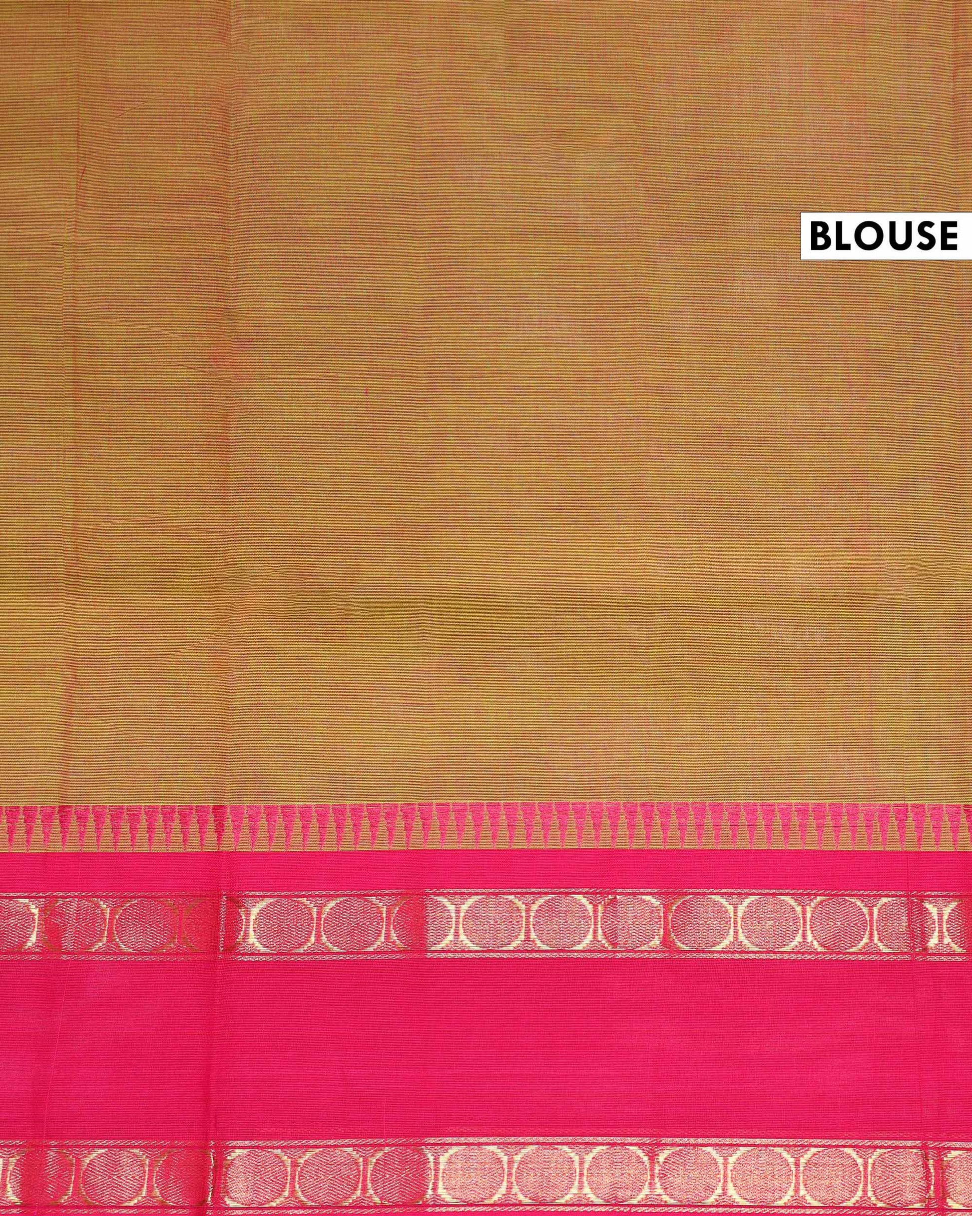 Traditional Handloom Chettinad Cotton Saree with Zari Woven Temple Border - Brown