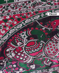 Traditional Handloom Kalamkari Cotton Saree with Intricate Floral and Avian Motifs - Green