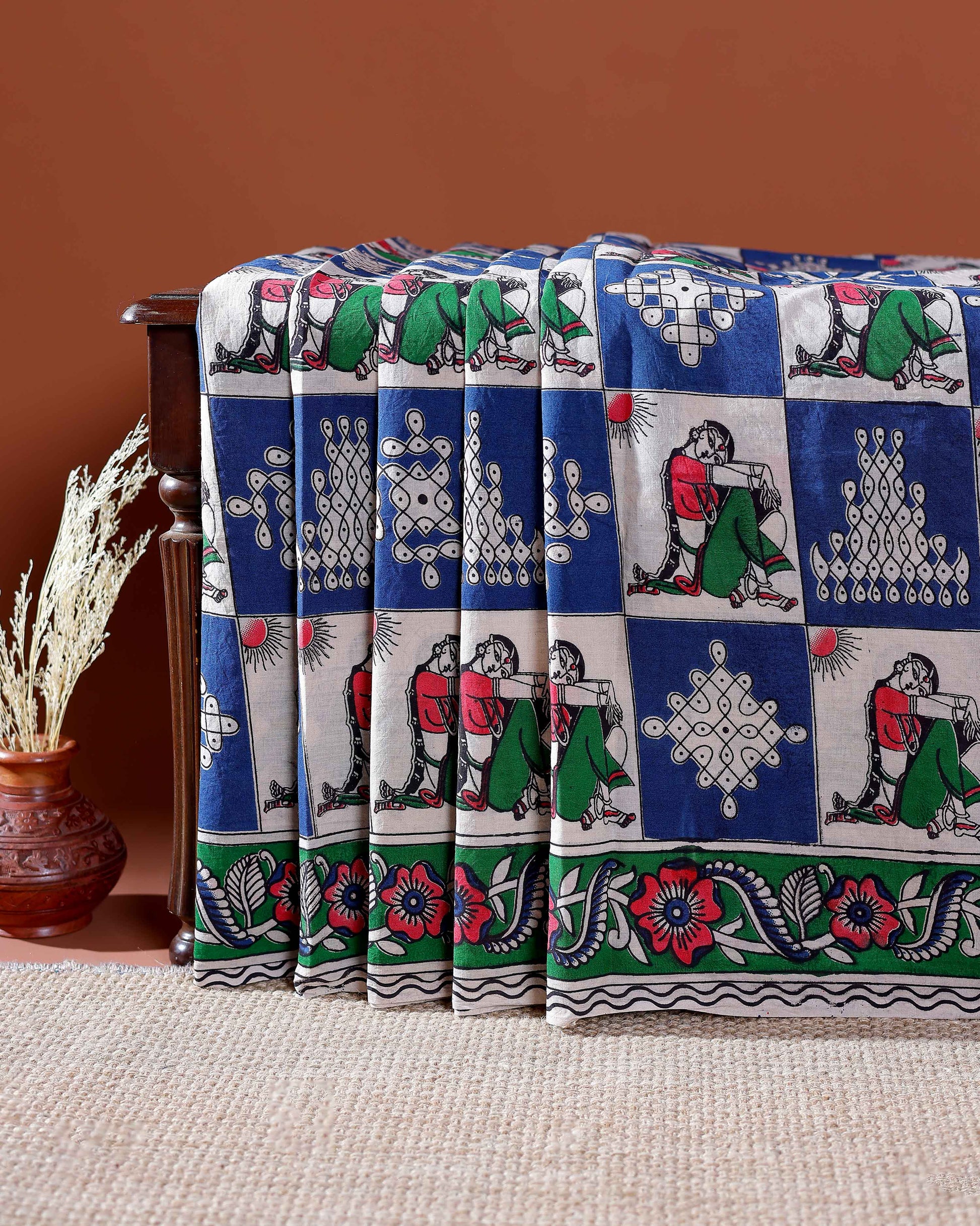 Traditional Handloom Kalamkari Cotton Saree with Intricate Floral and Avian Motifs - Multi