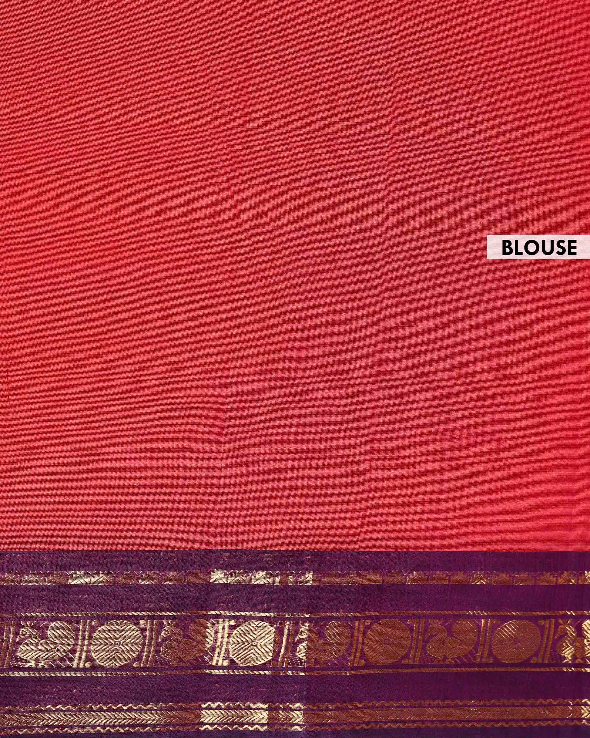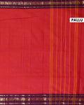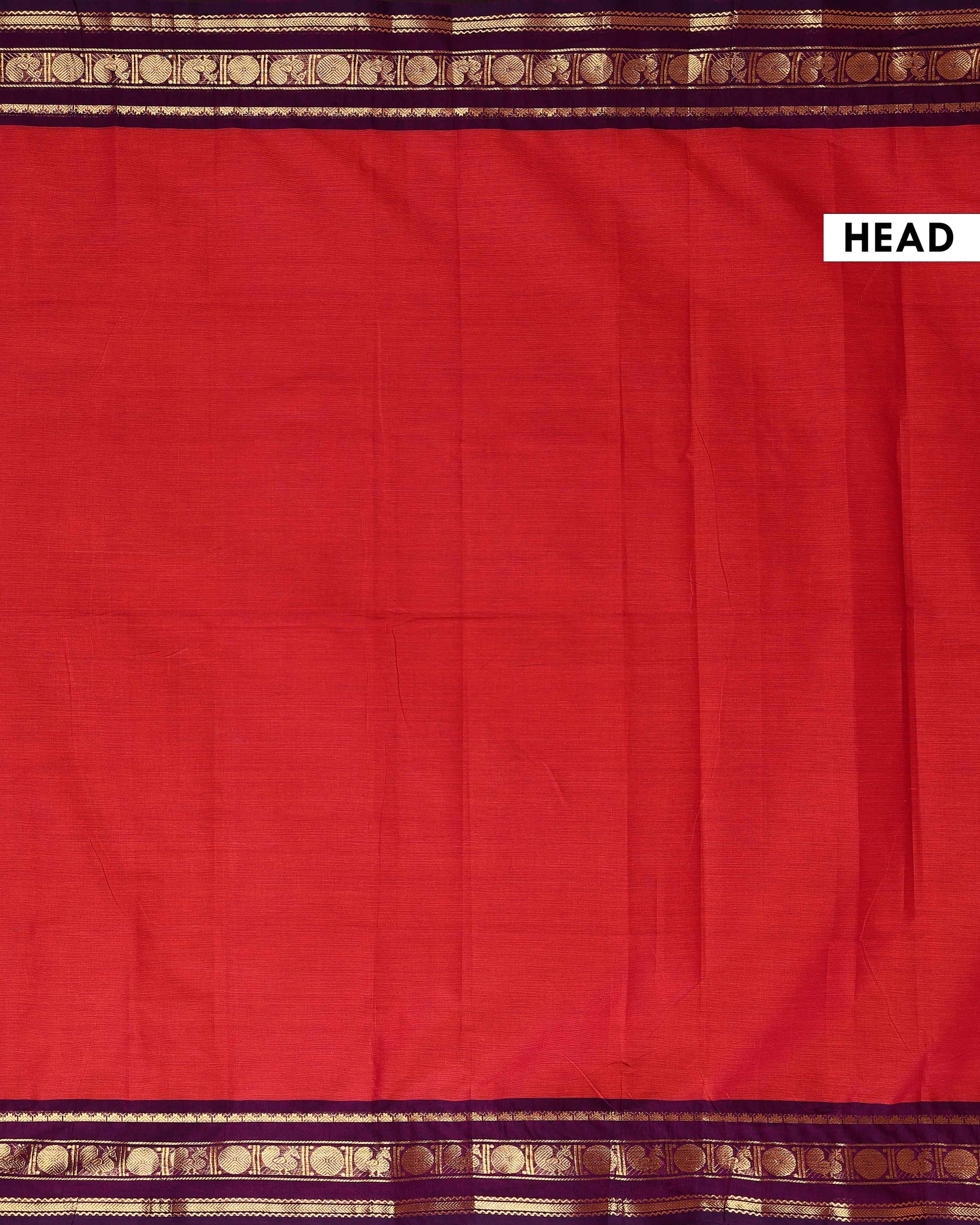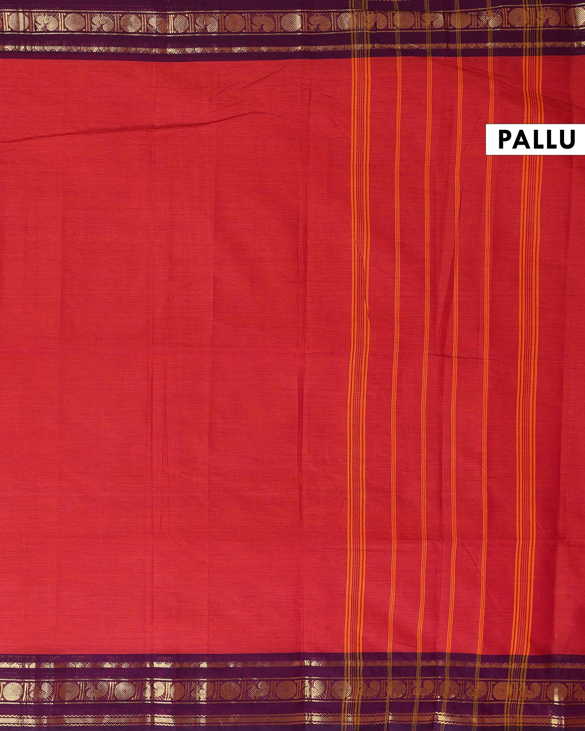 Traditional Handloom Kanchi Cotton Saree with Striped Body and Temple Border - Red