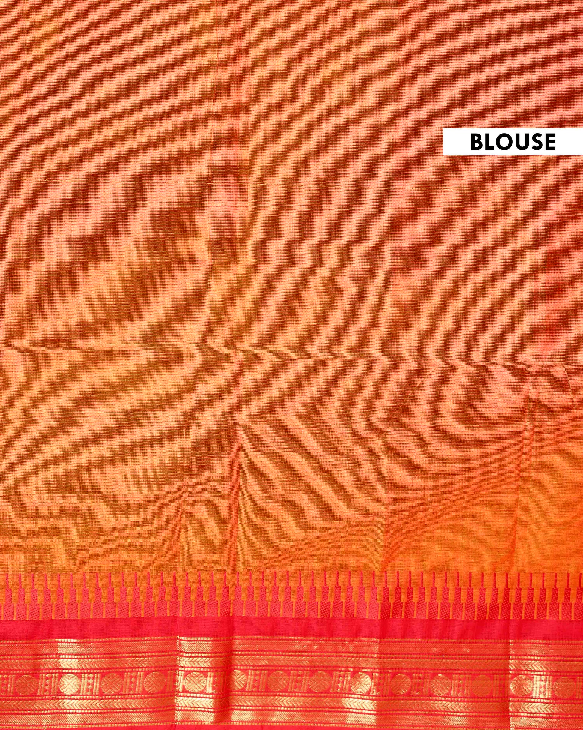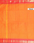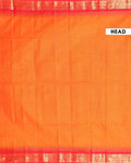 Elevate your style with this handwoven Orange Kanchi Cotton Saree a stunning Red Contrast Temple Zari Border.