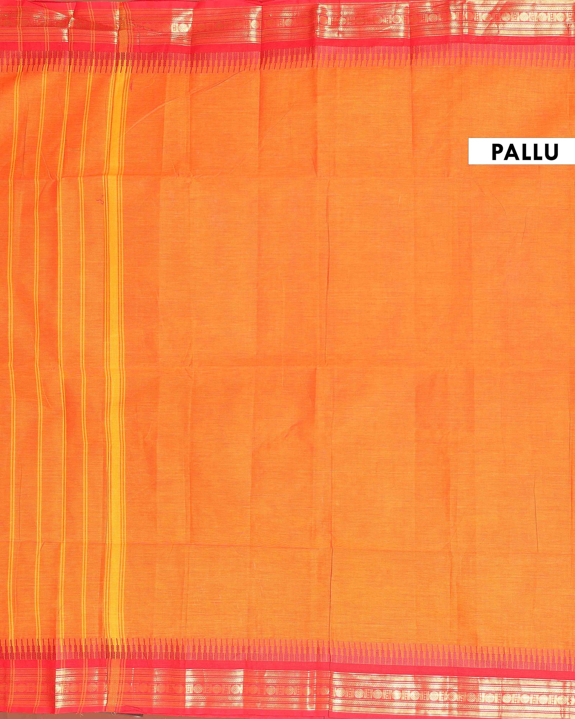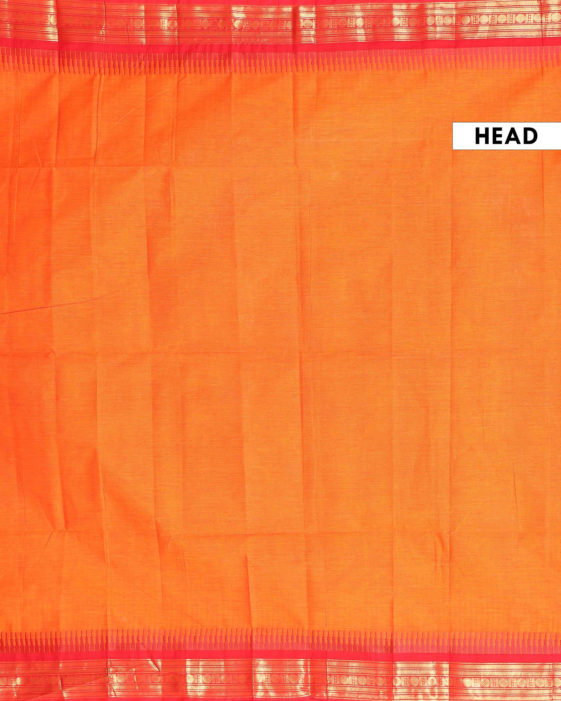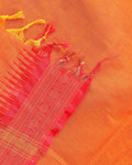 Traditional Handloom Kanchi Cotton Saree with Traditional Zari Motifs and Contrast Border - Orange