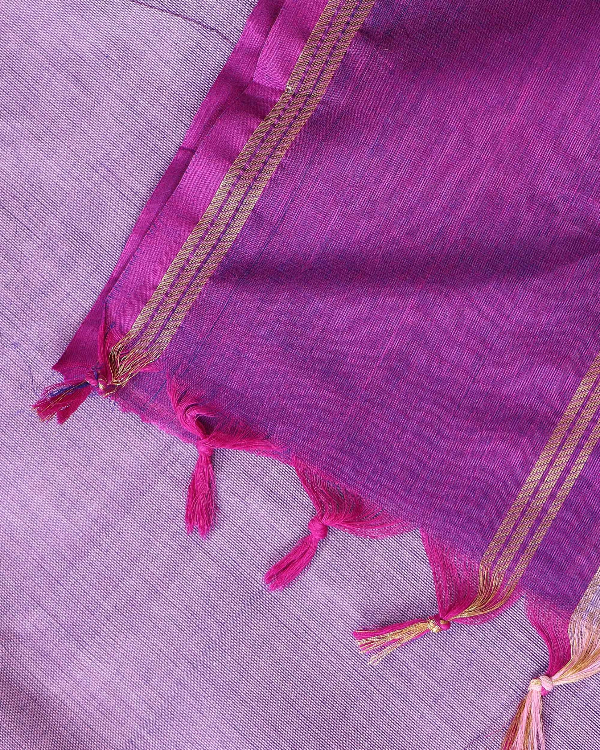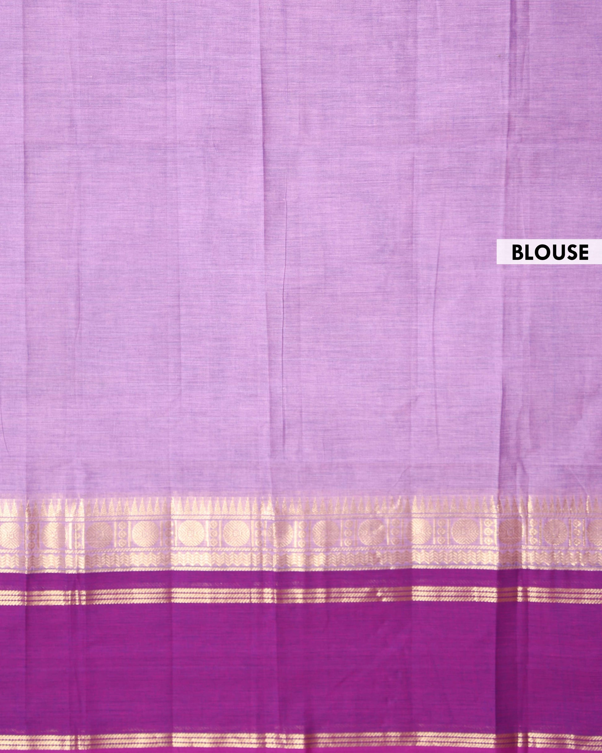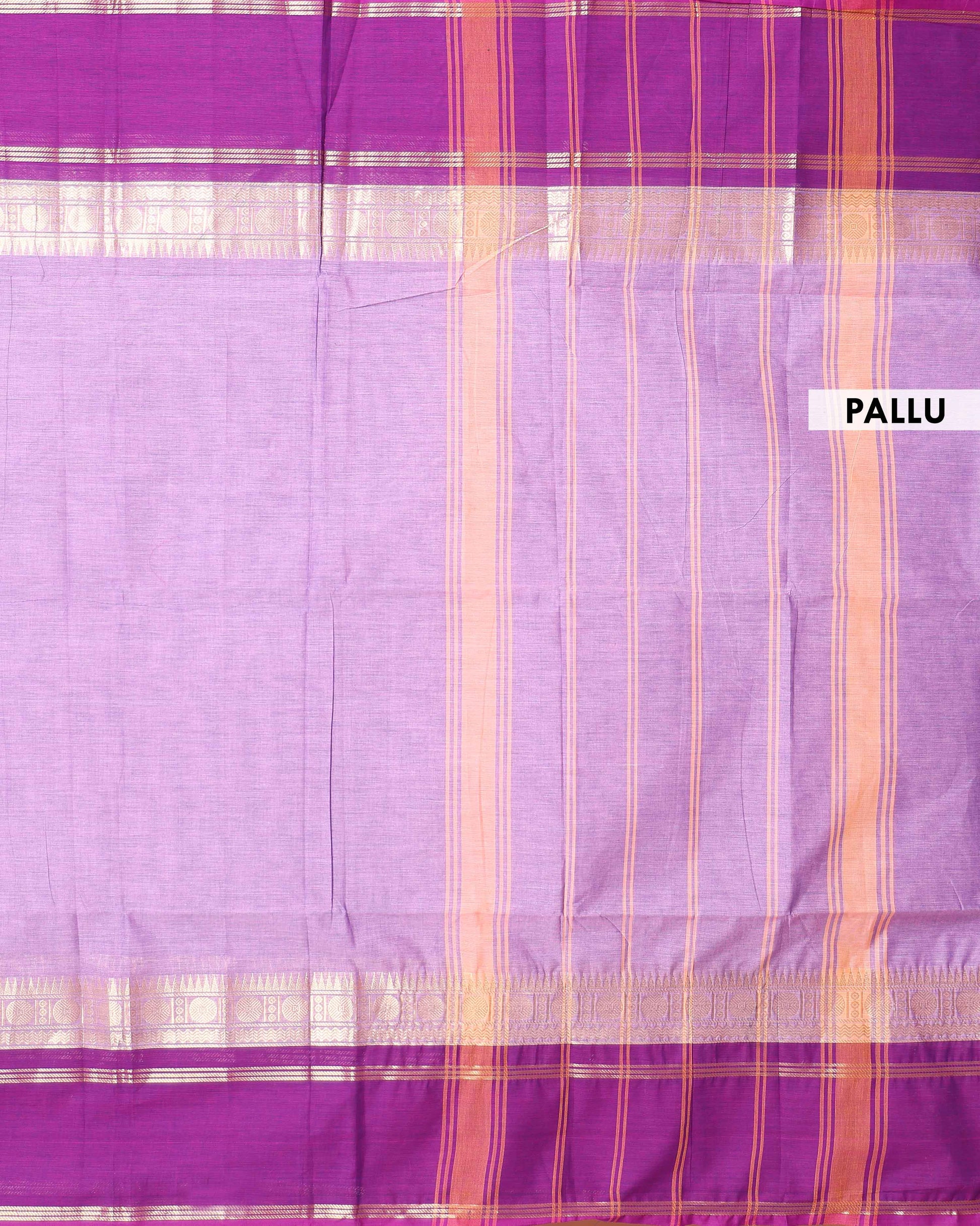 - This handwoven Kanchi cotton saree a beautiful double shade design, transitioning from a light lavender shade on the top to a vibrant dark purple on the bottom border
