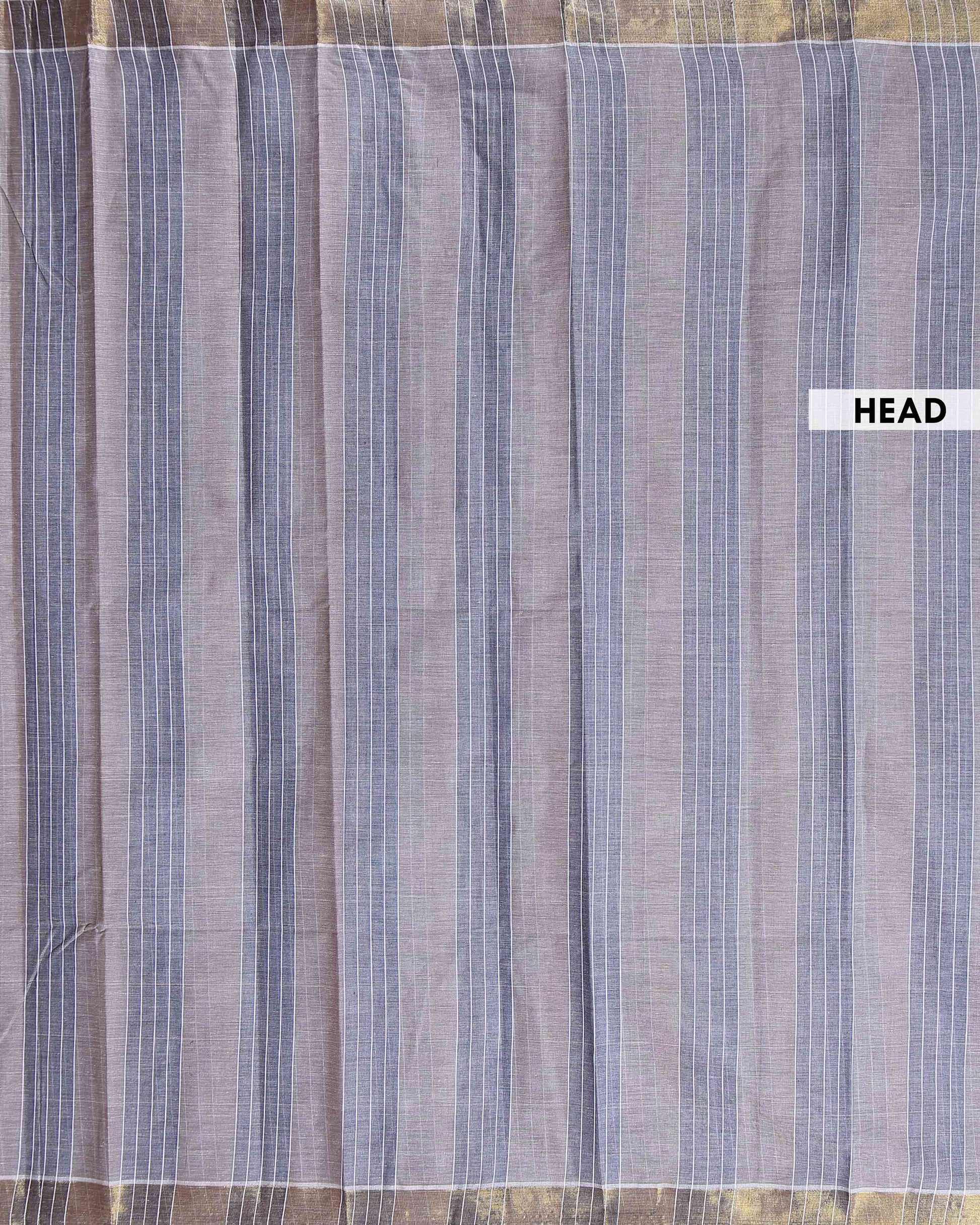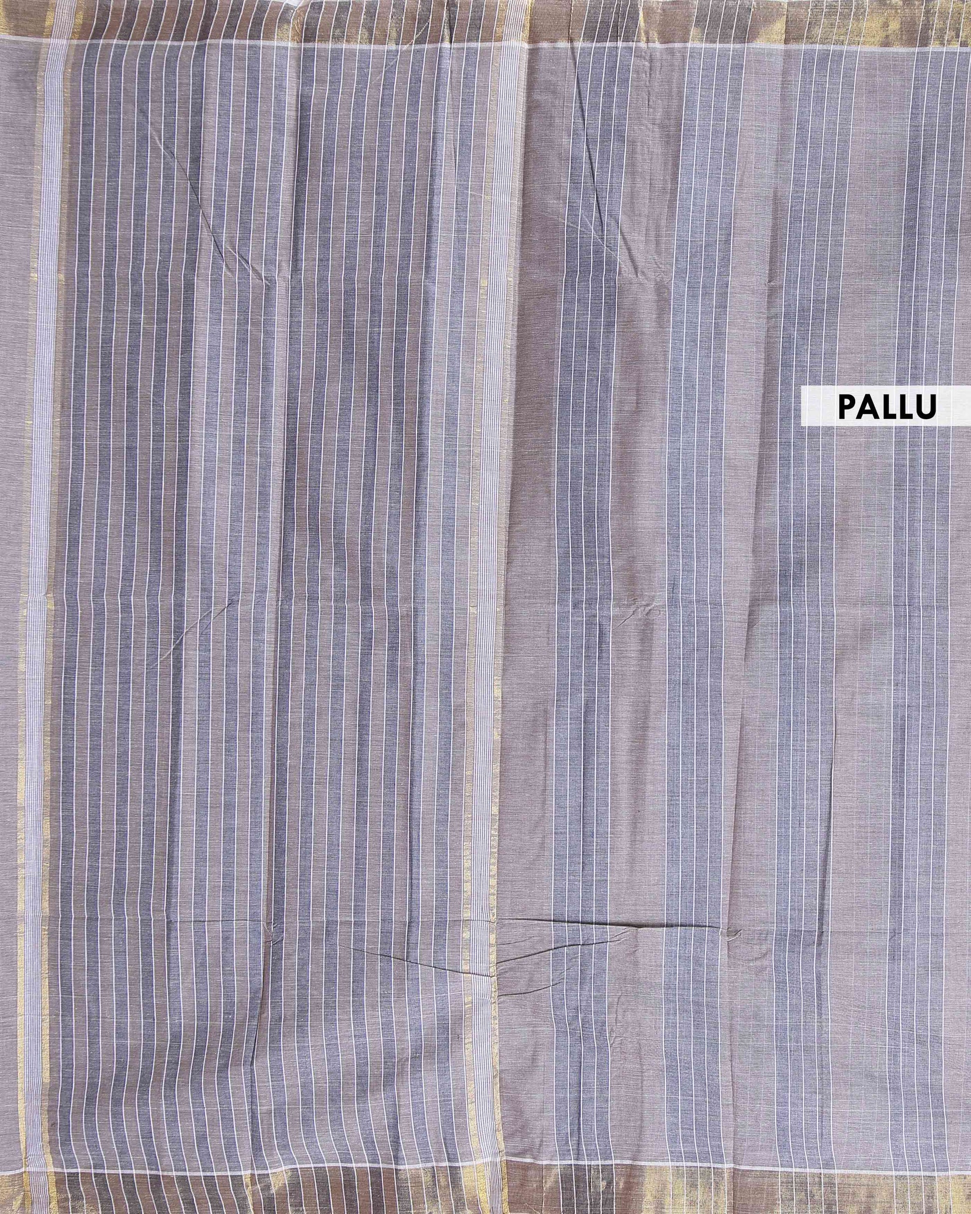 Traditional Handloom Kovai Cotton Saree with Woven Stripes and Zari Border - Grey
