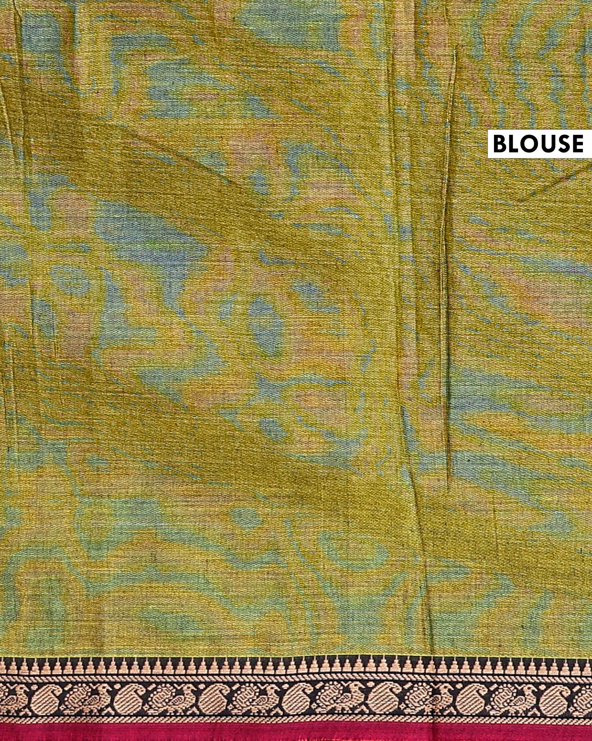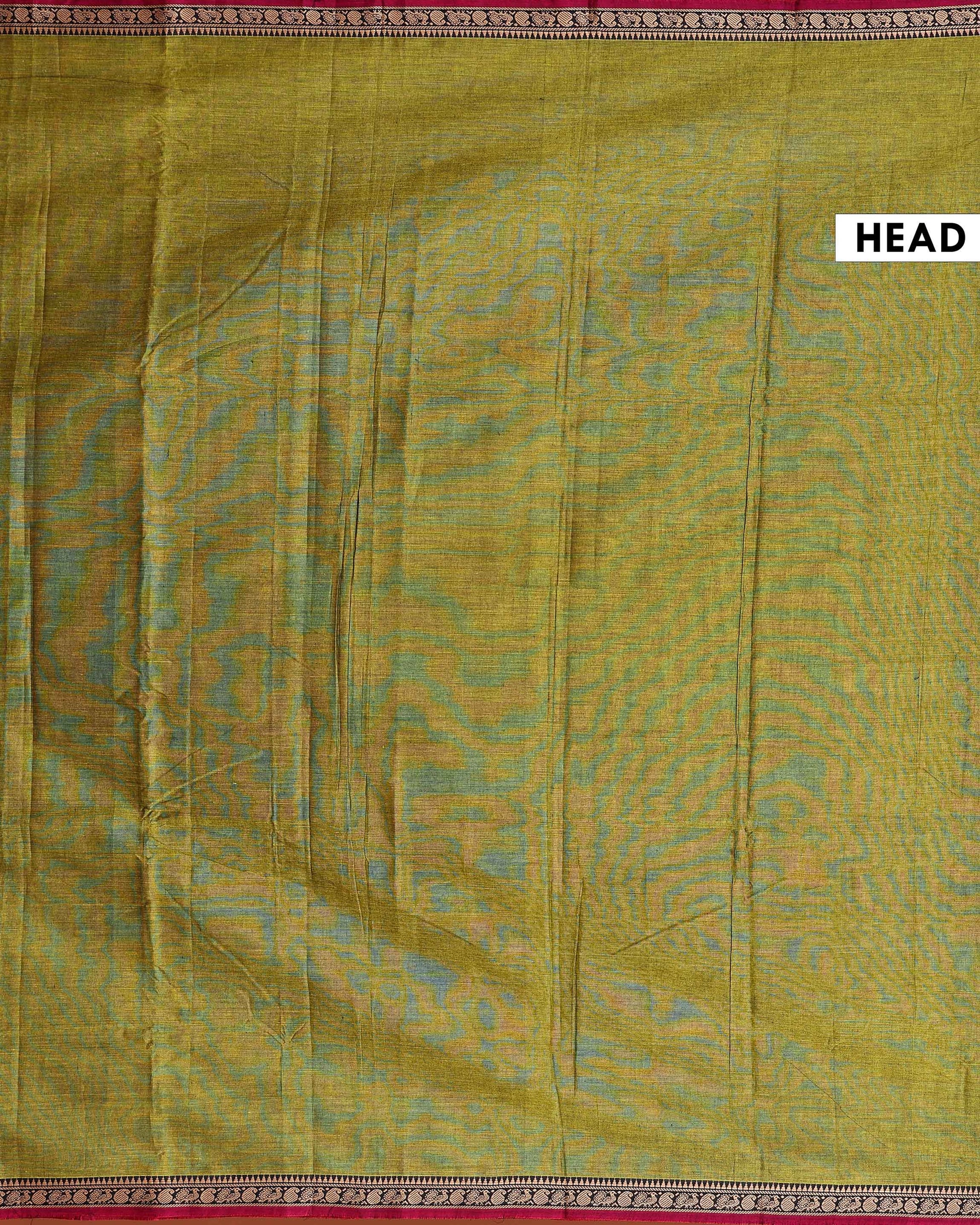 Traditional Handloom Narayanpet Cotton Saree Contrast Border and Geometric Motifs - Olive Green