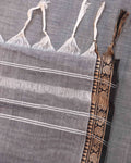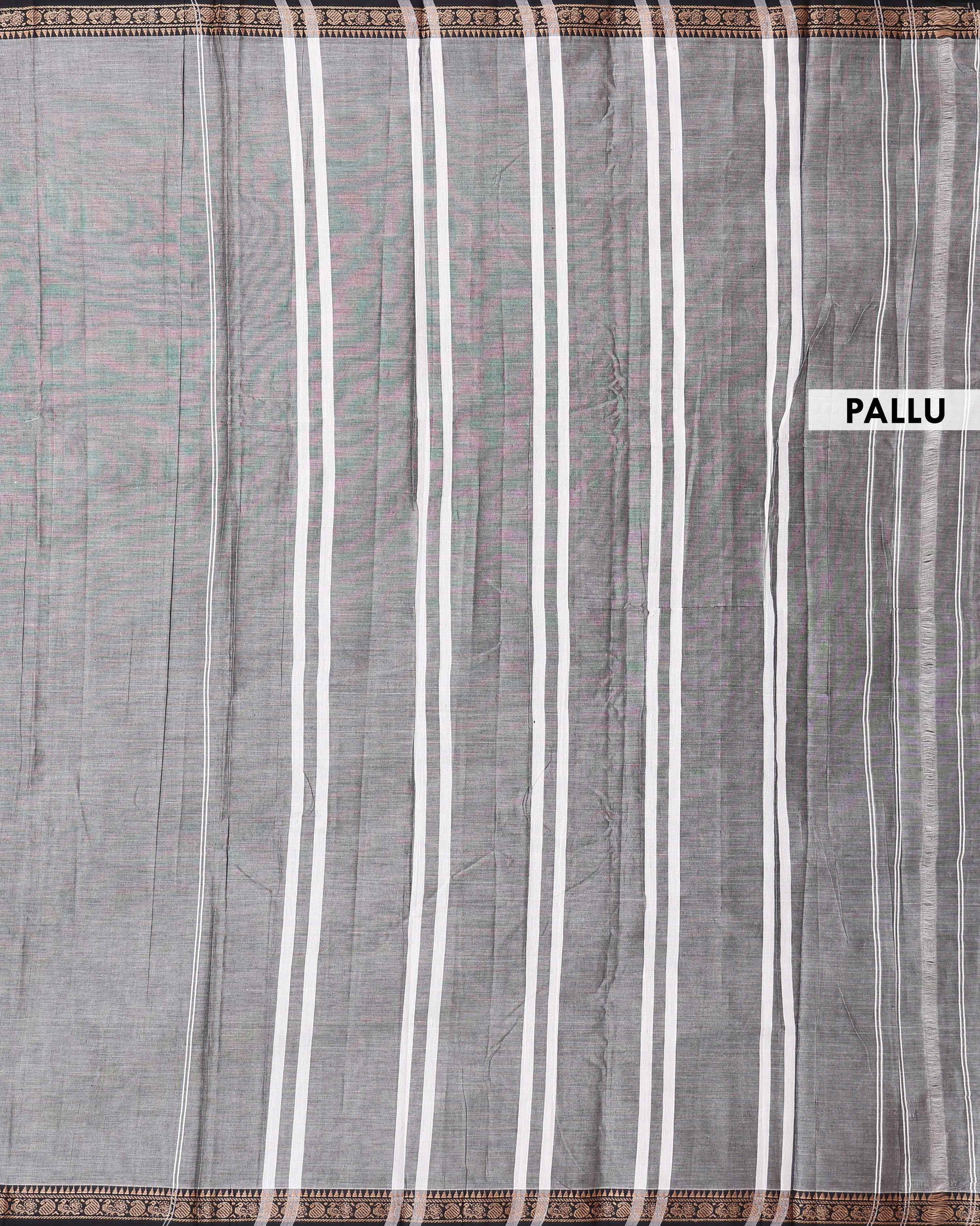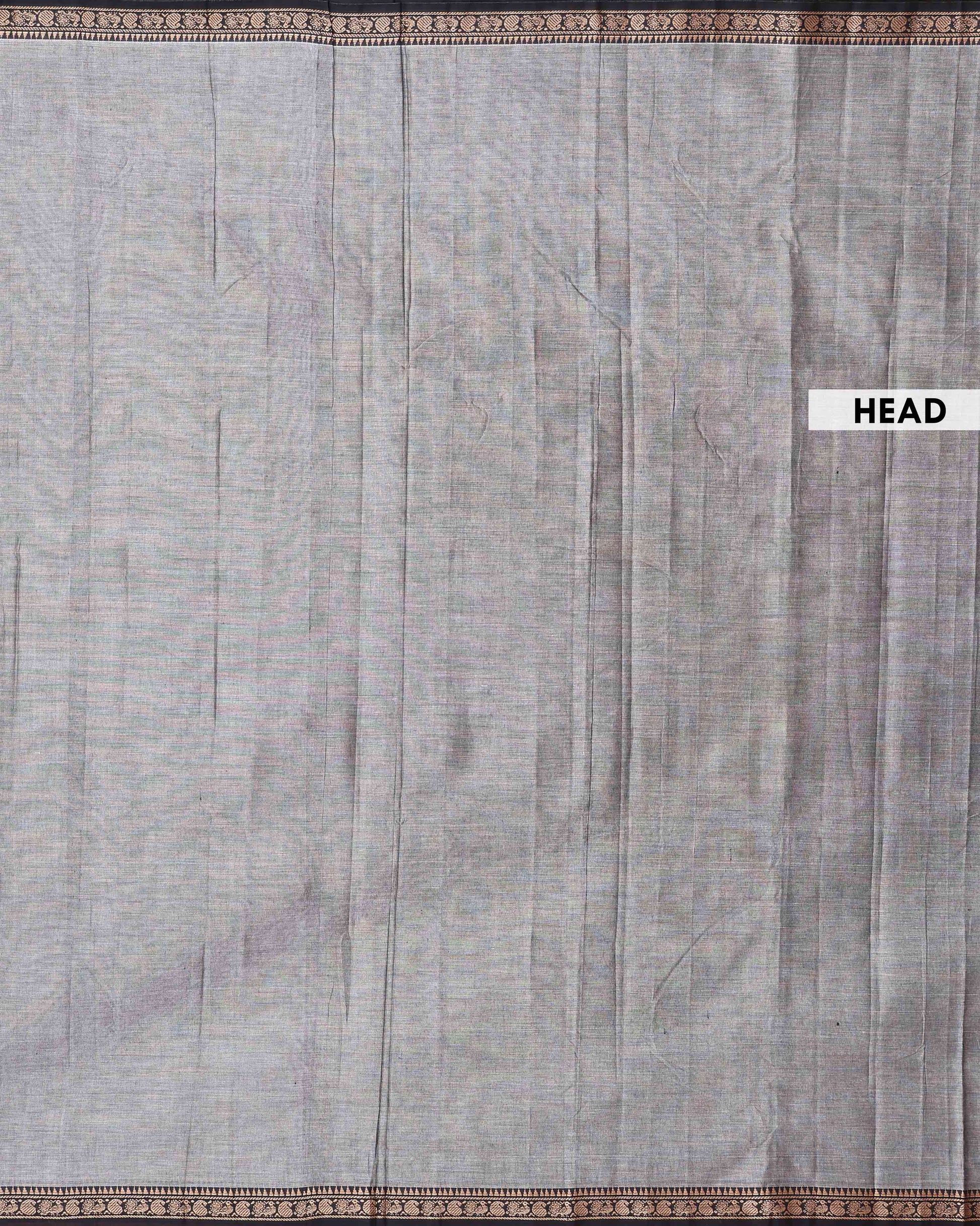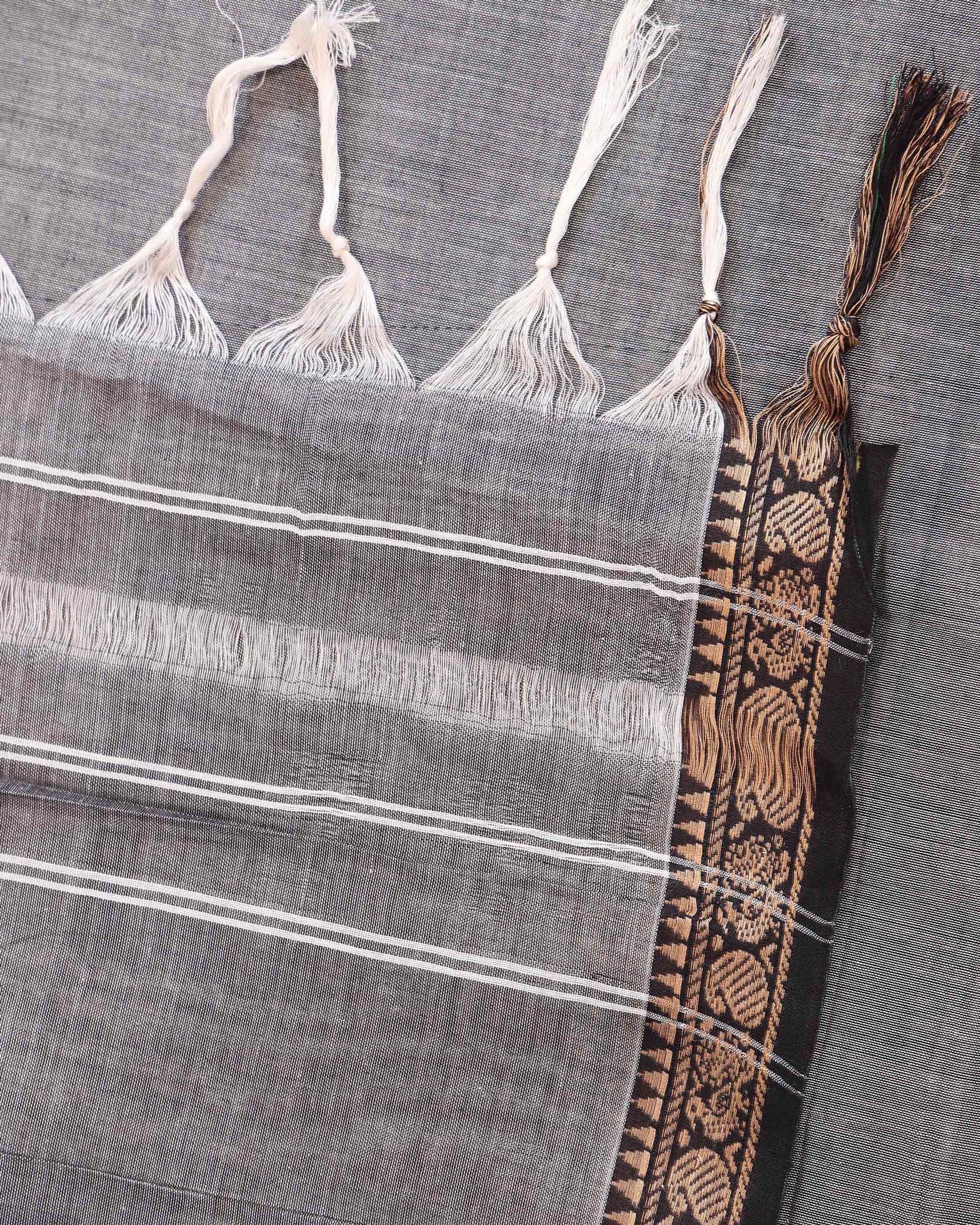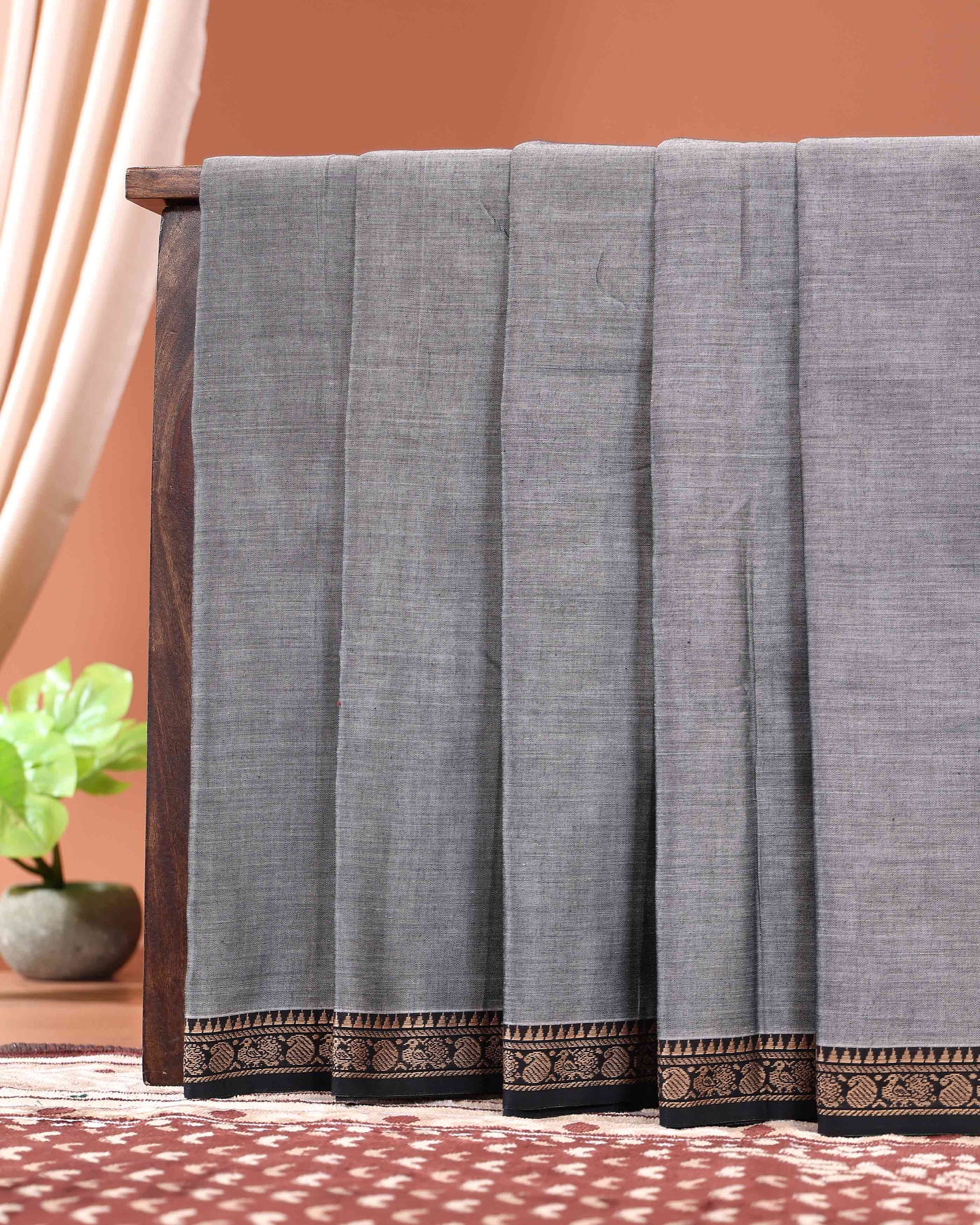 Traditional Handloom Narayanpet Cotton Saree with Intricate Temple Design Border - Grey