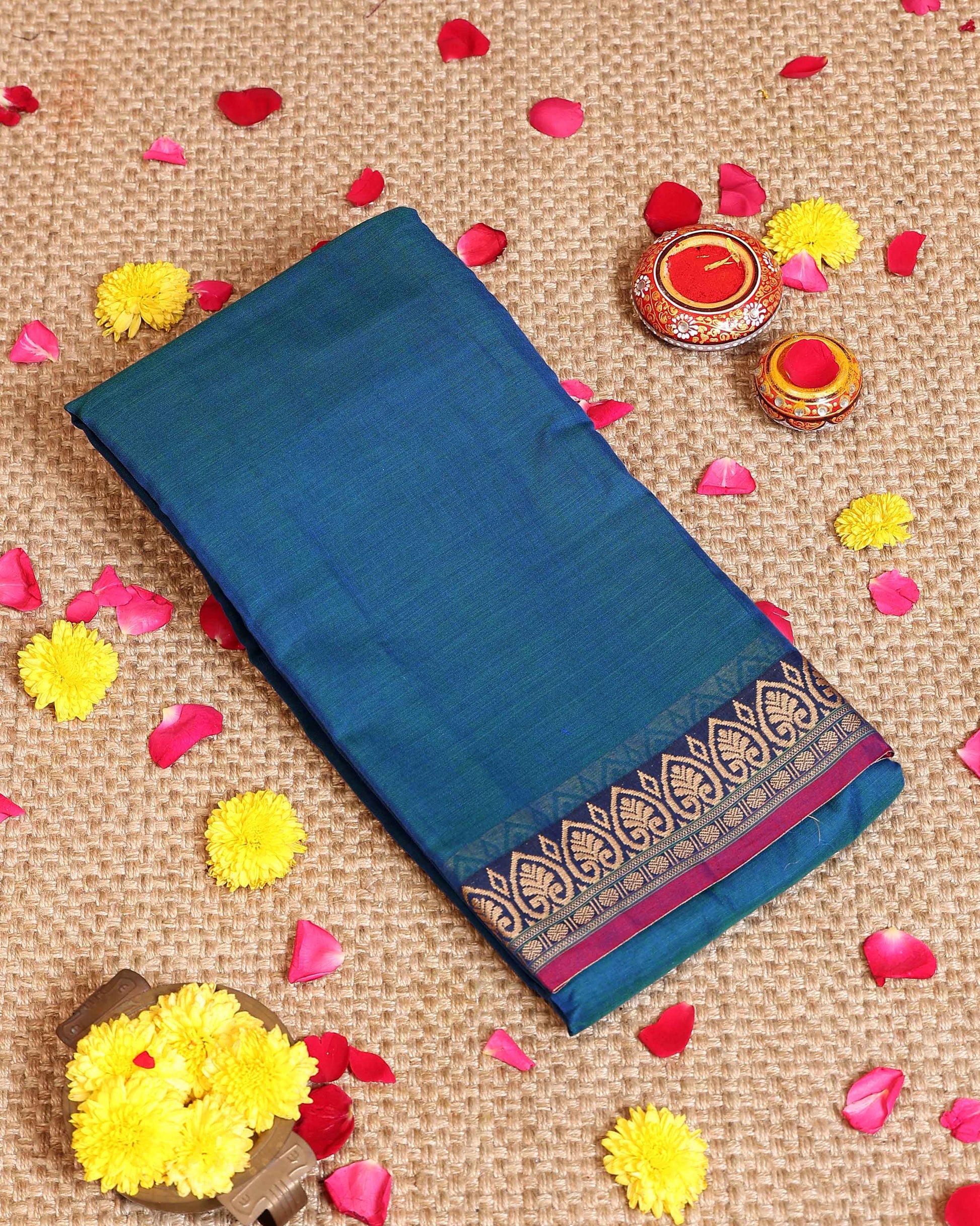 - This classic handloom Narayanpet cotton saree in a vibrant blue is known for its soft, breathable fabric and comfort.